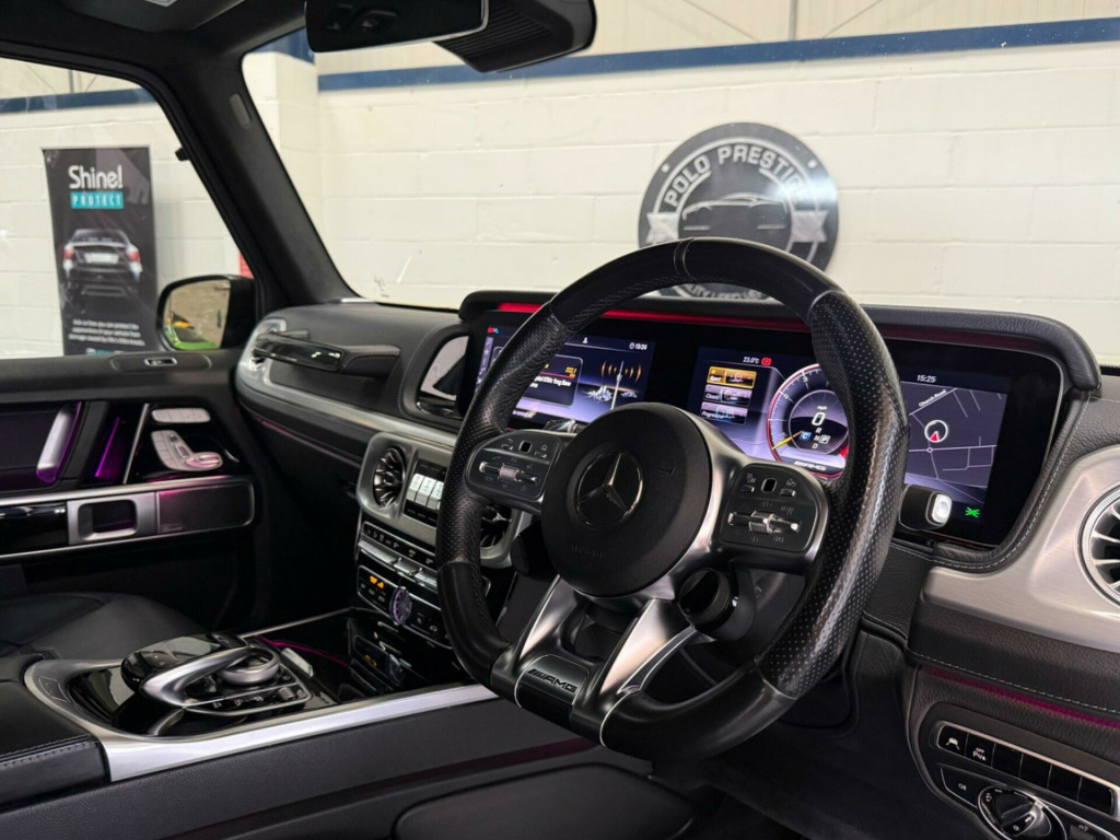 FULL URBAN WIDETRACK KIT, VOSSEN WHEELS, MILTEK EXHAUST. 900BHP TUNED BY MRC AND SS AUTOWERKS. FEATURING ON URBAN UNCUT YOUTUBE. This 2020 Mercedes-Benz G Class G63 V8 BiTurbo AMG is a powerful and luxurious four-wheel drive vehicle. The AMG trim adds sporty styling and performance enhancements to this iconic model. The 4.0L petrol engine meets Euro 6 emission standards. It boasts 22in alloy wheels with an AMG forged cross-spoke design, painted titanium grey with a high-sheen finish.Inside, enjoy the convenience of smartphone integration with Apple CarPlay and Android Auto, along with a 360-degree camera system that includes parking assistance. The front seats are heated and electrically adjustable, with a memory function for personalised comfort. The Burmester surround sound system provides an immersive audio experience. The large boot space offers practicality, while the impressive acceleration, reaching 0-62mph in just 4.5 seconds, demonstrates its superior performance compared to similar vehicles. With a towing weight of 3500 kg, this vehicle is well-equipped for various tasks. v sockets in centre console - rear and load compartment, 20in alloy wheels - amg 10-spoke design painted titanium grey with high-sheen finish, 20in spare wheel on rear door, 360 degree camera, abs - anti-lock braking system with bas - brake assist, amg bodystyling - exclusive g 63 amg front aprons, amg brake calipers painted red, amg door sill panels in brushed stainless steel - illuminated, amg floor mats with amg lettering, amg high-performance brake system, amg instrument cluster with dual bonded 12.3in widescreen displays, amg nappa leather interior, amg performance exhaust system - selectable and two chrome-trimmed twin tailpipes - left and right, amg performance steering wheel in nappa leather 3-spoke design with flattened bottom section, amg ride control suspension with dynamic select, amg specific analogue clock featuring iwc design, amg-specific radiator grille with amg logo, attention assist, active brake assist, active lane keeping assist, adaptive brake assist with hold function - hill-start assist - priming and dry braking in the wet, airbags - driver and front passenger, airbags - front side, airbags - windowbags, ambient lighting - choice of 64 colour settings, ambient lighting with projection of brand logo, anti theft alarm system with tow-away protection and interior motion sensor - thatcham category 1 compliant, automatically dimming rear view mirror, bluetooth interface for hands-free telephone, bumpers - painted in body colour - front and rear, burmester surround sound system, comand online, centre armrest between front seats with integrated stowage compartment, chrome package and exterior styling package, communications module - lte - for the use of mercedes me connect services, cruise control with variable speed limiter, cup holders - front x2 and rear x2, dab digital radio tuner, dynamic select with eco start-stop function and four transmission modes, dashboard - leather-covered, differential locks - transfer case - front and rear axle, door mirrors - electrically adjustable and heated, driving assistance package, esp - electronic stability programme with asr - acceleration skid control, electric sunroof - sliding with one-touch opening, electric windows - 4, exterior styling package, four-wheel electronic traction system - 4ets, front seats - heated and electrically adjustable, headlamp assist - automatic headlamp activation, headlights - adaptive high beam assist plus, heat insulating dark tinted glass, interior air ionisation with air filter, keyless-go starting function, low range gear reduction - electronically selectable while driving, luggage compartment cover, luggage protection net, multibeam led headlights, pre-safe system for preventive occupant protection, parking-assistance parktronic, power assisted steering, privacy glass - dark glass from b-pillar backwards, rain-sensing wipers, rear bench seat - split folding 1-3 - 2-3, seat belt pre-tensioners - 4, seat belts - 3-point design in black, seat comfort package, seats - heated rear, service indicator assyst, smartphone integration comprising apple carplay and android auto, steering column - electrically adjustable with automatic adjustment for entry-exit, steering wheel - heated, stowage space package, suspension with adaptive damping system, thermotronic automatic climate control with three climate zones and three climate styles - medium - diffuse and focused, tail lights featuring led technology, touchpad with controller, traffic sign assist, trailer coupling with esp trailer stabilisation, tyre pressure monitoring system, v8 biturbo lettering, i-size child seat attachment for outer rear seats, 22in alloy wheels - amg forged cross-spoke design - painted titanium grey with a high-sheen finish