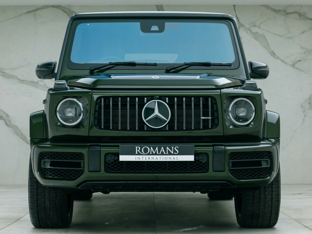 Finished in G Manufaktur Olive Metallic Paint with Black Nappa Leather - Desirably Equipped with G Manufaktur Pack & AMG Carbon Fibre Interior Trim - Supplied with Romans International Platinum Warranty - Paint Protection Film (PPF) Applied to Front Bumper - UK SuppliedOptional Extras:22-Inch AMG Cross-Spoke Forged WheelsG Manufaktur Olive Metallic PaintG Manufaktur Package (Including: 22 AMG Cross-Spoke Forged Wheels + Black Nappa Leather + Premium Plus Package + Active Multicontour Seat Pack + ENERGIZING Comfort Control)AMG Carbon Fibre Interior TrimAMG Night Package (Including: Dark Tinted Headlamps + AMG Dark Chrome Radiator Grille + Black Mirror Housings + Black Underguard + Obsidian Black Manufaktur Spare Wheel Ring)Paint Protection Film (PPF) Applied to Front BumperStandard Features:360° CameraActive Brake AssistBurmester Surround Sound SystemCOMAND OnlineDigital Radio (DAB)Driving Assistance PackageParking PackageSliding SunroofTraffic Sign Assist. 22-Inch AMG Cross-Spoke Forged Wheels, G Manufaktur Olive Metallic Paint, G Manufaktur Package, AMG Carbon Fibre Interior Trim, AMG Night Package, Paint Protection Film (PPF) Applied to Front Bumper.