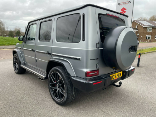 This 2022 Mercedes Benz G Class G63 V8 BiTurbo AMG boasts an exceptionally low mileage of just 23,034 miles, a testament to its careful ownership. This Euro 6 compliant 4.0 litre petrol engine vehicle features a four wheel drive system and comes with a 12 month warranty and 12 months MOT provided on purchase. Its full dealership service history includes a recent service on 01 December 2025, ensuring peace of mind. Notable features include the AMG Carbon Fibre trim, a Rear Seat Entertainment System, and the G Manufaktur Package along with G Manufaktur Bumpers and Flared Wheel Arches also in Obsidian Black.Experience the impressive performance of this G63 AMG, with its remarkable 0-62mph acceleration in just 4.5 seconds, showcasing its superior power compared to other vehicles in its class. The generous boot space offers practicality for all your needs, while the substantial 3500 kg towing weight provides exceptional versatility. This vehicle represents a compelling combination of luxury, performance, and capability.. 12V Sockets in Centre Console - Rear and Load Compartment, 22in Alloy Wheels - AMG Forged Cross-Spoke Design - Painted Matt Black with High-Sheen Rim Flange, ABS - Anti-Lock Braking System with BAS - Brake Assist, AMG Bodystyling - Exclusive G 63 AMG Front Aprons, AMG Brake Calipers Painted Red, AMG Door Sill Panels in Brushed Stainless Steel - Illuminated, AMG Floor Mats with AMG Lettering, AMG High-Performance Brake System, AMG Instrument Cluster with Dual Bonded 12.3in Widescreen Displays, AMG Performance Exhaust System - Selectable and Two Chrome-trimmed Twin Tailpipes - Left and Right, AMG Performance Steering Wheel in Nappa Leather 3-Spoke Design with Flattened Bottom Section, AMG RIDE CONTROL Suspension with DYNAMIC SELECT, AMG Specific Analogue Clock Featuring IWC Design, AMG Steering Wheel Buttons, AMG-Specific Radiator Grille with AMG Logo, ATTENTION Assist, Active Brake Assist, Active Lane Keeping Assist, Adaptive Brake Assist with Hold Function - Hill-Start Assist - Priming and Dry Braking in the Wet, Adaptive Highbeam Assist Plus, Airbags - Driver and Front Passenger, Airbags - Front Side, Airbags - Rear Sidebags, Airbags - Windowbags, Ambient Lighting - Choice of 64 Colour Settings, Ambient Lighting with Projection of Brand Logo, Anti Theft Alarm System with Tow-Away Protection and Interior Motion Sensor - Thatcham Category 1 Compliant, Automatically Dimming Rear View Mirror, Bluetooth Interface for Hands-Free Telephone, Burmester Surround Sound System, COMAND Online, Centre Armrest Between Front Seats with Integrated Stowage Compartment, Communications Module - LTE - for the use of Mercedes me Connect Services, Cruise Control with Variable Speed Limiter, Cup Holders - Front x2 and Rear x2, DAB Digital Radio Tuner, DYNAMIC SELECT with ECO Start-Stop Function and Four Transmission Modes, Dashboard - Nappa Leather, Differential Locks - Transfer Case - Front and Rear Axle, Door Mirrors - Electrically Adjustable and Heated, Driving Assistance Package, ENERGIZING Comfort Control, ESP - Electronic Stability Programme with ASR - Acceleration Skid Control, Electric Sunroof - Sliding with One-Touch Opening, Electric Windows - 4, Exterior Protective Strip with Trim Insert in Black, Four-Wheel Electronic Traction System - 4ETS, Front Seats - Heated and Electrically Adjustable, Headlamp Assist - Automatic Headlamp Activation, Heated Windscreen, Interior Air Ionisation with Air Filter, KEYLESS-GO Starting Function, Low Range Gear Reduction - Electronically Selectable While Driving, Luggage Compartment Cover, Luggage Protection Net, MULTIBEAM LED Headlights, PRE-SAFE System for Preventive Occupant Protection, Parking Package with 360-Degree Camera, Parking-Assistance PARKTRONIC, Petrol Particulate Filter - PPF, Power Assisted Steering, Privacy Glass - Dark Grey-Tinted Glass for Tailgate and Rear Side Windows, Rain-Sensing Wipers, Rear Bench Seat - Split Folding 1-3 - 2-3, Roof Lining - designo Black Dinamica Microfibre, Seat Belt Pre-Tensioners - 4, Seat Belts - 3-Point Design in Black, Seats - Heated Rear, Service Indicator ASSYST, Side Running Boards, Smartphone Integration Comprising Apple CarPlay and Android Auto, Spare Wheel Cover in Stainless Steel, Steering Column - Electrically Adjustable with Automatic Adjustment for Entry-Exit, Stowage Space Package, THERMOTRONIC Automatic Climate Control with Three Climate Zones and Three Climate Styles - Medium - Diffuse and Focused, Tail Lights Featuring LED Technology, Touchpad with Controller, Traffic Sign Assist, Trailer Coupling with ESP Trailer Stabilisation, Trim - G Manufaktur Black Piano Lacquer, Tyre Pressure Monitoring System, Ventilated Multicontour Front Seats, i-Size Child Seat Attachment for Outer Rear Seats, 22in Alloy Wheels - AMG Forged Cross-Spoke Design - Painted Titanium Grey with a High-Sheen Finish, Nappa Leather - Platinum White with Black A-Band, Rear Seat Entertainment System, G manufaktur Bumpers and Flared Wheel Arches in Obsidian Black, G Manufaktur Pac. Full dealership history