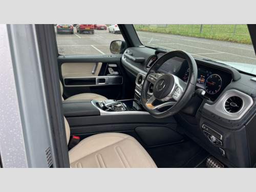 Mercedes-Benz G Class G350d AMG Line Premium 5dr 9G-Tronic 360 degree parking camera, Active lane keep assist, AMG dual bonded widescreen cockpit displays, Attention assist, Bluetooth interface for hands free telephone, COMAND online HDD Nav with media interface, radio/CD/DVD/MP3, 12.3" screen, linguatronic voice control, Communications module (LTE), Cruise control with speedtronic variable speed limiter, DYNAMIC SELECT with a choice of driving modes (ECO, Comfort, Sport, Sport+ and Individual), Mercedes connect me, Mercedes-Benz emergency call, Parktronic audio/visual front and rear parking aid, PAS, Service indicator (ASSYST), Smartphone integration with Apple CarPlay and Android auto, Touch pad controller for COMAND online, Traffic sign recognition, Trip computer, Diesel particulate filter (DPF), Differential lock, Electronic selectable low range gearing, Suspension with adaptive damping system, Aux-in socket, Burmester surround sound system with 16 speakers, DAB digital radio module, AMG bodystyling with flared wheel arches, Auto dimming rear view mirror, Automatic headlamp activation, Dark tinted heat insulated glass, Door mirror memory, Electric slide and tilt sunroof, Electrically adjustable and heated door mirrors, Front and rear electric windows, LED daytime running lights, Privacy glass, Radiator grille with chrome surround, Rain sensor windscreen wipers, Stainless steel door sill panels, set of four, illuminated and front Mercedes Benz lettering, Trailer coupling, Underguard - full length reinforced underfloor panelling, 1/3 to 2/3 split folding rear seats, 12V socket in boot/load compartment and rear passenger compartment, 2 cup holders in front and rear, Ambient lighting with 64 colours and projection of brand logo, AMG floor mats with AMG lettering, Electric adjustable steering column with memory, Electric front headrests with memory, Electric front seats with memory function, Electrically adjustable front seats, Front centre armrest with storage compartment, Heated front seats, Heated rear seats, Ionisation of interior air including fine particle activated charcoal filter system, Load protection net, Luggage compartment cover, Rear head restraints, THERMOTRONIC automatic climate control, Driving assistance pack - G Class, Exterior styling pack - G class, Stowage space pack - G class, 3x3 point rear seatbelts, ABS with Brake Assist, Adaptive brake system, Airbags - windowbags, Auto hold function, Black seat belts, Brake calipers with Mercedes-Benz lettering + perforated brake discs, Driver/Front Passenger airbags, Dry braking, Electronic four wheel traction control, ESP with ASR, Front side airbags, Hill start assist, i-Size and ISOFIX rear child restraint system, Pre-safe system for anticipatory occupant protection, Seatbelt pretensioners, Tyre pressure monitoring system, Anti-theft alarm system/interior protection with tow-away protection and interior monitoring systems, Immobiliser, Keyless Go access/ignition system, Remote central locking, Space saver spare wheel