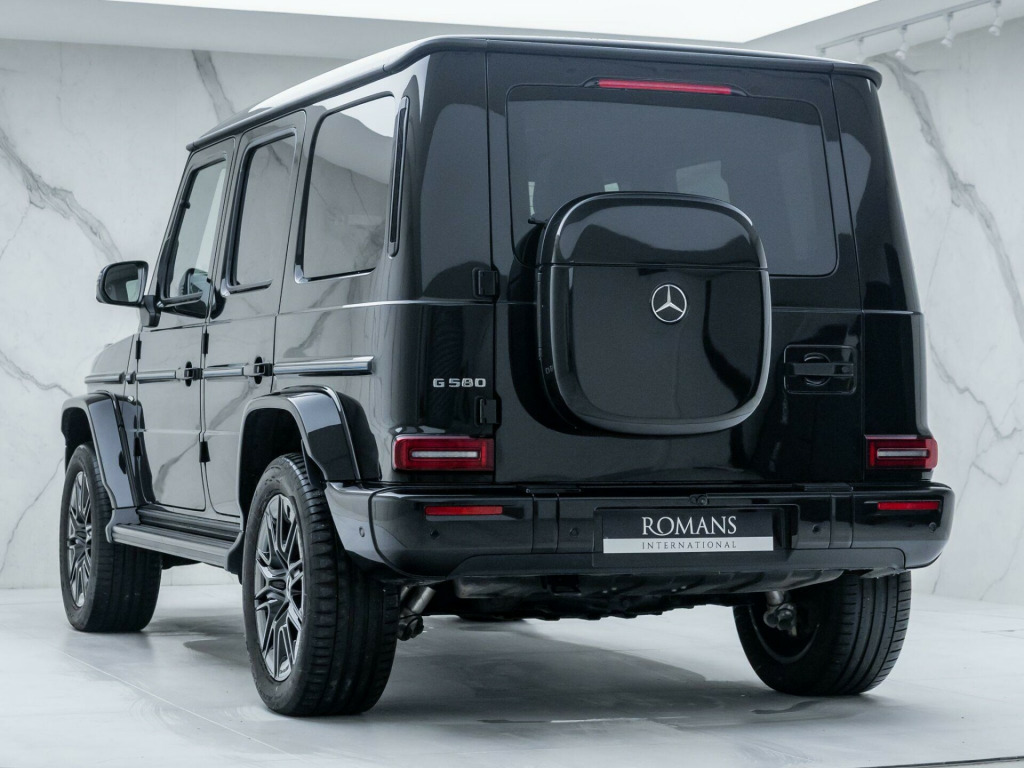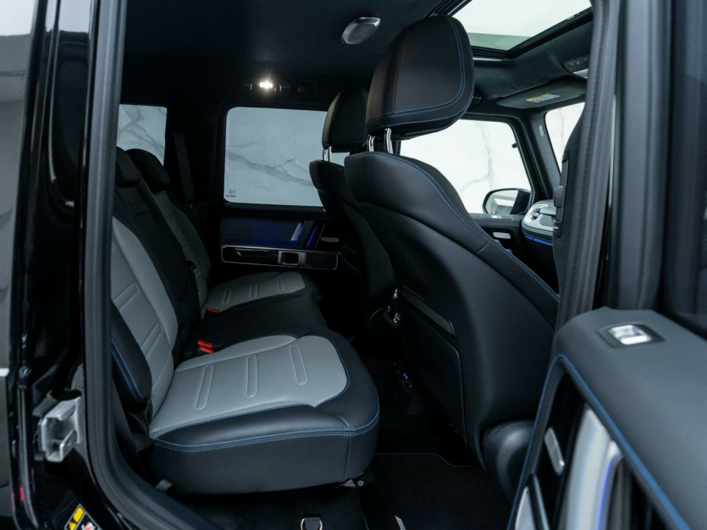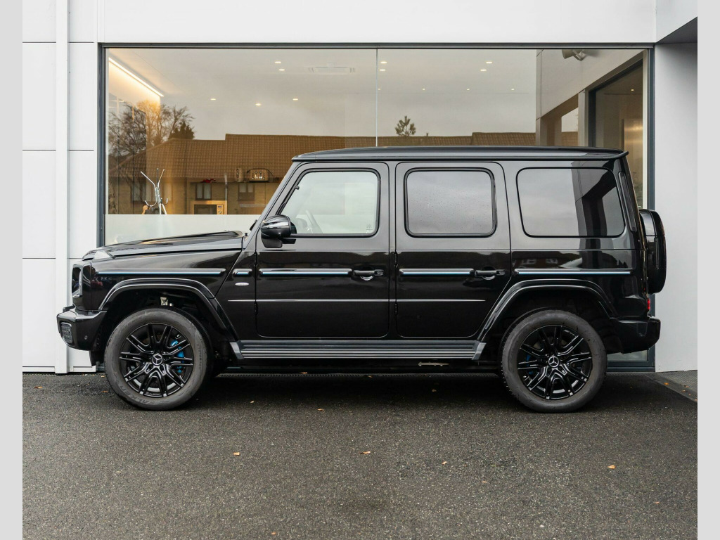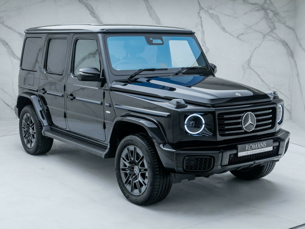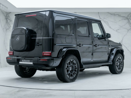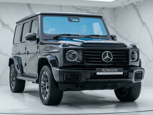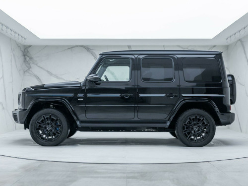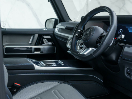 Finished in Obsidian Black Metallic Paint with Silver Pearl & Black Nappa Leather - The New Fully Electric G-Wagon - Limited Run 'Edition One' Example - 1 Owner From New - Mercedes-Benz Manufacturer's Warranty until October 2027 - UK SuppliedOptional Extras:20-Inch AMG 10-Spoke Light Alloy WheelsObsidian Black Metallic PaintSUPERIOR Line Interior (Including: Sliding Sunroof + Burmester 3D Surround Sound System + G-ROAR + Ionisation + Instrument Panel in Nappa Leather + Active Multicontour Seat Package Plus)Silver Pearl & Black Nappa LeatherBlue Carbon Fibre Trim ElementsStandard Features:Active Lane Keeping AssistAmbient LightingG-TURNMBUX EntertainmentParking Assist PARKTRONICSmartphone IntegrationTraffic Sign AssistTyre Pressure Monitoring System. 20-Inch AMG 10-Spoke Light Alloy Wheels, Obsidian Black Metallic Paint, SUPERIOR Line Interior, Silver Pearl & Black Nappa Leather, Blue Carbon Fibre Trim Elements.