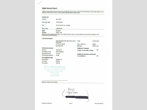 Discover this 2020 Mercedes Benz GLA200 Sport, a stylish and practical SUV that's ready for your next adventure. This Euro 6 compliant model boasts a responsive 1.3 litre petrol engine, delivering an engaging driving experience. Inside, you'll find comfort and convenience with heated front seats, perfect for those colder mornings. The Sport trim level ensures a well equipped interior, complemented by the impressive Mercedes Benz Sound System delivering 100W of clear audio. Navigating tight spaces is made easier with the reversing camera offering a 180 degree view, enhancing your awareness when parking. The GLA200 Sport also features striking LED High Performance Headlamps with integrated LED Daytime Running Lights, ensuring excellent visibility. With a swift 0-60mph acceleration time of just 8.7 seconds, this Mercedes Benz GLA offers a dynamic performance. Furthermore, you'll appreciate the generous boot space, providing ample room for luggage, shopping, or sports equipment, making it a versatile choice for everyday life and longer journeys. Comes with 3 Services recorded as well as just being serviced by ourselves, we will send it for a Brand New, Independent, 12 month MOT once it is ordered and it has 2 Keys. See below for its full list of features. Book today to view and test drive. Open 7 days a week. All part exchanges welcome. Please ask for details of our finance and extended warranty options, subject to status, T's and C's apply. Hard-Disc Navigation, MBUX Multimedia System, Reversing Camera with 180 Degree View, Heated Front Seats, Bluetooth Interface, Cruise Control with Limiter, DAB Digital Radio Tuner, THERMOTRONIC Luxury Automatic Climate Co, EASY-PACK Powered Tailgate, 18in Alloy Wheels , USB - Type C , Mercedes-Benz Sound System - 100W, Steering Wheel Gear Shift Paddles, Dynamic Select with a Choice of Driving , Hey Mercedes Voice Activation, Electric Windows - 4, Seat Comfort Package, Multifunction Sports Steering Wheel in L, Front Centre Armrest with Stowage Compar, Twin Front Cup Holders, KEYLESS-GO Starting Function, Steering Column Manually Adjustable for , Trip Computer in Multi-Function Display , Black