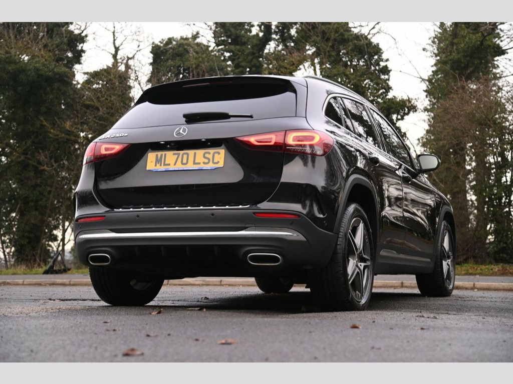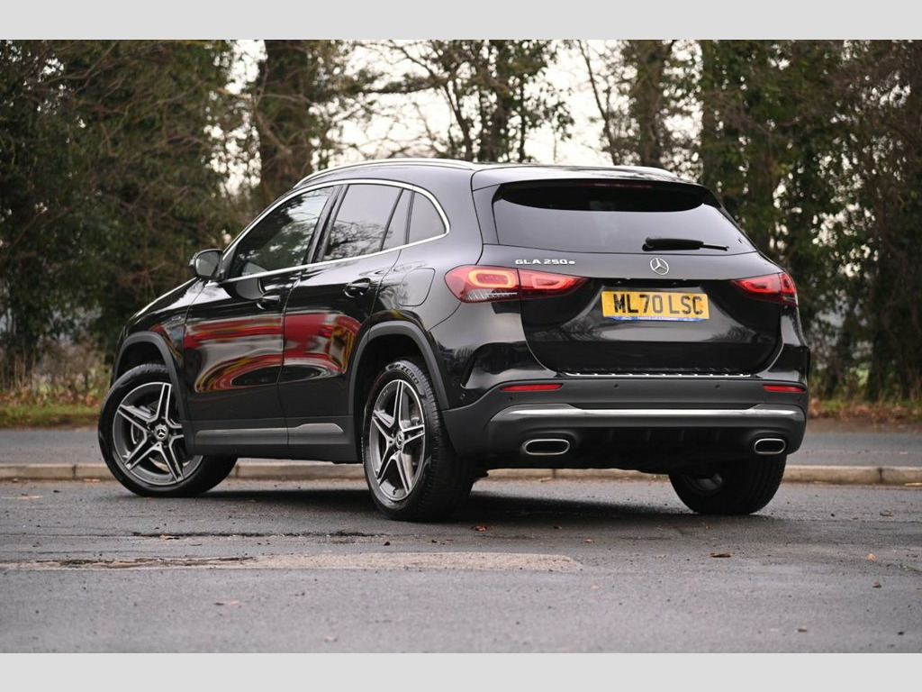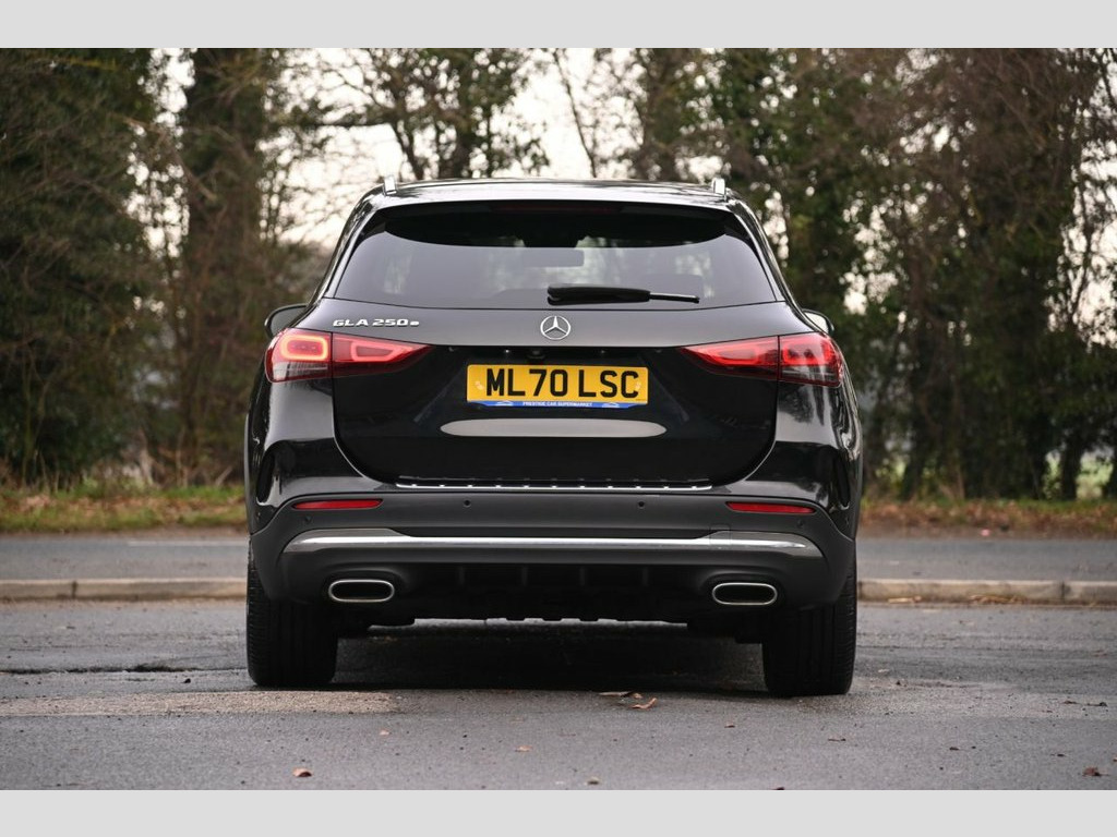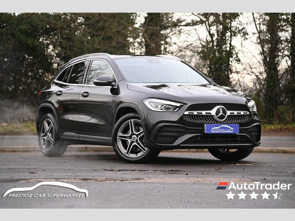 Prestige Car Supermarket in York presents this 2020 Mercedes-Benz GLA 1.3 GLA250e Exclusive Edition, a 218 ps Euro 6 petrol plug-in hybrid SUV finished in Cosmos Black with Black Leather upholstery and equipped with an extensive specification. Exterior highlights include AMG bodystyling, aerodynamically optimised 19-inch AMG 5-twin-spoke alloy wheels, polished aluminium roof rails, chrome beltline strips, privacy glass, LED High Performance headlamps with integrated daytime running lights, LED tail lamps, rain-sensing wipers, a heated rear screen and the EASY-PACK powered tailgate. The interior delivers premium comfort with heated sports seats, THERMOTRONIC two-zone climate control, a 7-inch instrument display, 10.25-inch MBUX touchscreen with hard-disk navigation, Mercedes Me Connect, smartphone integration, a Mercedes-Benz sound system, the Light and Sight Package, carbon-structure trim, illuminated vanity mirrors and ample stowage including a covered centre compartment, twin cupholders, backrest nets and the Load Compartment Package. Performance and driving technologies comprise Dynamic Select, radar-based recuperation, Direct-Steer, comfort suspension, Pre-Entry Climate Control, the 7.4 kW AC charging system with cables, Active Lane Keeping Assist, Active Brake Assist, Attention Assist, cruise control with limiter, Speed Limit Assist, parking sensors via the Parking Package and the car wash function. Safety and protection measures span multiple airbags including kneebags, Leather - Black, Cosmos Black, 19in Alloy Wheels - AMG 5-Twin Spoke Lig, ABS - Anti-Lock Braking System with BAS , AMG Bodystyling, ATTENTION Assist, Acoustic Ambient Protection, Active Bonnet - Pedestrian Safety Measur, Active Brake Assist, Active Lane Keeping Assist, Air Conditioning - THERMOTRONIC Luxury A, Airbags - Automatic Child Seat Recogniti, Airbags - Dual Stage - Driver and Front , Airbags - Head and Sidebags - Driver and, Airbags - Kneebags for Driver, Airbags - Windowbags for Driver and Fron, Alarm System with Immobiliser and Interi, Beltline Strips and Weather Strip in Chr, Black Grained Claddings with Chrome Part, Brake-Pad Wear Warning Indicator, Brakes - Front Calipers with