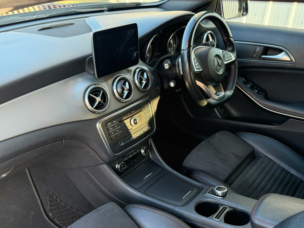 This 2016 Mercedes Benz GLA200 AMG Line (Executive) is a superb example of a premium compact SUV, offering a blend of style and practicality. Powered by a responsive 1.6 litre petrol engine, this Euro 6 compliant model delivers an impressive 0-62mph in just 8.1 seconds. The AMG Line trim enhances its sporty appeal, while the Executive package adds desirable features such as heated seats for added comfort and parking assistance sensors front and rear, complemented by a reversing camera with a 180 degree view to make manoeuvring effortless.Experience seamless connectivity with the Audio 20 Radio CD system, featuring Bluetooth for hands free calls and music streaming, alongside smartphone integration that supports both Android Auto and Apple CarPlay. Automatic headlight activation ensures optimal visibility, and you'll appreciate the generous boot space for all your luggage. This GLA boasts a highlight fuel economy of 49 mpg and low CO2 emissions, indicating its efficiency compared to similar vehicles in its class., in alloy wheels - amg 5-spoke design in titanium grey with high sheen finish, abs - anti-lock braking system with bas - brake assist, amg bodystyling - front and rear apron - side skirts, attention assist, active bonnet - pedestrian safety measure which detects an impact and raises bonnet by 65mm, active braking assist, adaptive brake assist with hold function and hill start assist, adaptive brake lights, air vents with chrome surround and cruciform nozzle, airbags - automatic child seat recognition sensor, airbags - dual stage - driver and front passenger, airbags - sidebags for driver and front passenger, airbags - windowbags for driver and front passenger, ambient lighting - single colour in headrests, anti-theft protection package, audio 20 radio-cd, beltline strips - chrome, brake calipers with mercedes-benz lettering, brushed stainless steel sports pedals with rubber studs, bumpers - front and rear apron trim - matt titanium grey, childproof locks - manually operated for rear doors and electrically operated for rear power windows, crash-responsive emergency lighting, direct select gearshift lever - steering wheel gearshift paddles and cruise control with speedtronic variable speed limiter, door handles - body coloured, door mirrors - body-coloured with integrated led indicators and aspherically curved mirror glass, door mirrors - electrically adjustable and heated, double cup holder in centre console, drivers kneebag, dynamic select with a choice of driving modes - eco-comfort-sport and individual, easy-pack powered tailgate, esp - electronic stability programme with asr - acceleration skid control, electric parking brake, electric windows - 4, electronic key - chrome surround, executive package, exhaust system - visible two-pipe with chrome tailpipe tips, first aid kit and warning triangle, floor mats - red stitched edging - amg lettering, footwell lighting - front and rear, front centre armrest with stowage compartment, front and rear bumpers in vehicle body colour, glass - rear windscreen - heated with timer control, headlight assist - automatic headlight activation, headlights - halogen, isofix and top-tether child seat fixing points in rear, illuminated front door sills with mercedes-benz lettering, illuminated glove compartment, instrument cluster - fluid level warning indicator for fuel - oil - coolant and washer fluid, instrument cluster - outside temperature display, instrument cluster - trip computer in multi-function display showing current fuel consumption, instrument cluster with 4 analogue dials and needles suspended in six-o-clock position, interior lighting - courtesy white and warning red lights in the front doors and boot lid, interior lighting - sun visor with illuminated vanity mirror for driver and front passenger, interior lighting in rear with integrated reading lights and locator lighting, lighting in storage compartment and sun visors with illuminated vanity mirrors, load securing rings in luggage compartment, luggage compartment cover, luggage nets on the rear of front seats, media display - 8in, media interface, mercedes me connect, net in passenger footwell, off road comfort suspension, part led tail lights, power steering - sports direct steer system with speed sensitive servo assistance, privacy glass - from b-pillar backwards, radiator grille - two louvres in silver with chrome highlights, radio aerial roof spoiler, rear armrest with twin cup holder and through-loading facility, rear seats - split folding 1-3 2-3, rear windscreen wiper with intermittent wipe and automatic activation when reversing, remote central locking, reversing camera with 180 degree view, roof lining - black, roof rails - aluminium finish, run flat tyres, seat belt reminder - front and rear, seat belts - black, seat belts - rear three-point - 3, seat comfort package, seat occupancy sensor - front passenger seat, seats - front cushion length adjustment, seats - front manually adjustable, service indicator assyst, single colour ambient lighting in interior door handles, smartphone integration, spectacles compartment in overhead control panel, sports seats with integrated head restraints, steering column - manually adjustable for height and reach, steering wheel - 3-spoke - 12 button multi-function - trimmed in nappa leather with perforated leather in grip area - flattened bottom section, storage boxes under front seats, storage compartment beneath load compartment floor, thermotronic luxury automatic climate control - two-zone with display, third brake light in led technology, trim - light aluminium with longitudinal grain, tyre pressure monitoring system, wiper system - heated front windscreen with washer system, wiper system - windscreen wipers including rain sensor with two sensitivity stages, amg seats