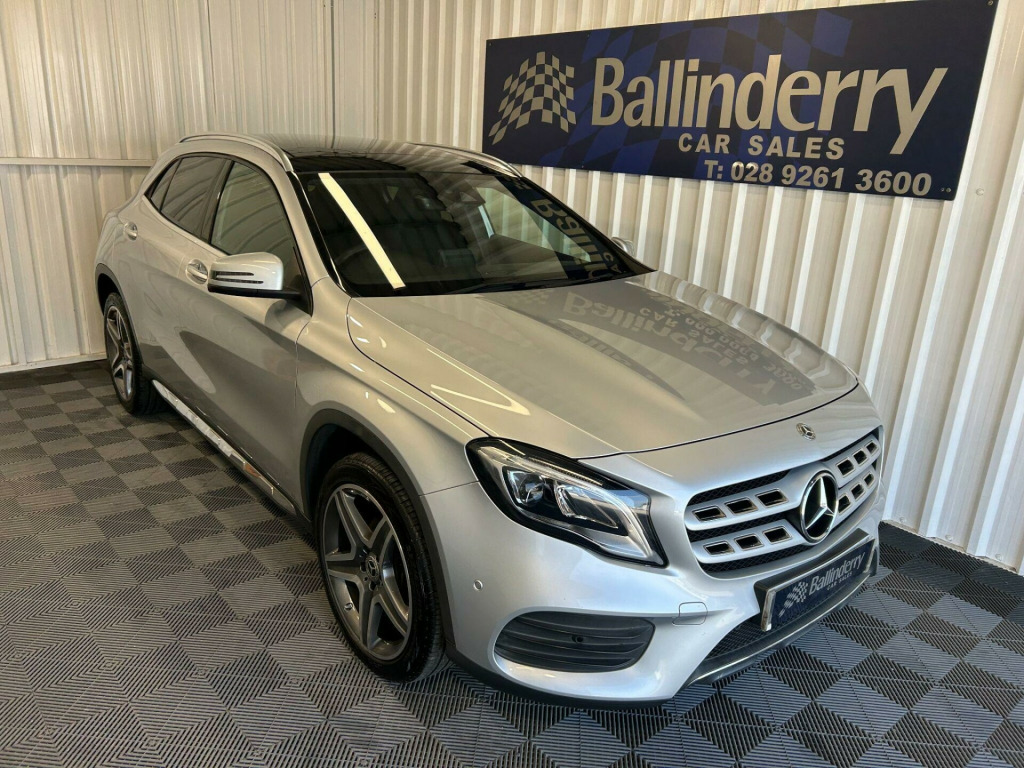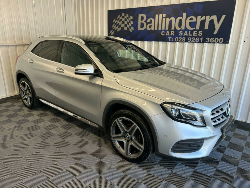 PERFECT EXAMPLE OF THIS MERCEDES GLA 200 AMG LINE PREMIUM PLUS IN SILVER. SPEC INCLUDES:** OPENING GLASS PANORAMIC SUNROOF** 19 INCH ALLOYS** PRIVACY GLASS** SILVER ROOF RAILS** HALF LEATHER SPORTS SEATS** HEATED SEATS** ELECTRIC MEMORY FRONT SEATS** AIR CON** FRONT & REAR PARKING SENSORS** CRUISE CONTROL** FOLDING MIRRORS** SAT NAV** BLUE TOOTHLOW RATE FINANCE DEALS AVAILABLE WITH NO DEPOSIT REQUIRED.ALL TRADE IN`S WELCOME.TELEPHONE MARK OR STUART ON 02892 613600 OR 07802 396444. Glass Panoramic Sun Roof, 19in Alloy Wheels - AMG 5-Spoke Design in Titanium Grey with High Sheen Finish, ABS - Anti-Lock Braking System with BAS - Brake Assist, AMG Bodystyling - Front and Rear Apron - Side Skirts, ATTENTION Assist, Active Bonnet - Pedestrian Safety Measure which Detects an Impact and Raises Bonnet by 65mm, Active Braking Assist, Adaptive Brake Assist with Hold Function and Hill Start Assist, Adaptive Brake Lights, Air Vents with Chrome Surround and Cruciform Nozzle, Airbags - Automatic Child Seat Recognition Sensor, Airbags - Dual Stage - Driver and Front Passenger, Airbags - Sidebags for Driver and Front Passenger, Airbags - Windowbags for Driver and Front Passenger, Ambient Lighting - Single Colour in Headrests, Anti-Theft Protection Package, Audio 20 Radio-CD, Beltline Strips - Chrome, Brake Calipers with Mercedes-Benz Lettering, Brushed Stainless Steel Sports Pedals with Rubber Studs, Bumpers - AMG Bodystyling with Inserts in Front Splitter and Side Sill Panels and Rear Apron Trim in Matt Titanium Grey, Childproof Locks - Manually Operated for Rear Doors and Electrically Operated for Rear Power Windows, Crash-Responsive Emergency Lighting, Cruise Control with Limiter, Door Handles - Body Coloured, Door Mirrors - Body-Coloured with Integrated LED Indicators and Aspherically Curved Mirror Glass, Door Mirrors - Electrically Adjustable and Heated, Double Cup Holder in Centre Console, Drivers Kneebag, Dynamic Select with a Choice of Driving Modes - ECO-Comfort-Sport and Individual, EASY-PACK Powered Tailgate, ESP - Electronic Stability Programme with ASR - Acceleration Skid Control, Electric Parking Brake, Electric Windows - 4, Electronic Key - Chrome Surround, Exhaust System - Visible Two-Pipe with Chrome Tailpipe Tips, First Aid Kit and Warning Triangle, Floor Mats - Red Stitched Edging - AMG Lettering, Footwell Lighting - Front and Rear, Four-Way Lumbar Support, Front Centre Armrest with Stowage Compartment, Front and Rear Bumpers in Vehicle Body Colour, Garmin Map Pilot Navigation System, Glass - Rear Windscreen - Heated with Timer Control, Headlight Assist - Automatic Headlight Activation, ISOFIX and Top-Tether Child Seat Fixing Points in Rear, Illuminated Front Door Sills with Mercedes-Benz Lettering, Instrument Cluster - Fluid Level Warning Indicator for Fuel - Oil - Coolant and Washer Fluid, Instrument Cluster - Outside Temperature Display, Instrument Cluster - Trip Computer in Multi-Function Display Showing Current Fuel Consumption, Instrument Cluster with 4 Analogue Dials and Needles Suspended in Six-o-Clock Position, Interior Lighting - Courtesy White and Warning Red Lights in the Front Doors and Boot Lid, Interior Lighting - Sun Visor with Illuminated Vanity Mirror for Driver and Front Passenger, Interior Lighting in Rear with Integrated Reading Lights and Locator Lighting, KEYLESS-GO Starting Function, Luggage Compartment Cover, Media Display - 8in, Media Interface, Mercedes Me Connect, Off Road Comfort Suspension, Power Steering - Sports Direct Steer System with Speed Sensitive Servo Assistance, Premium Plus Package, Privacy Glass - From B-Pillar Backwards, Radiator Grille - Two Louvres in Silver with Chrome Highlights, Radio Aerial Roof Spoiler, Rear Armrest with Twin Cup Holder and Through-Loading Facility, Rear Seats - Split Folding 1-3 2-3, Rear Windscreen Wiper with Intermittent Wipe and Automatic Activation When Reversing, Remote Central Locking, Reversing Camera with 180 Degree View, Roof Lining - Black, Roof Rails - Aluminium Finish, Run Flat Tyres, Seat Belt Reminder - Front and Rear, Seat Belts - Black, Seat Belts - Rear Three-Point - 3, Seat Comfort Package, Seat Occupancy Sensor - Front Passenger Seat, Seats - Front Cushion Length Adjustment, Seats - Front Manually Adjustable, Service Indicator ASSYST, Shift Point Indicator, Single Colour Ambient Lighting in Interior Door Handles, Smartphone Integration, Sports Seats with Integrated Head Restraints, Steering Column - Manually Adjusta.