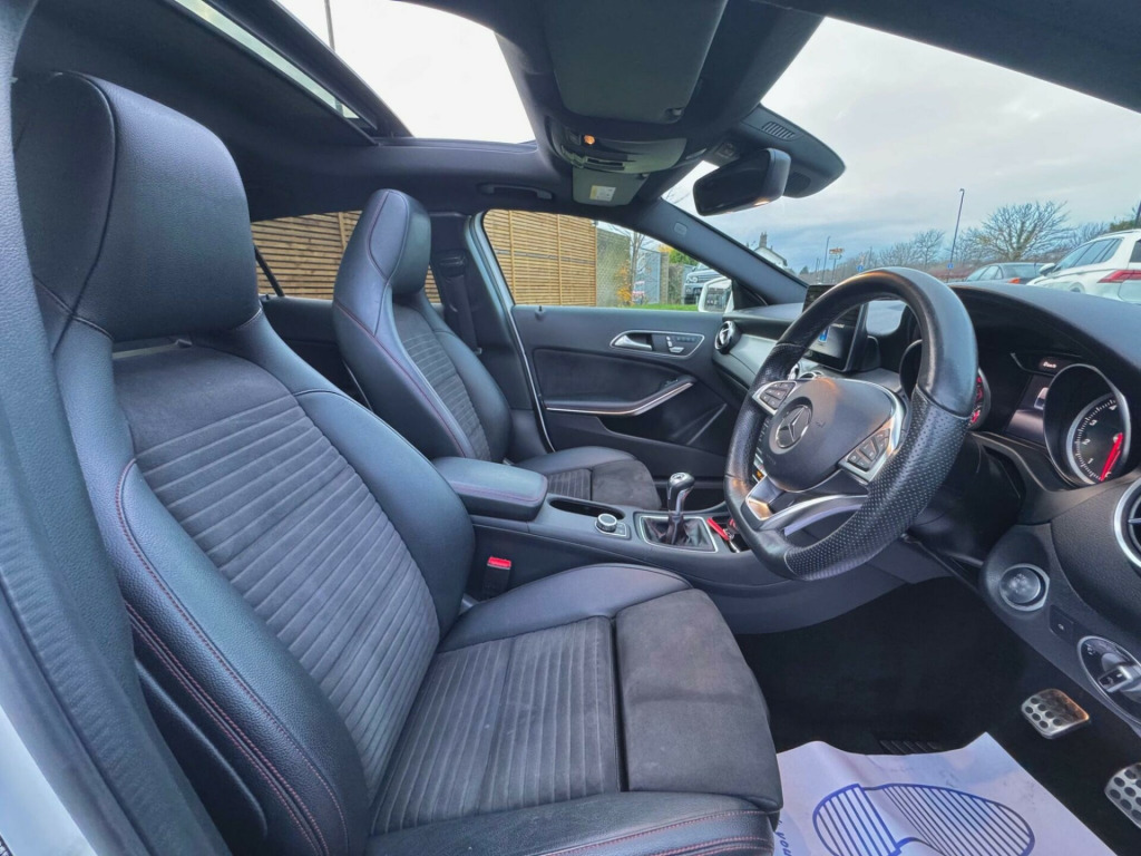 This 2018 Mercedes Benz GLA200 AMG Line (Premium Plus) offers a sophisticated driving experience with its Euro 6 compliant 1.6 litre petrol engine. As a Premium Plus model, it comes equipped with a host of desirable features including LED headlights for enhanced visibility, a panoramic opening sunroof to brighten the cabin, and keyless entry for effortless access. Inside, you'll find heated front seats with memory function and four way lumbar support for maximum comfort, alongside the Audio 20 radio CD system with Bluetooth connectivity.The GLA200 AMG Line excels in practicality and technology, boasting impressive boot space for all your needs. Smartphone integration with Apple CarPlay and Android Auto keeps you connected on the go, while the reversing camera with a 180 degree view and front and rear parking sensors make manoeuvring simple. This model accelerates from 0 to 62 miles per hour in just 8.4 seconds, demonstrating a responsive performance that sets it apart from other vehicles in its class. in alloy wheels - amg 5-spoke design in titanium grey with high sheen finish, abs - anti-lock braking system with bas - brake assist, amg bodystyling - front and rear apron - side skirts, attention assist, active bonnet - pedestrian safety measure which detects an impact and raises bonnet by 65mm, active braking assist, adaptive brake assist with hold function and hill start assist, adaptive brake lights, air vents with chrome surround and cruciform nozzle, airbags - automatic child seat recognition sensor, airbags - dual stage - driver and front passenger, airbags - sidebags for driver and front passenger, airbags - windowbags for driver and front passenger, ambient lighting - single colour in headrests, anti-theft protection package, audio 20 radio-cd, beltline strips - chrome, brake calipers with mercedes-benz lettering, brushed stainless steel sports pedals with rubber studs, bumpers - amg bodystyling with inserts in front splitter and side sill panels and rear apron trim in matt titanium grey, childproof locks - manually operated for rear doors and electrically operated for rear power windows, crash-responsive emergency lighting, cruise control with limiter, door handles - body coloured, door mirrors - body-coloured with integrated led indicators and aspherically curved mirror glass, door mirrors - electrically adjustable and heated, double cup holder in centre console, drivers kneebag, dynamic select with a choice of driving modes - eco-comfort-sport and individual, easy-pack powered tailgate, esp - electronic stability programme with asr - acceleration skid control, electric parking brake, electric windows - 4, electronic key - chrome surround, exhaust system - visible two-pipe with chrome tailpipe tips, first aid kit and warning triangle, floor mats - red stitched edging - amg lettering, footwell lighting - front and rear, four-way lumbar support, front centre armrest with stowage compartment, front and rear bumpers in vehicle body colour, garmin map pilot navigation system, glass - rear windscreen - heated with timer control, headlight assist - automatic headlight activation, isofix and top-tether child seat fixing points in rear, illuminated front door sills with mercedes-benz lettering, instrument cluster - fluid level warning indicator for fuel - oil - coolant and washer fluid, instrument cluster - outside temperature display, instrument cluster - trip computer in multi-function display showing current fuel consumption, instrument cluster with 4 analogue dials and needles suspended in six-o-clock position, interior lighting - courtesy white and warning red lights in the front doors and boot lid, interior lighting - sun visor with illuminated vanity mirror for driver and front passenger, interior lighting in rear with integrated reading lights and locator lighting, keyless-go starting function, luggage compartment cover, media display - 8in, media interface, mercedes me connect, off road comfort suspension, power steering - sports direct steer system with speed sensitive servo assistance, premium plus package, privacy glass - from b-pillar backwards, radiator grille - two louvres in silver with chrome highlights, radio aerial roof spoiler, rear armrest with twin cup holder and through-loading facility, rear seats - split folding 1-3 2-3, rear windscreen wiper with intermittent wipe and automatic activation when reversing, remote central locking, reversing camera with 180 degree view, roof lining - black, roof rails - aluminium finish, run flat tyres, seat belt reminder - front and rear, seat belts - black, seat belts - rear three-point - 3, seat comfort package, seat occupancy sensor - front passenger seat, seats - front cushion length adjustment, seats - front manually adjustable, service indicator assyst, shift point indicator, single colour ambient lighting in interior door handles, smartphone integration, sports seats with integrated head restraints, steering column - manually adjustable for height and reach, steering wheel - 3-spoke - 12 button multi-function - trimmed in nappa leather with perforated leather in grip area - flattened bottom section, storage compartment beneath load compartment floor, thermotronic luxury automatic climate control - two-zone with display, tail lights - partial led, third brake light in led technology, tirefit tyre sealant kit, trim - light aluminium with longitudinal grain, tyre pressure monitoring system, wiper system - windscreen wipers including rain sensor with two sensitivity stages