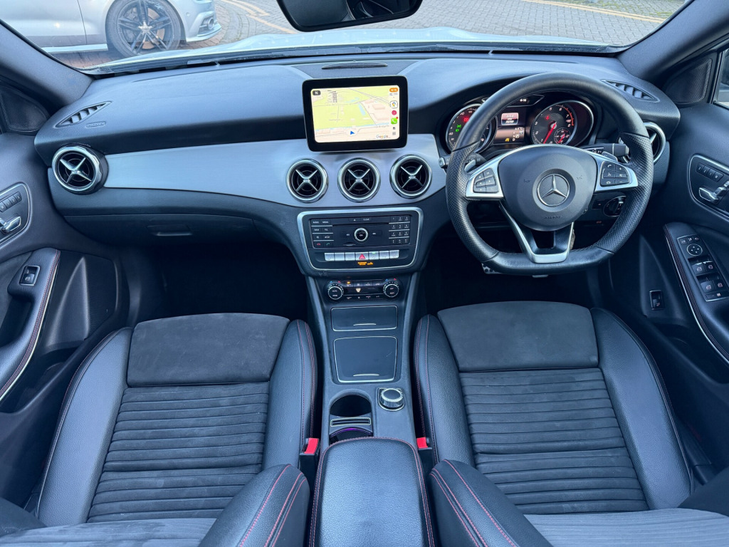 AA INSPECTED, ELECTRIC SEATS, ULEZ FREE, FRESH SERVICE, TOTAL OF 4 SERVICES (3 MAIN DEALER SERVICES), MOT DUE 05/12/2026, SATNAV, PARKING SENSORS, CLIMATE CONTROL, HALF LEATHER TRIM, TYRE INFLATION KIT, 19'' ALLOY WHEELS, PANORAMIC ROOF, PRIVACY GLASSThis 2018 Mercedes-Benz GLA200 AMG Line (Premium Plus) SUV is a sleek and stylish 5-door vehicle with 70750 miles on the clock. Powered by a 1.6 petrol engine, it is ULEZ compliant and comes with MOT until 05/12/2026. With 5 comfortable seats and a spacious interior, it is perfect for families or those who love to travel in style. The 19in Alloy Wheels and AMG Bodystyling give it a sporty edge, while the Beltline Strips in Chrome and Brake Calipers with Mercedes-Benz Lettering add a touch of luxury. The SUV also features AMG Bodystyling, front and rear apron trim, and comes in a Titanium Grey with High Sheen Finish. This Mercedes-Benz GLA is both practical and eye-catching, making it the perfect choice for those seeking a reliable yet sophisticated vehicle. in alloy wheels - amg 5-spoke design in titanium grey with high sheen finish, amg bodystyling - front and rear apron - side skirts, beltline strips - chrome, brake calipers with mercedes-benz lettering, bumpers - front and rear apron trim - matt titanium grey, door handles - body coloured, door mirrors - body-coloured with integrated led indicators and aspherically curved mirror glass, door mirrors - electrically adjustable and heated, electric windows - 4, exhaust system - visible two-pipe with chrome tailpipe tips, front and rear bumpers - body colour, glass - rear windscreen - heated with timer control, privacy glass - from b-pillar backwards, radiator grille - two louvres in silver with chrome highlights, roof rails - aluminium finish, run flat tyres, abs - anti-lock braking system with bas - brake assist, active bonnet - pedestrian safety measure which detects an impact and raises bonnet by 65mm, active braking assist, adaptive brake assist with hold function and hill start assist, airbags - automatic child seat recognition sensor, airbags - dual stage - driver and front passenger, airbags - sidebags for driver and front passenger, airbags - windowbags for driver and front passenger, anti-theft protection package, braking - adaptive brake lights - flash under emergency braking, childproof locks - manually operated for rear doors and electrically operated for rear power windows, crash-responsive emergency lighting, drivers kneebag, esp - electronic stability programme with asr - acceleration skid control, electric parking brake, electronic key - chrome surround, first aid kit and warning triangle, isofix and top-tether child seat fixing points in rear - two outer seats, rear windscreen wiper with intermittent wipe and automatic activation when reversing, remote central locking, seat belt reminder - front and rear, seat belts - rear three-point - 3, seat occupancy sensor - front passenger seat, attention assist, direct select gearshift lever - steering wheel gearshift paddles and cruise control with speedtronic variable speed limiter, dynamic select with a choice of driving modes - eco-comfort-sport and individual, eco start-stop function, instrument cluster - fluid level warning indicator for fuel - oil - coolant and washer fluid, instrument cluster - outside temperature display, instrument cluster - trip computer in multi-function display showing current fuel consumption, off road comfort suspension, power steering - sports direct steer system with speed sensitive servo assistance, reversing camera with 180 degree view, service indicator assyst, tyre pressure monitoring system, air vents with chrome surround and cruciform nozzle, ambient lighting - single colour in headrests, brushed stainless steel sports pedals with rubber studs, double cup holder in centre console, easy-pack powered tailgate, floor mats - red stitched edging - amg lettering, footwell lighting - front and rear, front centre armrest with stowage compartment, glove compartment - illuminated, illuminated front door sills with mercedes-benz lettering, instrument cluster with 4 analogue dials and needles suspended in six-o-clock position, interior lighting - courtesy white and warning red lights in the front doors and boot lid, interior lighting - lighting in stowage compartment and sun visors with illuminated vanity mirrors, interior lighting - sun visor with illuminated vanity mirror for driver and front passenger, interior lighting in rear with integrated reading lights and locator lighting, keyless-go starting function, luggage compartment cover, premium plus package, rear seats - split folding 1-3 2-3, roof lining - black, seat belts - black, seat comfort package, seats - front cushion length adjustment, seats - front manually adjustable, single colour ambient lighting in interior door handles, sports seats with integrated head restraints, steering column - manually adjustable for height and reach, steering wheel - 3-spoke - 12 button multi-function - trimmed in nappa leather with perforated leather in grip area - flattened bottom section, storage compartment beneath load compartment floor, thermotronic luxury automatic climate control - two-zone with display, trim - light aluminium with longitudinal grain, wiper system - windscreen wipers including rain sensor with two sensitivity stages, audio 20 radio-cd, media display - 8in, media interface, mercedes me connect, radio aerial roof spoiler, smartphone integration, headlamp assist - automatic headlamp activation in dark conditions, tail lights - partial led, third brake light in led technology