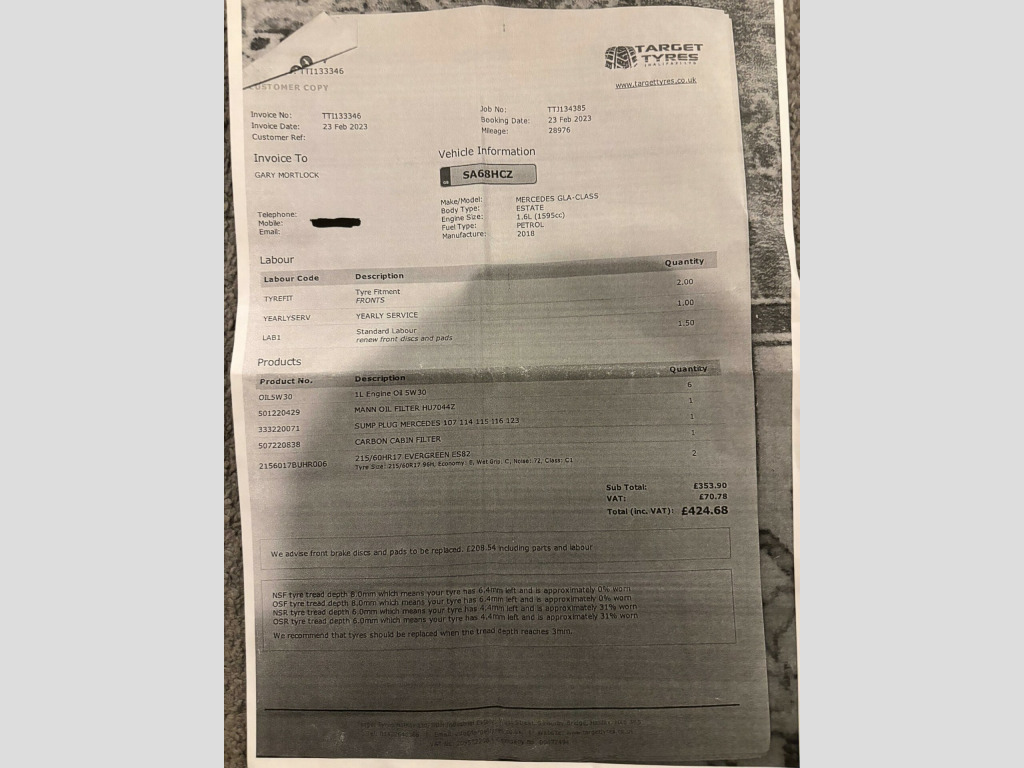 Discover this 2018 Mercedes Benz GLA200 SE, a stylish and practical compact SUV. This Euro 6 compliant model boasts a responsive 1.6 litre petrol engine, offering an impressive 0-62mph acceleration in just 8.4 seconds. Inside, you'll find comfort and convenience with THERMATIC air conditioning, a reversing camera with a 180 degree view for easy parking, and the Audio 20 radio CD system with Bluetooth connectivity. Automatic headlight activation ensures you always have optimal visibility, and smartphone integration with both Android Auto and Apple CarPlay keeps you connected on the go.The GLA200 SE stands out with its generous boot space, providing ample room for all your luggage and shopping needs. This vehicle's combination of performance, advanced technology, and practicality makes it a superior choice in its class. Experience the refined driving experience that Mercedes Benz is renowned for, all within this well equipped and capable GLA.. 17in Alloy Wheels - 5-Twin-Spoke Design Painted in Vanadium Silver, ABS - Anti-Lock Braking System with BAS - Brake Assist, ATTENTION Assist, Active Bonnet - Pedestrian Safety Measure which Detects an Impact and Raises Bonnet by 65mm, Active Braking Assist, Adaptive Brake Assist with Hold Function and Hill Start Assist, Adaptive Brake Lights, Air Conditioning - THERMATIC, Air Vents with Chrome Surround and Cruciform Nozzle, Airbags - Automatic Child Seat Recognition Sensor, Airbags - Dual Stage - Driver and Front Passenger, Airbags - Sidebags for Driver and Front Passenger, Airbags - Windowbags for Driver and Front Passenger, Anti-Theft Protection Package, Audio 20 Radio-CD, Beltline Strips - Chrome, Bumpers - Front and Rear with Simulated Underguard, Childproof Locks - Manually Operated for Rear Doors and Electrically Operated for Rear Power Windows, Crash-Responsive Emergency Lighting, Cruise Control with Limiter, Door Handles - Body Coloured, Door Mirrors - Body-Coloured with Integrated LED Indicators and Aspherically Curved Mirror Glass, Door Mirrors - Electrically Adjustable and Heated, Double Cup Holder in Centre Console, Drivers Kneebag, EASY-PACK Powered Tailgate, ESP - Electronic Stability Programme with ASR - Acceleration Skid Control, Electric Parking Brake, Electric Windows - 4, Electronic Key - Chrome Surround, First Aid Kit and Warning Triangle, Front Centre Armrest with Stowage Compartment, Front and Rear Bumpers in Vehicle Body Colour, Glass - Rear Windscreen - Heated with Timer Control, Headlight Assist - Automatic Headlight Activation, Headlights - Halogen, ISOFIX and Top-Tether Child Seat Fixing Points in Rear, Instrument Cluster - Fluid Level Warning Indicator for Fuel - Oil - Coolant and Washer Fluid, Instrument Cluster - Outside Temperature Display, Instrument Cluster - Trip Computer in Multi-Function Display Showing Current Fuel Consumption, Instrument Cluster with 4 Analogue Dials and Needles Suspended in Six-o-Clock Position, KEYLESS-GO Starting Function, Luggage Compartment Cover, Media Interface, Mercedes Me Connect, Off Road Comfort Suspension, Power Steering - Speed Sensitive Steering with Speed Sensitive Servo Assistance, Privacy Glass - From B-Pillar Backwards, Radiator Grille - Two Louvres in Silver with Chrome Highlights, Radio Aerial Roof Spoiler, Rear Armrest with Twin Cup Holder and Through-Loading Facility, Rear Seats - Split Folding 1-3 2-3, Rear Windscreen Wiper with Intermittent Wipe and Automatic Activation When Reversing, Remote Central Locking, Reversing Camera with 180 Degree View, Roof Lining - Grey Fabric, Roof Rails in High Gloss Black, Seat Belt Reminder - Front and Rear, Seat Belts - Black, Seat Belts - Rear Three-Point - 3, Seat Comfort Package, Seat Occupancy Sensor - Front Passenger Seat, Seats - Front Cushion Length Adjustment, Seats - Front Manually Adjustable, Seats with Adjustable Head Restraints, Service Indicator ASSYST, Shift Point Indicator, Smartphone Integration, Steering Column - Manually Adjustable for Height and Reach, Steering Wheel - 3-Spoke - 12 Button Multi-Function - Trimmed in Nappa Leather, Storage Compartment Beneath Load Compartment Floor, Tail Lights - Partial LED, Third Brake Light in LED Technology, Tirefit Tyre Sealant Kit, Trim - Matrix, Tyre Pressure Monitoring System. Full service history