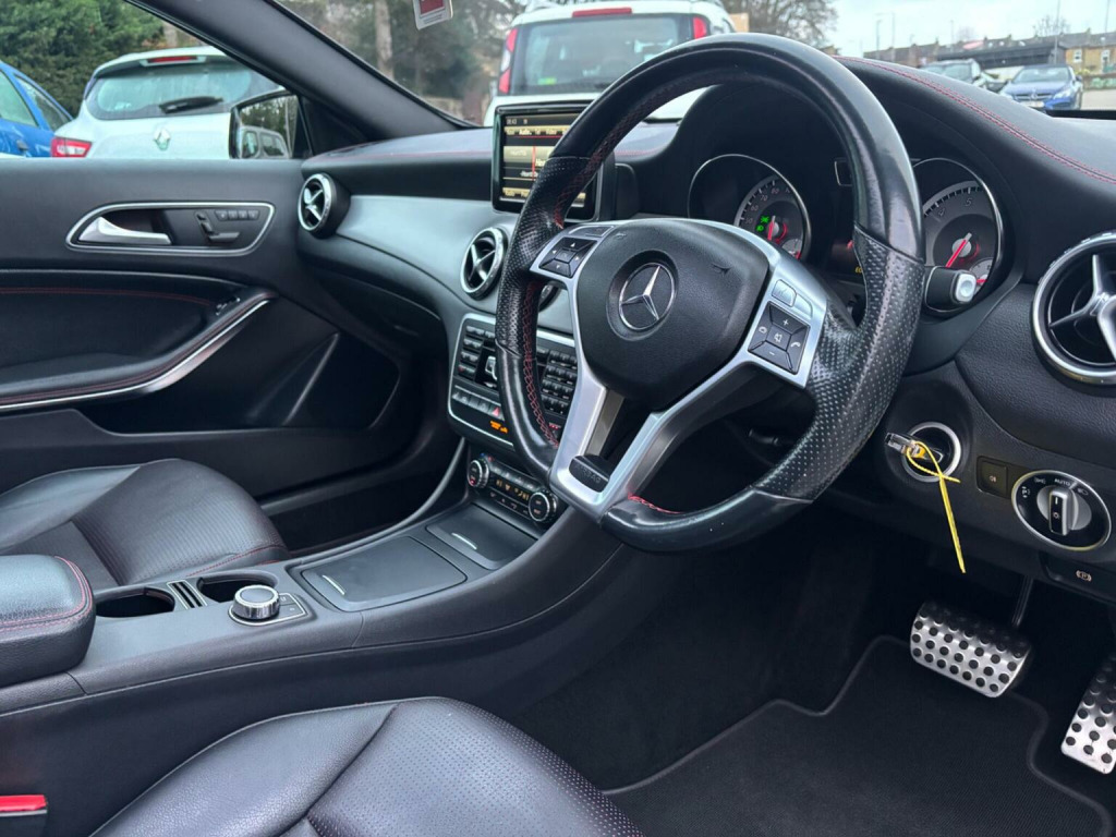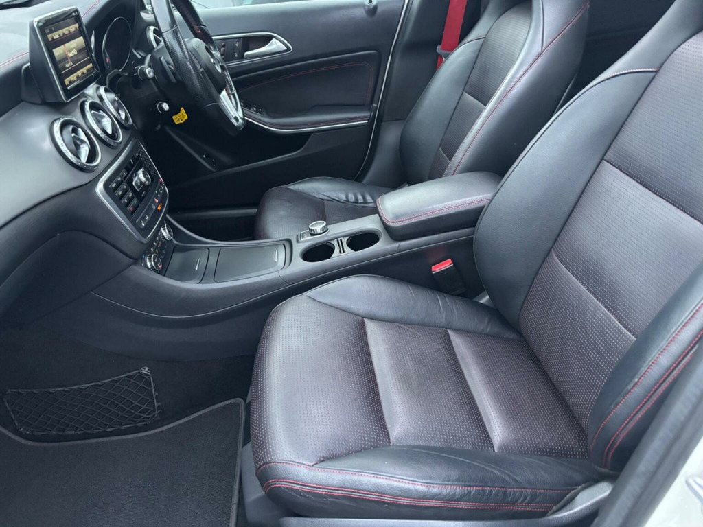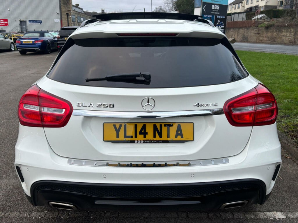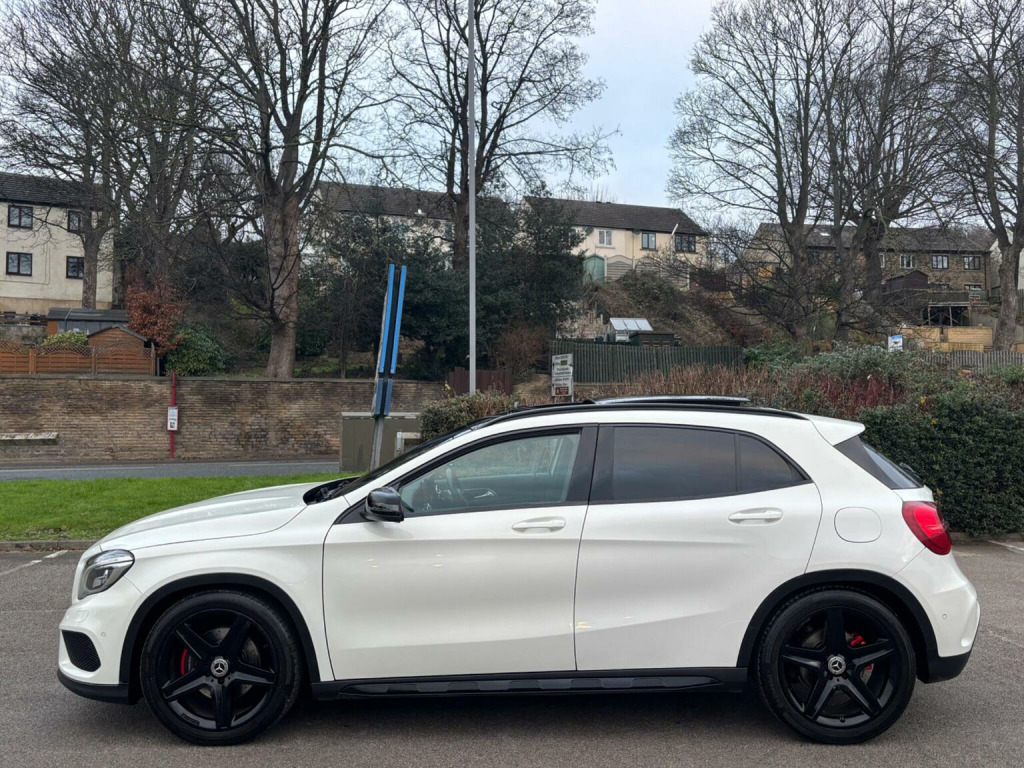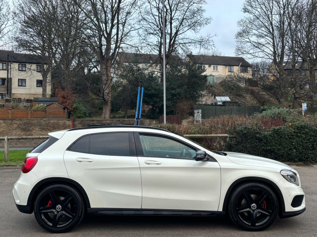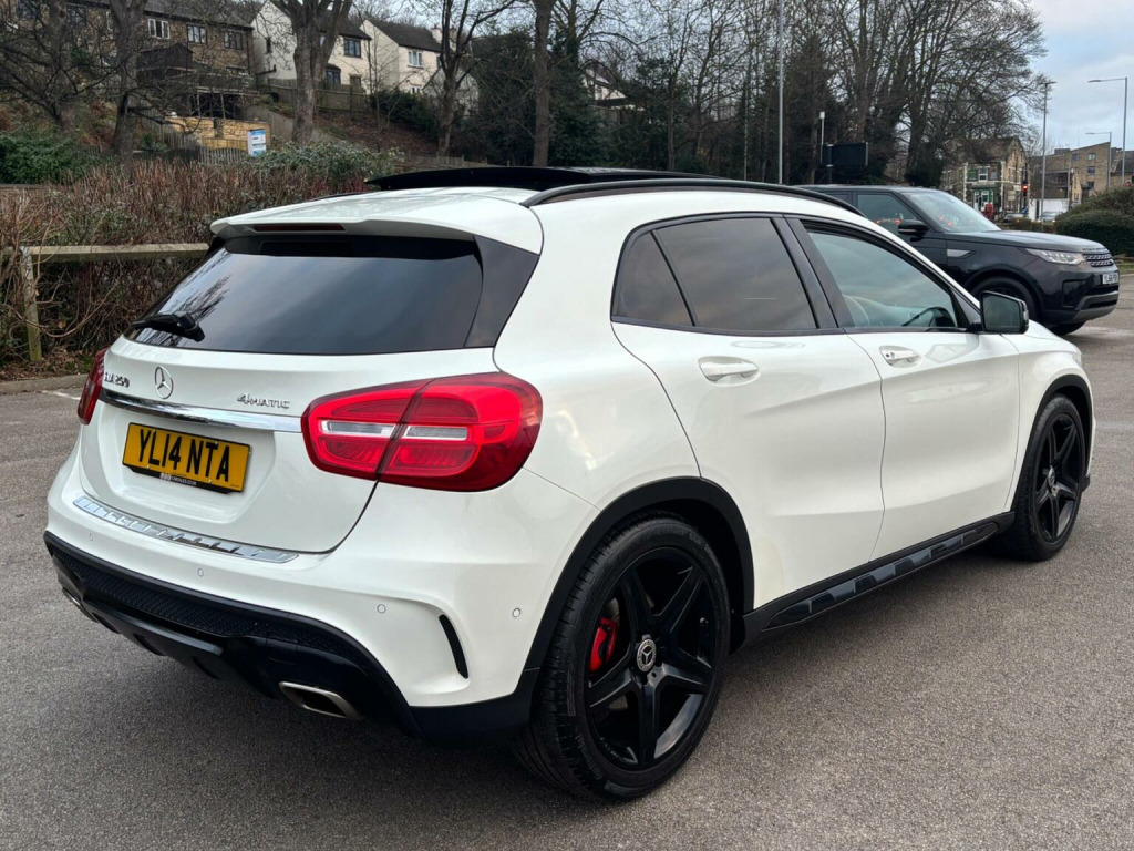WE ARE PLEASED TO OFFER THIS HIGHLY DESIRABLE HIGH SPECIFICATION HIGHLY MAINTAINED RARE ONE OWNER FOUR WHEEL DRIVE PETROL EURO SIX MERCEDES-BENZ GLA 2.0 GLA250 AMG LINE ( PREMIUM PLUS ) SUV FIVE DOOR 7G-DCT 4MATIC EURO SIX FIVE DOOR SUV + FINISHED IN THE BEST COLOUR OF CALCITE WHITE PAINTWORK AND IS COMPLEMENTED WITH A FULL BLACK NAPPA LEATHER WITH RED STITCHING + ONLY 90,721 MILES HAS BEEN COVERED IN TOTAL BY ONE OWNER AND IS BACKED WITH AN EXCELLENT SERVICE HISTORY WHICH IS COMPRISED OF TEN SERVICES + THE SERVICE HISTORY INCLUDES THE AUTOMATIC GEARBOX OIL BEING CHANGED AT 80,218 MILES BY GERMAN AUTO CARE OF PUDSEY ON THE 4TH OF JUNE 2024 + JUST BEEN SERVICED + 12 MONTHS MOT + OUTSTANDING CONDITION THROUGHOUT AND DRIVES SUPERB + 211 BHP MODEL + FULL AMG LINE ( PREMIUM PLUS ) SPECIFICATION WHICH INCLUDES AN ELECTRIC PANORAMIC GLASS SUNROOF / NIGHT PACKAGE / HEATED FRONT SEATS / FULL ELECTRIC PACK WITH ELECTRIC FRONT SEATS ( BOTH THE DRIVER AND PASSENGER SEATS HAVE MEMORY FUNCTION ) / COMMAND MEDIA INTERFACE WITH SATELLITE NAVIGATION / DAB TUNER / OFF ROAD PACKAGE / AMG EXTERIOR STYLING PACK / DARK TINTED GLASS / AMG EXCLUSIVE PACK / 19 AMG FIVE SPOKE ALLOY WHEELS FINISHED IN GLOSS BLACK AND FITTED WITH CONTINENTAL TYRES ALL ROUND / PARKING DISTANCE CONTROL FRONT AND REAR WITH REAR VIEW CAMERA / MULTI FUNCTION LEATHER STEERING WHEEL / BLUETOOTH HANDS FREE PHONE PACK / VEHICLE DYNAMICS PACKAGE / AUTOMATIC HIGH BEAM SWITCH / POWER TAILGATE PLUS MUCH MORE + HANDBOOK PACK + DIGITAL PRINTOUT SERVICE HISTORY + 2 X KEYS + ANY TRIAL OR INSPECTION IS WELCOMED + HPI CLEAR WITH CERTIFICATE + SIX MONTHS NATIONWIDE WARRANTY IS INCLUDED + MERCEDES-BENZ BUILD QUALITY + THIS TRULY CHERISHED EXAMPLE MUST BE VIEWED TO BE APPRECIATED AND MUST NOT BE CONFUSED WITH LESSER EXAMPLES AVAILABLE. We have been established in Baildon for over 20 years. All our vehicles are fully inspected, prepared and valeted. We are finance specialists. Part exchange is welcome. All major credit and debits accepted. Open 7 days. Our postcode is BD177EX.