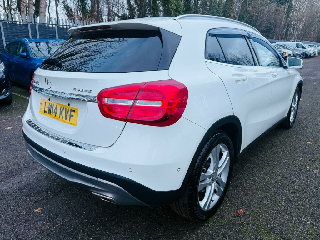 WHITE, FINANCE AVAILABLE, NAVIGATION SYSTEM, REVERSE CAMERA, LEATHER SEATS , HEATED SEATS, ADAPTIVE CRUISE CONTROL, LEATHER SEATS, SUN ROOF AND PANORAMIC ROOF, APPLE CAR PLAY, ONLY ONE OWNER, ULEZ COMPLIANTWARRANTED AND VARIFIABLE LOW MILEAGE WITH IMPORTED DOCUMENTS.This 2014 Mercedes Benz GLA250 AMG Line (Premium) boasts exceptionally low mileage for its age, having covered just 38025 miles, and benefits from an MOT valid until November 2026. This Euro 6 compliant four wheel drive model is powered by a responsive 2.0 litre petrol engine, offering an impressive 0-62mph acceleration in just 7.1 seconds. The AMG Line trim enhances its sporty appeal, complemented by perforated front brake discs and brake calipers featuring Mercedes Benz lettering. Inside, the Premium package ensures a refined experience, with a sports steering wheel finished in Nappa leather, a rear centre armrest complete with twin cup holders and a through load facility, and convenient storage boxes located under the front seats.The generous boot space provides ample room for luggage or shopping, making this GLA a practical choice for various needs. The combination of its dynamic performance, sophisticated AMG Line styling, and the added benefits of the Premium package clearly sets this Mercedes Benz GLA apart from other vehicles in its class. This particular GLA250 AMG Line represents a compelling blend of luxury, performance, and practicality.. 12V Socket in Luggage Compartment, 18in Alloy Wheels - AMG 5-Spoke Design in Titanium Grey with High Sheen Finish, 5.8-inch Tablet-Style Colour Display, ABS - Anti-Lock Braking System, AMG Bodystyling - Front and Rear Apron and Side Skirts, ASR - Acceleration Skid Control, ATTENTION Assist, Active Bonnet - Pedestrian Safety Measure which Detects an Impact and Raises Bonnet by 65mm, Active Park Assist with Parktronic, Adaptive Brake Assist with Hold Function and Hill Start Assist, Adaptive Brake Lights, Air Conditioning, Air Vents with Chrome Surround and Cruciform Nozzle, Airbag - Drivers Knee, Airbag - Dual-Stage - Front Passenger, Airbags - Dual-Stage - Driver, Airbags - Head for Driver and Front Passenger, Airbags - Windowbags, Alarm System with Immobiliser and Interior Protection, Ambient Lighting in Front and Rear Headrests, Ambient Lighting in the Four Door Recesses - Door Pulls and Door Trim, Audio 20 Radio-CD, Automatic Child Seat Recognition Sensor, Automatically Dimming Rear View Mirror, Beltline Strips - Chrome, Bluetooth, Bumpers - Body-Coloured, Central Storage Compartment with 12v Socket, Centre Armrest - Front with Storage, Centre Armrest - Rear, Centre Armrest - Rear with Twin Cup Holders and Through-Load Facility, Childproof Locks - Manually Operated for Rear Doors and Electrically Operated for Rear Power Windows, Collision Prevention Assist, Controller on Centre Console with Chrome Surround, Crash-Responsive Emergency Lighting, DAB Digital Radio Tuner, Door Handles - Body-Coloured, Door Mirrors - Electrically Folding, Door Mirrors - Integrated LED Indicators, Door Sill Panels - Mercedes-Benz Lettering - Illuminated, EASY-PACK Powered Tailgate, ESP - Electronic Stability Programme, Electric Parking Brake, Electric Windows - 4, Electronic Key - Chrome Surround, Exhaust System - Visible Two-Pipe with Chrome Tailpipe Tips, First Aid Kit, Fluid Level Warning Indicator for Fuel - Oil - Coolant and Washer Fluid, Footwell Lights in Front, Front and Rear Apron Trim - Matt Titanium Grey, Glove Compartment - Illuminated, Headlight Assist - Automatic Headlight Activation, Headlight Wash, Headlights - Bi-Xenon, Headlights - Reflector Beam, Heated Front Seats, Heated Rear Window with Timer Control, High Level Third Brake Light - LED, ISOFIX and Top-Tether Child Seat Fixing Points in Rear, Indicators - Lane Change Function, Instrument Cluster with 4 Analogue Dials and Needles Suspended in Six-o-Clock Position, Leather-Trimmed Gear Shift with Chrome Highlights, Lighting in Luggage Comparment, Load-Securing Rings in Luggage Compartment, Luggage Compartment Cover, Media Interface, Outside Temperature Gauge, Parcel Nets in Luggage Compartment, Parcel Nets on Driver and Front Passenger Seat Backrests, Parking Sensor - Front, Parking Sensor - Rear, Perforated Front Brake Discs and Brake Calipers with Mercedes-Benz Lettering, Power Assisted Steering, Pre-Wiring for Becker Map Pilot Navigation System, Premium Package, Privacy Glass - From B-Pillar Backwards, Radiator Grille - Two Louvres in Silver with Chrome Highlights, Radio Aerial Roof Spoiler, Rain Sensing Windscreen Wipers, Rear Seats - Split Folding 1-3 - 2-3, Remote Central Locking, Reversing Camera, Roof Rails - Aluminium Finish, Seat Belt Reminder - Front and Rear, Seat Belts - Rear Three-Point - 3, Seat Comfort Package - Seat Height Adjusters and Seat Cushion Angle Adjustment on Front Seats, Seat Occupancy Sensor - Front Passenger Seat, Seats - Front Manually Adjustable, Sidebags for Driver and Front Passenger, Speakers x6, Sports Direct Steering, Sports Pedals - Stainless Steel with Rubber Studs, Sports Seats with Integrated Head Restraints, Steering Column - Manually Adjustable for Height and Reach, Steering Wheel - Sports-3-Spoke Flat-Bottomed Multi-Func. Nappa Leather Perforated, Storage Box Under Front Seats, Storage Compartment Beneath Load Compartment Floor, Storage Compartment Under Boot Floor, Storage Compartment in Front Doors, Sun Visors with Illuminated Vanity.