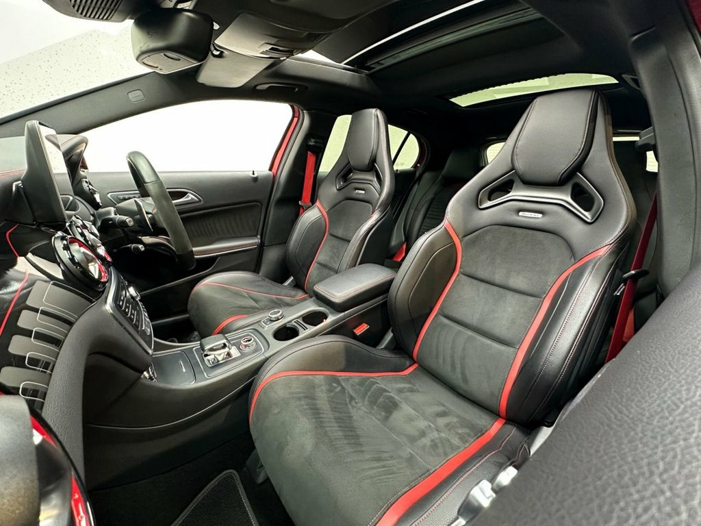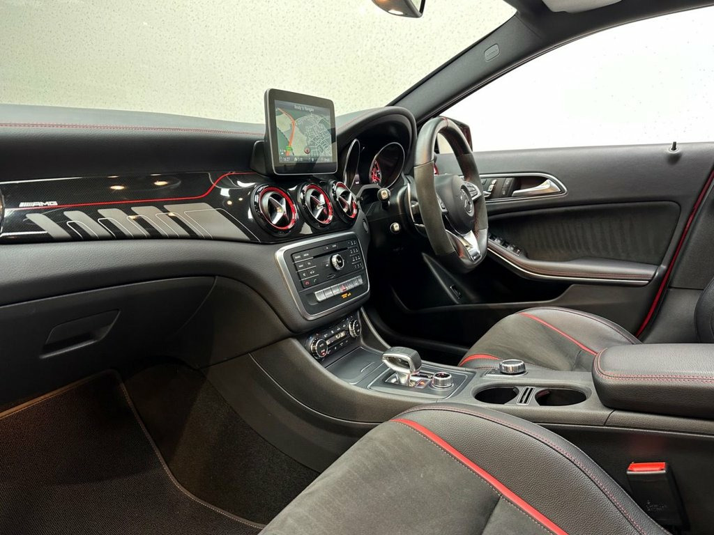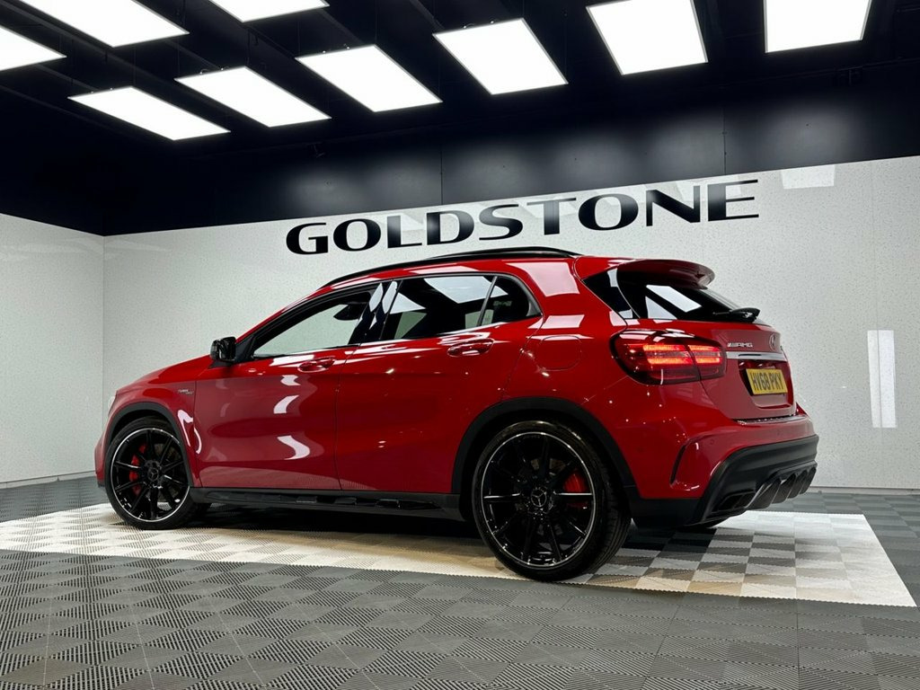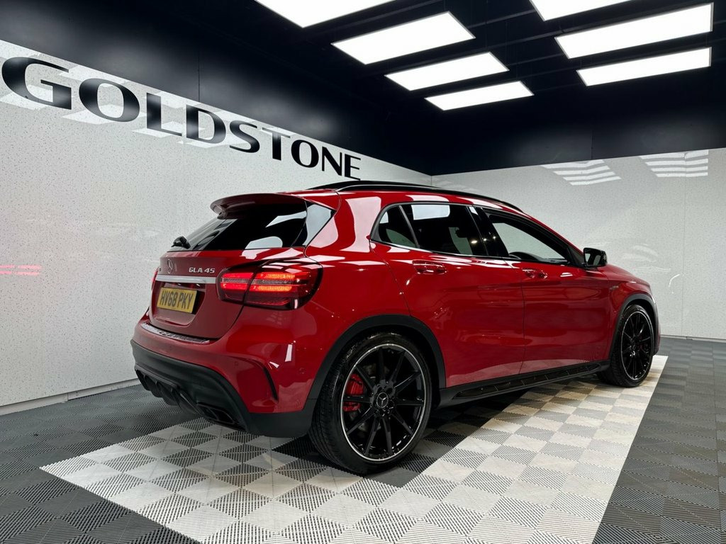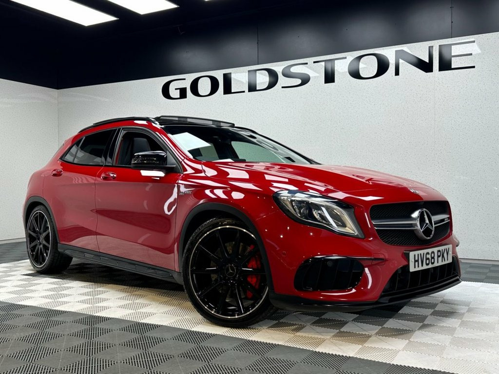 STUNNING JUPITER RED 45 AMG | FULL MERCEDES SERVICE HISTORY | AMG NIGHT PACKAGE | 20" AMG 10 SPOKE ALLOYS | AMG PERFORMANCE SEATS | ALCANTARA AMG STEERING WHEEL | PANORAMIC SUNROOF | HEATED MEMORY ADJUST SEATS | HARMAN KARDON SOUND SYSTEM | APPLE CARPLAY | ANDROID AUTO | FRONT AND REAR PARKING SENSORS WITH REVERSE CAMERA | AMBIENT LIGHTING | BLISTERINGLY QUICK AMG WITH LUXURY TO MATCH | A striking and exceptionally specified performance SUV, this Jupiter Red GLA 45 AMG delivers blistering pace, everyday usability, and unmistakable AMG presence. Supported by a full Mercedes-Benz service history, this is a standout example finished in one of the most eye-catching colours available on the GLA 45. At the heart of the GLA 45 sits AMG's hand-built 2.0-litre turbocharged engine, renowned for its ferocious acceleration and razor-sharp response. Power delivery is immediate and relentless, making this a genuinely fast car in any situation, while AMG's performance tuning ensures it remains composed and confidence-inspiring whether driven hard or used daily. It is a compact performance SUV that feels every bit a true AMG. The exterior is enhanced by the AMG Night Package, giving the car a more aggressive, purposeful stance. Combined with 20" AMG 10-spoke alloy wheels, it carries serious road presence while retaining the premium finish expected of a Mercedes-AMG. Inside, the cabin blends motorsport influence with luxury refinement. The AMG Performance seats offer Jupiter Red, AMG Night Package, 20in Alloy Wheels - AMG 10-Spoke Design, 19in Alloy Wheels - AMG 5-Twin-Spoke Des, ABS - Anti-Lock Braking System with BAS , AMG Bodystyling, AMG Drive Unit with Leather-Trimmed Gear, AMG Dynamic Select with a Choice of Driv, AMG High-Performance Brake System, AMG Instrument Cluster with Colour Displ, AMG Sports Exhaust System - Two Chromed , AMG Sports Suspension, ATTENTION Assist, Active Bonnet - Pedestrian Safety Measur, Active Braking Assist, Active Parking Assist, Adaptive Brake Assist with Hold Function, Air Vents with Black Surround - Red Inse, Airbags - Automatic Child Seat Recogniti, Airbags - Dual Stage - Driver and Front , Airbags - Sidebags for Dri