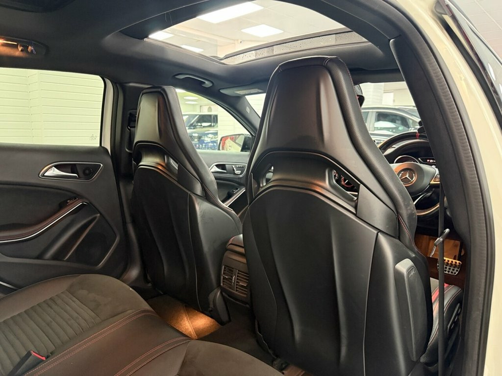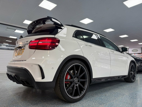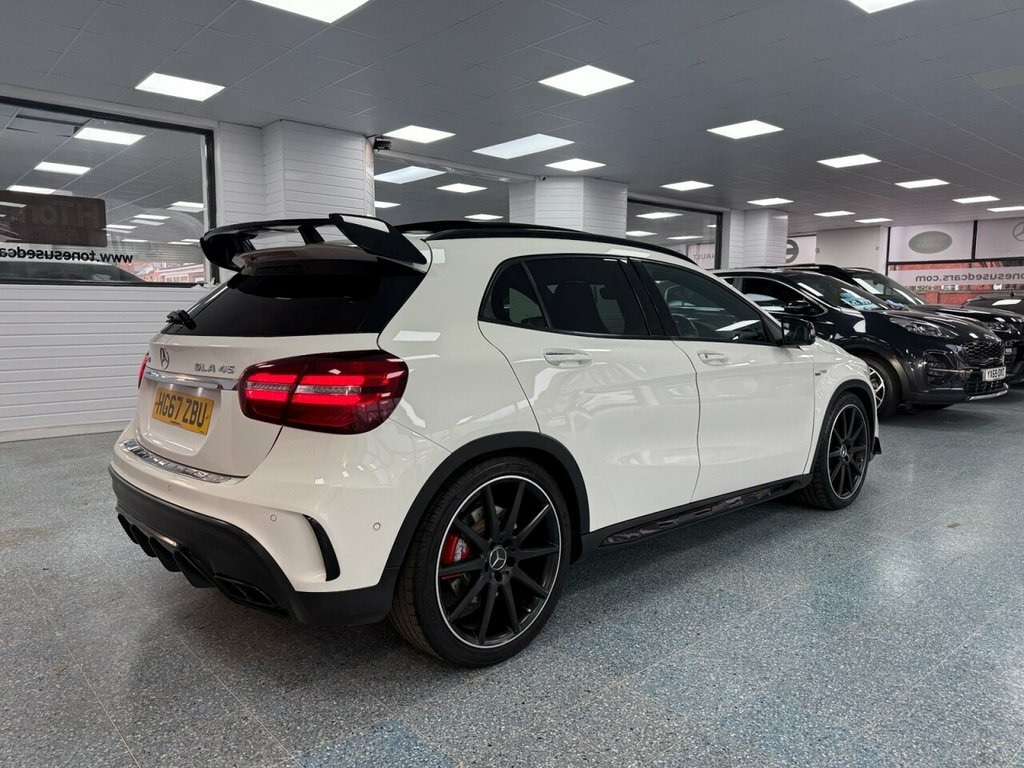 This 2017 Mercedes Benz GLA45 AMG Premium boasts exceptionally low mileage for its age, having covered just 50,249 miles. This impressive example of the AMG trim features a potent 2.0L petrol engine paired with a four wheel drive system, ensuring dynamic performance. It meets Euro 6 emission standards and comes equipped with desirable optional extras including the AMG Night Package and AMG Aerodynamics Package. Inside, you'll find a luxurious cabin enhanced by Carbon Fibre trim and THERMOTRONIC luxury automatic climate control for two zones, complete with a display. Entertainment and connectivity are handled by the Audio 20 Radio CD system, which includes Bluetooth functionality. The GLA45 AMG is designed for those who appreciate exhilarating driving. Its remarkable 0-60mph acceleration time of just 4.4 seconds highlights its performance capabilities, setting it apart from many other vehicles in its class. This combination of potent engineering, premium features, and careful ownership makes this Mercedes Benz GLA a compelling choice for any discerning driver. Polar White, Trim - Carbon Fibre, AMG Night Package, AMG Aerodynamics Package, 20in Alloy Wheels - AMG 10-Spoke - Paint, AMG Performance Exhaust, 19in Alloy Wheels - AMG 5-Twin-Spoke Des, ABS - Anti-Lock Braking System with BAS , AMG Bodystyling, AMG Drive Unit with Leather-Trimmed Gear, AMG Dynamic Select with a Choice of Driv, AMG High-Performance Brake System, AMG Instrument Cluster with Colour Displ, AMG Sports Exhaust System - Two Chromed , AMG Sports Suspension, ATTENTION Assist, Active Bonnet - Pedestrian Safety Measur, Active Braking Assist, Adaptive Brake Assist with Hold Function, Air Vents with Black Surround - Red Inse, Airbags - Automatic Child Seat Recogniti, Airbags - Dual Sta