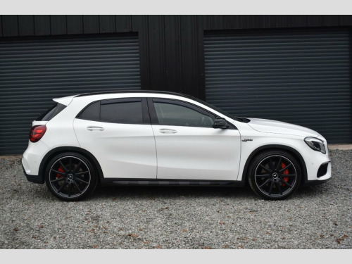 Great example finished in Polar white. This is the top of the range GLA 45 Premium with a vast specification as listed. boasting a full service history we have the all the service receipts & 2 remote keys, huge specification includes: Apple CarPlay, factory fitted satellite navigation, electric panoramic sunroof, DAB radio, reverse camera, front and rear parking sensors, full AMG body styling package, 20 inch AMG alloy wheels with Pirelli tyres, Harman Kardon hifi upgrade, sports exhaust, full black electric memory leather interior, heated seats, AMG sport seats with red piping, active part assist, sports suspension, power tailgate, dual climate control, air conditioning, cruise control with speed limiter, AMG performance flat bottom steering wheel, voice activation, on board computer, Tiptronic with steering wheel gear change, high beam assist, attention assist, collision warning with active brake intervein, automatic headlights and wipers, red seat belts, sun protection glass, keyless go, power folding mirrors, electric windows x4, Isofix child seat anchors, alternative refrigerant, LED intelligent headlight system, LED day running lights, rear spoiler, Ambience lighting, traction control, sports rear diffuser, quad exhaust, superb example. 19in Alloy Wheels - AMG 5-Twin-Spoke Des, ABS - Anti-Lock Braking System with BAS , AMG Bodystyling, AMG Drive Unit with Leather-Trimmed Gear, AMG Dynamic Select with a Choice of Driv, AMG High-Performance Brake System, AMG Instrument Cluster with Colour Displ, AMG Sports Exhaust System - Two Chromed , AMG Sports Suspension, ATTENTION Assist, Active Bonnet - Pedestrian Safety Measur, Active Braking Assist, Adaptive Brake Assist with Hold Function, Air Vents with Black Surround - Red Inse, Airbags - Automatic Child Seat Recogniti, Airbags - Dual Stage - Driver and Front , Airbags - Sidebags for Driver and Front , Airbags - Windowbags for Driver and Fron, Aluminium Steering Wheel Gearshift Pad