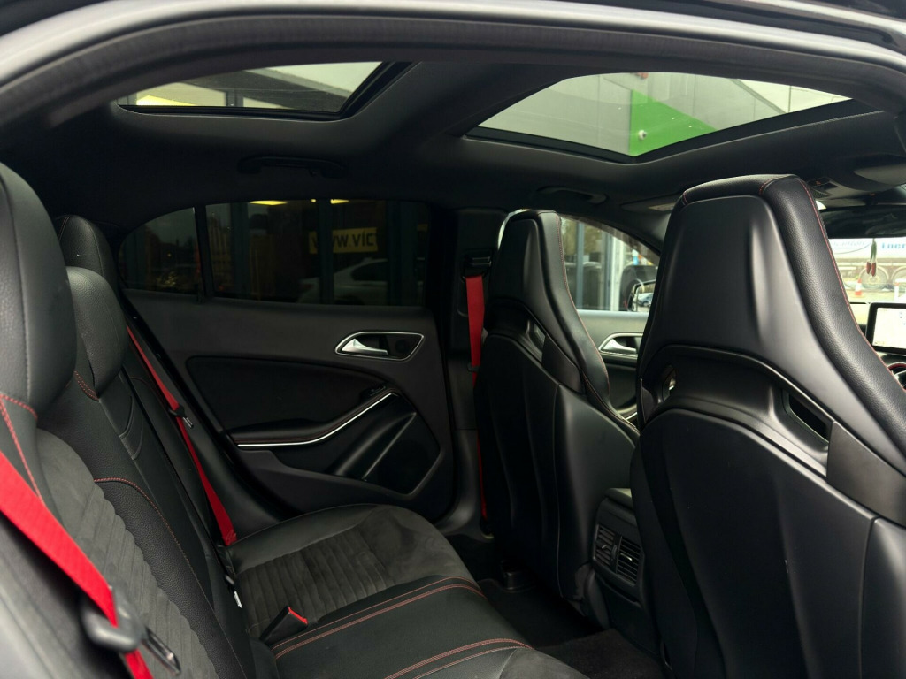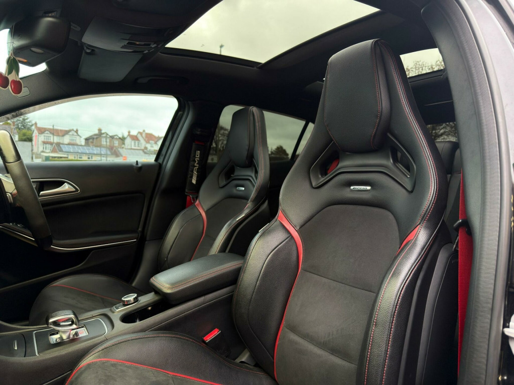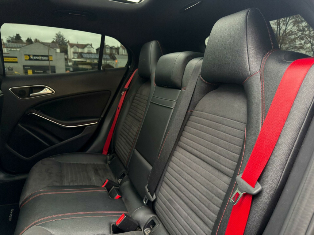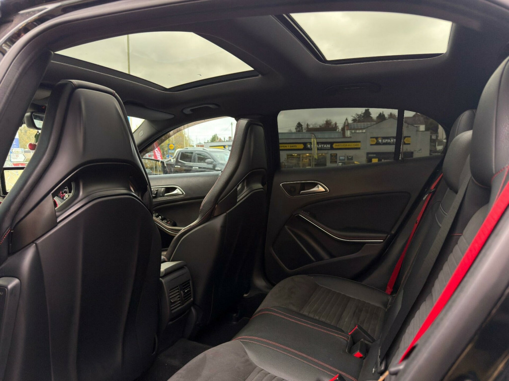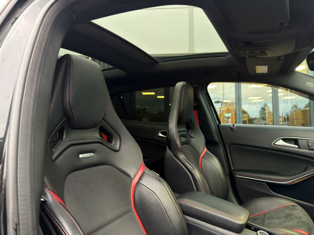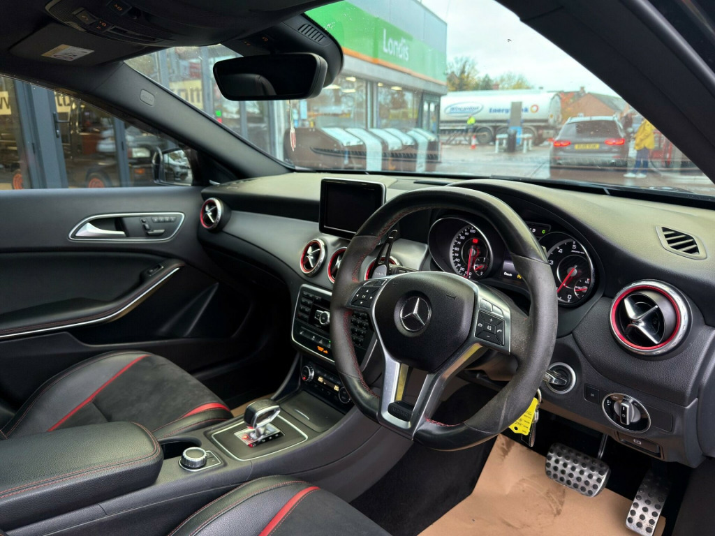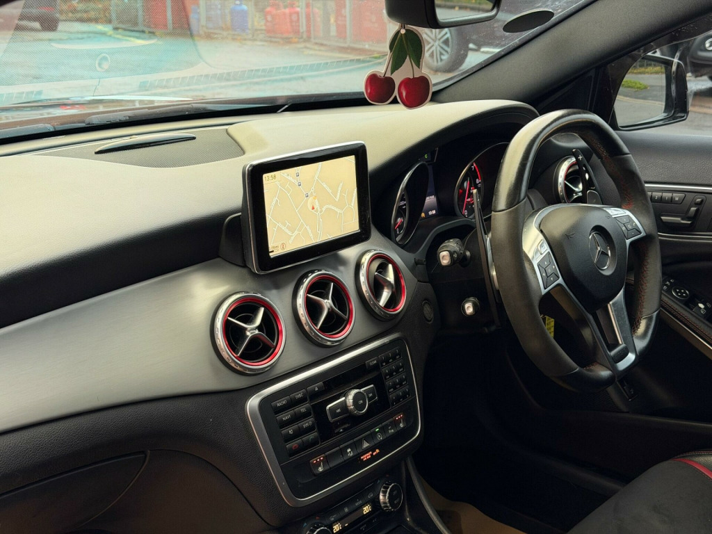 This 2015 Mercedes Benz GLA45 AMG is a remarkable example of performance and luxury, boasting a powerful 2.0L petrol engine and a sophisticated four wheel drive system. As a Euro 6 compliant vehicle, it meets stringent emission standards. Inside, you'll find the desirable AMG Exclusive Package, featuring sumptuous Lava Black leather upholstery with striking red perforations, complemented by heated front seats for enhanced comfort. The cabin is also equipped with a reversing camera and parking assistance, making manoeuvring effortless.Experience exhilarating performance with this GLA45 AMG, capable of accelerating from 0 to 62mph in an impressive 4.8 seconds, a testament to its dynamic capabilities. The Bi-Xenon headlights, coupled with automatic headlight activation, ensure excellent visibility in all conditions. Beyond its sporty credentials, this Mercedes Benz also offers practical benefits, including generous boot space, making it a versatile choice for both everyday driving and longer journeys.. 10GB Music Register and MP3 Compatibility, 12V Socket in Front Centre Console, 12V Socket in Luggage Compartment, 19in Alloy Wheels - AMG 5 Twin Spoke Design, 5.8-inch Tablet-Style Colour Display, 7in Colour Display, ABS - Anti-Lock Braking System, AMG Bodystyling, AMG Drive Unit with AMG E-Select Lever, AMG Drive Unit with Leather-Trimmed Gear Shift and AMG Emblem, AMG Electronic Master Key with AMG Emblem in Chrome Surround, AMG High-Performance Braking System, AMG Instrument Cluster with AMG Main Menu and AMG Start-up Screen, AMG Radiator Grille with Twin-Louvre Fin in Matt Titanium Grey and AMG Lettering, AMG Sports Exhaust System - Two Chromed Twin Tailpipes, ASR - Acceleration Skid Control, ATTENTION Assist, Active Bonnet - Pedestrian Safety Measure which Detects an Impact and Raises Bonnet by 65mm, Active Park Assist with Parktronic, Adaptive Brake Assist with Hold Function and Hill Start Assist, Adaptive Brake Lights, Air Vents with Chrome Surround and Cruciform Nozzle, Airbag - Drivers Knee, Airbag - Dual-Stage - Front Passenger, Airbags - Dual-Stage - Driver, Airbags - Head for Driver and Front Passenger, Airbags - Windowbags, Alarm System with Immobiliser and Interior Protection, Ambient Lighting in Front and Rear Headrests, Ambient Lighting in the Four Door Recesses - Door Pulls and Door Trim, Audio 20 Radio-CD, Automatic Child Seat Recognition Sensor, Automatically Dimming Rear View Mirror, BAS - Brake Assist, Beltline Strips - Chrome, Bluetooth, Brake Calipers - Red with AMG Lettering, Bumpers - Body-Coloured, COMAND Online System with Media Interface, Central Storage Compartment with 12v Socket, Centre Armrest - Front with Storage, Centre Armrest - Rear, Childproof Locks - Manually Operated for Rear Doors and Electrically Operated for Rear Power Windows, Collision Prevention Assist, Controller on Centre Console with Chrome Surround, Crash-Responsive Emergency Lighting, Cup Holder - Twin Rear, DAB Digital Radio Tuner, DRL - Daytime Running Lights - LED, Door Handles - Body-Coloured, Door Mirrors - Drivers Automatically Dimming, Door Mirrors - Electrically Folding, Door Mirrors - Integrated LED Indicators, Door Sill Panels - Illuminated with AMG Lettering in Front, Dual-Zone Air Conditioning, EASY-PACK Powered Tailgate, ESP - Electronic Stability Programme, Electric Parking Brake, Electric Windows - 4, Electronic Key - Chrome Surround, First Aid Kit, Fluid Level Warning Indicator for Fuel - Oil - Coolant and Washer Fluid, Footwell Lights in Front, Front and Rear Apron Trim - Matt Titanium Grey, GLA 45 AMG Badging on Rear of Boot Lid, Glove Compartment - Illuminated, Headlight Assist - Automatic Headlight Activation, Headlight Wash, Headlights - Bi-Xenon, Headlights - Reflector Beam, Heated Front Seats, Heated Rear Window with Timer Control, High Level Third Brake Light - LED, ISOFIX and Top-Tether Child Seat Fixing Points in Rear, In-Car Internet Access Requires Internet Enabled Mobile Phone, Indicators - Lane Change Function, Integrated Head Restraints, Lighting in Luggage Comparment, Linguatronic Voice Control, Load-Securing Rings in Luggage Compartment, Luggage Compartment Cover, Media Interface, Outside Temperature Gauge, Parcel Net in Front Passenger Footwell, Parcel Nets in Luggage Compartment, Parcel Nets on Driver and Front Passenger Seat Backrests, Parking Sensor - Front, Parking Sensor - Rear, Pollen Filter, Pre-Wiring for Becker Map Pilot Navigation System, Privacy Glass - From B-Pillar Backwards, Race Start Function, Radio, Radio Aerial Roof Spoiler, Rain Sensing Windscreen Wipers, Rear Seats - Split Folding 1-3 - 2-3, Rear Tail Lights - LED, Remote Boot Release, Remote Central Locking, Reversing Camera, Roof Lining - Black, Roof Rails - Aluminium Finish, SD Card Slot, SPEEDTRONIC Cruise Control, Satellite Navigation - HDD - Hard Disk Drive Map System with Traffic Information, Seat Belt Reminder - Front and Rear, Seat Belts - Rear Three-Point - 3, Seat Comfort Package - Seat Height Adjusters and Seat C.