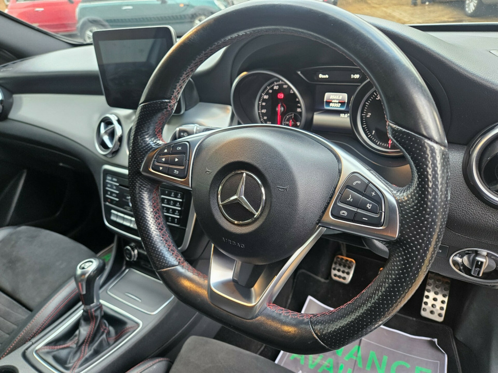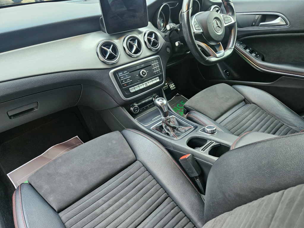 This 2017 Mercedes-Benz GLA 2.1 GLA200d AMG Line SUV with 98,000 miles is a sleek diesel vehicle that comfortably seats 5 with 5 doors, making it perfect for family trips or daily commutes. Its MOT is valid until 02/02/2027 and is ULEZ compliant, ensuring it meets environmental standards. The car boasts stylish features such as Artico Leather-Dinamica Microfibre upholstery in Black with Red Contrast Stitching, a Polar Silver exterior, and 19in Alloy Wheels in AMG 5-Spoke Design. The AMG Bodystyling with Front and Rear Apron and Side Skirts as well as the Chrome Beltline Strips add to its sporty look. With a manual transmission and Euro 6 (s/s) engine producing 136 ps, this SUV is both practical and efficient, making it an excellent choice for those in need of a reliable and stylish vehicle. in alloy wheels - amg 5-spoke design in titanium grey with high sheen finish, amg bodystyling - front and rear apron - side skirts, beltline strips - chrome, brake calipers with mercedes-benz lettering, bumpers - amg bodystyling with inserts in front splitter and side sill panels and rear apron trim in matt titanium grey, door handles - body coloured, door mirrors - body-coloured with integrated led indicators and aspherically curved mirror glass, door mirrors - electrically adjustable and heated, electric windows - 4, exhaust system - visible two-pipe with chrome tailpipe tips, front and rear bumpers in vehicle body colour, glass - rear windscreen - heated with timer control, privacy glass - from b-pillar backwards, radiator grille - two louvres in silver with chrome highlights, roof rails - aluminium finish, run flat tyres, tirefit tyre sealant kit, abs - anti-lock braking system with bas - brake assist, active bonnet - pedestrian safety measure which detects an impact and raises bonnet by 65mm, active braking assist, adaptive brake assist with hold function and hill start assist, adaptive brake lights, airbags - automatic child seat recognition sensor, airbags - dual stage - driver and front passenger, airbags - sidebags for driver and front passenger, airbags - windowbags for driver and front passenger, anti-theft protection package, childproof locks - manually operated for rear doors and electrically operated for rear power windows, crash-responsive emergency lighting, drivers kneebag, esp - electronic stability programme with asr - acceleration skid control, electric parking brake, electronic key - chrome surround, first aid kit and warning triangle, isofix and top-tether child seat fixing points in rear, rear windscreen wiper with intermittent wipe and automatic activation when reversing, remote central locking, seat belt reminder - front and rear, seat belts - rear three-point - 3, seat occupancy sensor - front passenger seat, attention assist, cruise control with limiter, dynamic select with a choice of driving modes - eco-comfort-sport and individual, instrument cluster - fluid level warning indicator for fuel - oil - coolant and washer fluid, instrument cluster - outside temperature display, instrument cluster - trip computer in multi-function display showing current fuel consumption, off road comfort suspension, power steering - sports direct steer system with speed sensitive servo assistance, reversing camera with 180 degree view, service indicator assyst, shift point indicator, tyre pressure monitoring system, air vents with chrome surround and cruciform nozzle, ambient lighting - single colour in headrests, brushed stainless steel sports pedals with rubber studs, double cup holder in centre console, easy-pack powered tailgate, floor mats - red stitched edging - amg lettering, footwell lighting - front and rear, front centre armrest with stowage compartment, illuminated front door sills with mercedes-benz lettering, instrument cluster with 4 analogue dials and needles suspended in six-o-clock position, interior lighting - courtesy white and warning red lights in the front doors and boot lid, interior lighting - sun visor with illuminated vanity mirror for driver and front passenger, interior lighting in rear with integrated reading lights and locator lighting, keyless-go starting function, luggage compartment cover, rear armrest with twin cup holder and through-loading facility, rear seats - split folding 1-3 2-3, roof lining - black, seat belts - black, seat comfort package, seats - front cushion length adjustment, seats - front manually adjustable, single colour ambient lighting in interior door handles, sports seats with integrated head restraints, steering column - manually adjustable for height and reach, steering wheel - 3-spoke - 12 button multi-function - trimmed in nappa leather with perforated leather in grip area - flattened bottom section, storage compartment beneath load compartment floor, thermotronic luxury automatic climate control - two-zone with display, trim - light aluminium with longitudinal grain, wiper system - windscreen wipers including rain sensor with two sensitivity stages, audio 20 radio-cd, media display - 8in, media interface, mercedes me connect, radio aerial roof spoiler, smartphone integration, headlight assist - automatic headlight activation, headlights - halogen, tail lights - partial led, third brake light in led technology