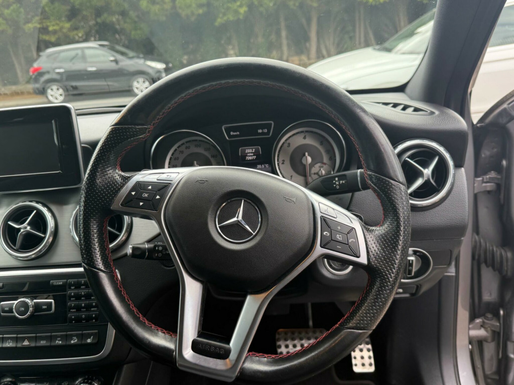With only 72,000 miles on the clock, this 2014 Mercedes-Benz GLA220 CDI AMG Line is a great example of a well-maintained vehicle. As part of the AMG Line trim, this four-wheel drive GLA is powered by a 2.1L diesel engine and meets Euro 6 emission standards. The vehicle includes the Premium Package, which features Xenon headlights, front and rear parking sensors, and automatic headlight activation. Enjoy the convenience of air conditioning and Bluetooth connectivity, along with the added benefit of a reversing camera for easy parking.This GLA stands out with its impressive fuel economy of 55 mpg, meaning lower running costs compared to similar vehicles. The car also boasts low CO2 emissions, making it an environmentally conscious choice. Benefit from a low insurance group, offering potential savings on your premiums. The vehicle has a large boot space and can accelerate from 0-62mph in just 8.3 seconds, offering practicality and performance.. 12V Socket in Luggage Compartment, 18in Alloy Wheels - AMG 5-Spoke Design in Titanium Grey with High Sheen Finish, 5.8-inch Tablet-Style Colour Display, ABS - Anti-Lock Braking System, AMG Bodystyling - Front and Rear Apron and Side Skirts, ASR - Acceleration Skid Control, ATTENTION Assist, Active Bonnet - Pedestrian Safety Measure which Detects an Impact and Raises Bonnet by 65mm, Adaptive Brake Assist with Hold Function and Hill Start Assist, Adaptive Brake Lights, Air Conditioning, Air Vents with Chrome Surround and Cruciform Nozzle, Airbag - Drivers Knee, Airbag - Dual-Stage - Front Passenger, Airbags - Dual-Stage - Driver, Airbags - Head for Driver and Front Passenger, Airbags - Windowbags, Alarm System with Immobiliser and Interior Protection, Ambient Lighting in Front and Rear Headrests, Ambient Lighting in the Four Door Recesses - Door Pulls and Door Trim, Audio 20 Radio-CD, Automatic Child Seat Recognition Sensor, Beltline Strips - Chrome, Bluetooth, Bumpers - Body-Coloured, Central Storage Compartment with 12v Socket, Centre Armrest - Rear with Twin Cup Holders and Through-Load Facility, Centre Armrest - Front with Storage, Centre Armrest - Rear, Childproof Locks - Manually Operated for Rear Doors and Electrically Operated for Rear Power Windows, Collision Prevention Assist, Controller on Centre Console with Chrome Surround, Crash-Responsive Emergency Lighting, DAB Digital Radio Tuner, Door Handles - Body-Coloured, Door Mirrors - Electrically Adjustable and Heated, Door Mirrors - Integrated LED Indicators, Door Sill Panels - Mercedes-Benz Lettering - Illuminated, ESP - Electronic Stability Programme, Electric Parking Brake, Electric Windows - 4, Electronic Key - Chrome Surround, Exhaust System - Visible Two-Pipe with Chrome Tailpipe Tips, First Aid Kit, Fluid Level Warning Indicator for Fuel - Oil - Coolant and Washer Fluid, Footwell Lights in Front, Front and Rear Apron Trim - Matt Titanium Grey, Glove Compartment - Illuminated, Headlight Assist - Automatic Headlight Activation, Headlights - Reflector Beam, Heated Rear Window with Timer Control, High Level Third Brake Light - LED, ISOFIX and Top-Tether Child Seat Fixing Points in Rear, Indicators - Lane Change Function, Instrument Cluster with 4 Analogue Dials and Needles Suspended in Six-o-Clock Position, Leather-Trimmed Gear Shift with Chrome Highlights, Lighting in Luggage Comparment, Load-Securing Rings in Luggage Compartment, Luggage Compartment Cover, Media Interface, Outside Temperature Gauge, Parcel Nets in Luggage Compartment, Parcel Nets on Driver and Front Passenger Seat Backrests, Perforated Front Brake Discs and Brake Calipers with Mercedes-Benz Lettering, Power Assisted Steering, Pre-Wiring for Becker Map Pilot Navigation System, Privacy Glass - From B-Pillar Backwards, Radiator Grille - Two Louvres in Silver with Chrome Highlights, Radio Aerial Roof Spoiler, Rain Sensing Windscreen Wipers, Rear Seats - Split Folding 1-3 - 2-3, Remote Central Locking, Reversing Camera, Roof Rails - Aluminium Finish, Seat Belt Reminder - Front and Rear, Seat Belts - Rear Three-Point - 3, Seat Comfort Package - Seat Height Adjusters and Seat Cushion Angle Adjustment on Front Seats, Seat Occupancy Sensor - Front Passenger Seat, Seats - Front Manually Adjustable, Sidebags for Driver and Front Passenger, Speakers x6, Sports Direct Steering, Sports Pedals - Stainless Steel with Rubber Studs, Sports Seats with Integrated Head Restraints, Steering Column - Manually Adjustable for Height and Reach, Steering Wheel - Sports-3-Spoke Flat-Bottomed Multi-Func. Nappa Leather Perforated, Storage Box Under Front Seats, Storage Compartment Beneath Load Compartment Floor, Storage Compartment Under Boot Floor, Storage Compartment in Front Doors, Sun Visors with Illuminated Vanity Mirrors, Sunglasses Compartment in Overhead Control Panel, Suspension - Sports - Lowered by 15mm, TIREFIT Tyre-Sealant Kit, Tail Lights - Partial LED, Telephone Keypad, Trim - Light Aluminium with Longitudinal G.
