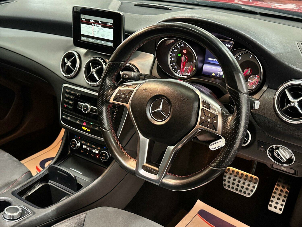 2015 15 MERCEDES-BENZ GLA220D AMG LINE PREMIUM PLUS SPEC AUTO DCT 5DR. , This Vehicle Comes With Warranty As Standard, Please Call Us For More Details!, , Stunning Example With Only 2 Previous Keepers From New Presented In Mercedes Jupiter Red Paintwork With Contrasting Black Half Leather Seats Complete With 19 Inch Grey Alloy Wheels With A Diamond Cut Finish. , Covering 62,000 Miles From New, Backed Up With Full History Which Is Up To Date With A Mix Of The Digital Print Out And Invoices To Show. Very Clean Throughout With Excellent Bodywork, Unmarked Interior And Outstanding Wheels, New Owner Wont Be Disappointed. This Vehicle Comes With Two Keys. , Its 2.1 Litre Turbo Diesel Engine Produces 168Bhp And 350Nm Of Torque And Is Completely Standard. This Is Matched With Its 7 Speed Automatic Gearbox With The Option Of Changing Gear With F1 Style Paddle Shifters Which Makes For A Superb Drive!, , Outstanding Spec Includes. *Mercedes Jupiter Red Paintwork. *Premium Plus Pack. *Black Half Leather Heated Seats. *19 Inch Grey Alloy Wheels With A Diamond Cut Finish. *Electronic Tilt And Slide Panoramic Sunroof. *Electronic Retractable Roof Blind. *Mercedes Drive Modes. (Eco, Sport, Manual), *Multi Function Steering Wheel. *Cruise Control. *Digital Dual Climate Control. *Electronic Folding Wing Mirrors. *Heated Wing Mirrors. *Reverse Camera. *Parking Sensors. *Automatic Xenon Headlights. *Automatic Windscreen Wipers. *Mercedes Multi Media Interface. *FM/AM Radio. *Bluetooth Connectivity. *Music Register. *Memory Card Input. *Electronic Power Tailgate. *Interior Motion. *Hill Descent Assist. *Split Folding Rear Seats. , Excellent Standard Spec Includes, Height Adjustable Seats, Electric Windows, Electric Mirrors, Central Lock, Trip Computer, Auto Dimming Rear View Mirror, Front Arm Rest, Front And Rear Interior Lights, Rear Fog Lights, Rear Heated Screen, 12V, Traction Control, Isofix And Much More. , All Our Vehicles Have Been Road Tested With Multi Point Checks And We Welcome RAC Or AA Inspections, For Your Added Peace Of Mind All Of Our Vehicles Are HPI Clear. , We Can Provide A Decision Within 30 Minutes Please Call Us To Discuss Your Requirements, Our Finance Partners Include Close Brothers | CF247 | Motonovo | Evolution And Others. , We Offer Full Dealer Facilities Including A Comfortable Customer Office An Indoor Viewing Area And We Accept All Methods Of Payment, We Are Open 7 Days A Week Please Call Ahead To Ensure The Vehicle Of Interest Is Still Available, Sales 0161 336 2007 Or General Enquiries 0161 335 0008. , Every effort has been made to ensure the vehicle has been described accurately in accordance with its age and mileage, The data above details the usual specification of the most recent model of this vehicle and may vary for the actual vehicle for sale. , Please always check the vehicle specification prior to purchase. If You Have Any Questions Please Get In Touch And We Will Be Happy To Help. , All Our Vehicles Come With Warranty Included, Extended Warranty Options Available, We Offer Finance With Competitive HP And PCP Deals Available, Visit Our Website To Use Our Online Calculator And Apply Online Today!