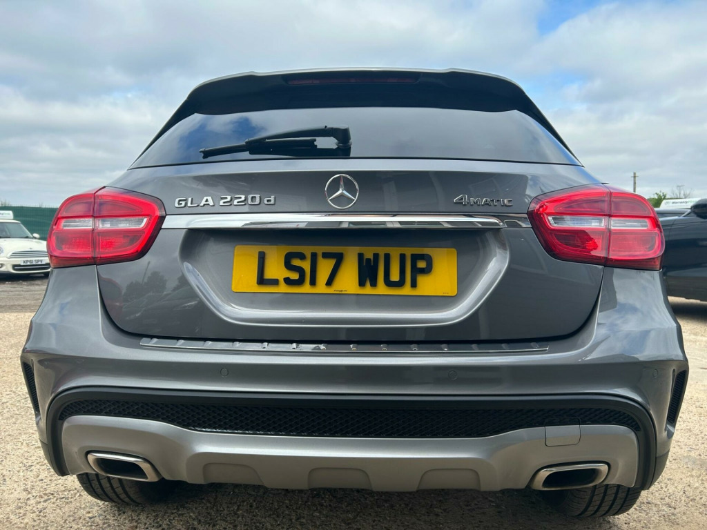 This 2017 Mercedes-Benz GLA220d AMG Line boasts exceptionally low mileage for its age, having covered just 39,000 miles, and comes with a clear vehicle history check. Finished in the sporty AMG Line trim, this four wheel drive model is powered by an efficient 2.1L diesel engine, meeting Euro 6 emissions standards. Key features include Bi-Xenon headlights with automatic activation, a Bluetooth interface for hands-free calls and audio streaming, and THERMOTRONIC automatic climate control for consistent comfort. Manoeuvring is made easier with a 180 degree reversing camera providing parking guidelines.This Mercedes-Benz GLA220d AMG Line offers several advantages over similar vehicles. Its impressive fuel economy of 57 mpg means fewer stops at the petrol station, and its low CO2 emissions contribute to a more environmentally friendly drive. You'll also appreciate the generous boot space, perfect for luggage or shopping. Performance is also a strong point, with a brisk 0-62mph acceleration time of just 7.7 seconds, demonstrating its capable 2.1L diesel engine. Furthermore, its low insurance group rating makes it an economical choice for many drivers. in alloy wheels - amg 5-spoke design in titanium grey with high sheen finish, 8in colour display, abs - anti-lock braking system, asr - acceleration skid control, attention assist, active bonnet - pedestrian safety measure which detects an impact and raises bonnet by 65mm, active park assist with parktronic, adaptive brake assist with hold function and hill start assist, adaptive brake lights, air vents with chrome surround and cruciform nozzle, airbag - driver, airbag - drivers knee, airbag - front passenger, airbags - windowbags, ambient lighting - 12 colours, ambient lighting - single colour in headrests, anti theft alarm system with tow-away protection and interior motion sensor, audio 20 radio-cd-mp3 compatibility, automatic child seat recognition sensor, automatically dimming rear view mirror, bas - brake assist, beltline strips - chrome, bluetooth interface with hd voice-capable hands-free function and audio streaming, brake calipers with mercedes-benz lettering, brushed stainless steel sports pedals with rubber studs, bumpers - body-coloured, centre armrest - front with storage and contrasting topstitching, centre armrest - rear, childproof locks - manually operated for rear doors and electrically operated for rear power windows, collision prevention assist plus, controller on centre console, courtesy and warning lights in front doors and boot lid, crash-responsive emergency lighting, cruise control with speedtronic variable speed limiter, cup holder - double - front, cup holder - twin rear, dsr - downhill speed regulation, dashboard trim - light aluminium with longitudinal grain, direct select gearshift lever, door handles - body-coloured, door mirrors - body coloured, door mirrors - drivers automatically dimming, door mirrors - electrically adjustable and heated, door mirrors - integrated led indicators, door sill panels - mercedes-benz lettering - illuminated, dynamic select with a choice of driving modes - eco-comfort-sport and individual, easy-pack powered tailgate, esp - electronic stability programme, electric parking brake, electric windows - 4, electronic key - chrome surround, exhaust system - visible two-pipe with chrome tailpipe tips, first aid kit, floor mats - red stitched edging - amg lettering, fluid level warning indicator for fuel - oil - coolant and washer fluid, footwell lighting - front and rear, glove compartment - illuminated, headlight assist - automatic headlight activation, headlight wash, headlights - bi-xenon, headlights - halogen, heated front seats, heated rear window with timer control, heated windscreen washer system, high level third brake light - led, isofix and top-tether child seat fixing points in rear, instrument cluster with 4 analogue dials and needles suspended in six-o-clock position, integrated head restraints, lighting in storage compartment, load-securing rings in luggage compartment, luggage compartment cover, media interface, mercedes me connect, off road comfort suspension, outside temperature gauge, parking sensor - front, parking sensor - rear, pollen filter, power steering - sports direct-steer with speed-sensitive servo assistance, privacy glass - from b-pillar backwards, radiator grille - two louvres in silver with chrome highlights, rain sensing windscreen wipers, reading lights - rear, rear seats - split folding 1-3 - 2-3, remote central locking, reversing camera with parking guidelines - 180 degree view, roof lining - black, roof rails - aluminium finish, sd card slot, satellite navigation - garmin map pilot, seat - drivers height-adjustable, seat - passenger height-adjustable, seat belt reminder - front and rear, seat occupancy sensor - front passenger seat, seats - cushion angle adjustment for front, seats - front cushion length adjustment, seats - sports, service indicator assyst, side skirts - body-coloured, sidebags for driver and front passenger, single colour ambient lighting in interior door handles, steering column - manually adjustable for height and reach, steering wheel - 3-spoke trimmed in nappa leather with perforated leather in grip area and flattened bottom section, steering wheel - gear shift paddles, steering wheel - multi-function, steering wheel - red stitching, sun visors with illuminated vanity mirrors, thermotronic - automatic climate control, tirefit tyre-sealant kit, tail lights - partial led, through-loading facility, traffic information decoder - tp-ta, trim - light aluminium with longitudinal grain, trip computer, twin radio tuner - fm-am, tyre pressure loss warning system, usb connections in the centre armrest x2, warning triangle, ecall - emergency call system