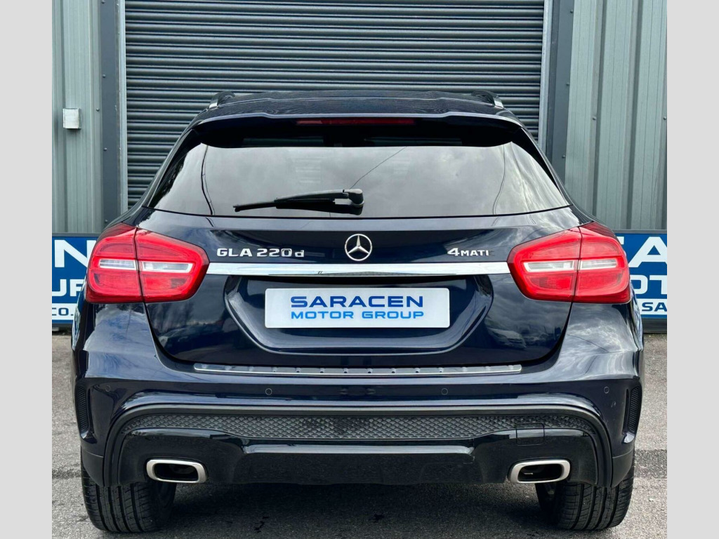 Mercedes-Benz GLA 220 D 2.1 4Matic AMG Line Premium Auto 4WD 5dr ULEZ FREE. Finished in cavanasite blue metallic with a black half leather interior and contrast red stitching. 19 gloss black alloys, satellite navigation, 8 media display, smartphone integration, cruise control with speed limiter, reversing camera with 180 degree view, attention assist, black mirrors/roof rails, privacy glass, heated windscreen, heated washer jets, automatic headlights, powered tailgate, ambient lighting, leather multifunction steering wheel, front heated sports seats, air conditioning and stainless steel foot pedals. Here at Saracen Motor Group we have been awarded AA Platinum dealership recognition along with being nominated for best customer service by Autotrader for 2021,2022,2023,2024 & 2025. We are a 5-star dealership with over 600 5-star reviews across all internet platforms including Autotrader and have been regarded as one of the best dealerships to buy from in the UK. Our preparation inspected each vehicle to the highest level possible for its age and mileage. You can rest assure your next car has been cared for to the highest standard. Service history, V5 and the HPI certificate will all be present on viewing and collection. With our location based in Battlesbridge, Essex you can enjoy a haggle-free buying experience where you can drive away the same day if prior arranged, additional fees apply please see our website for details.