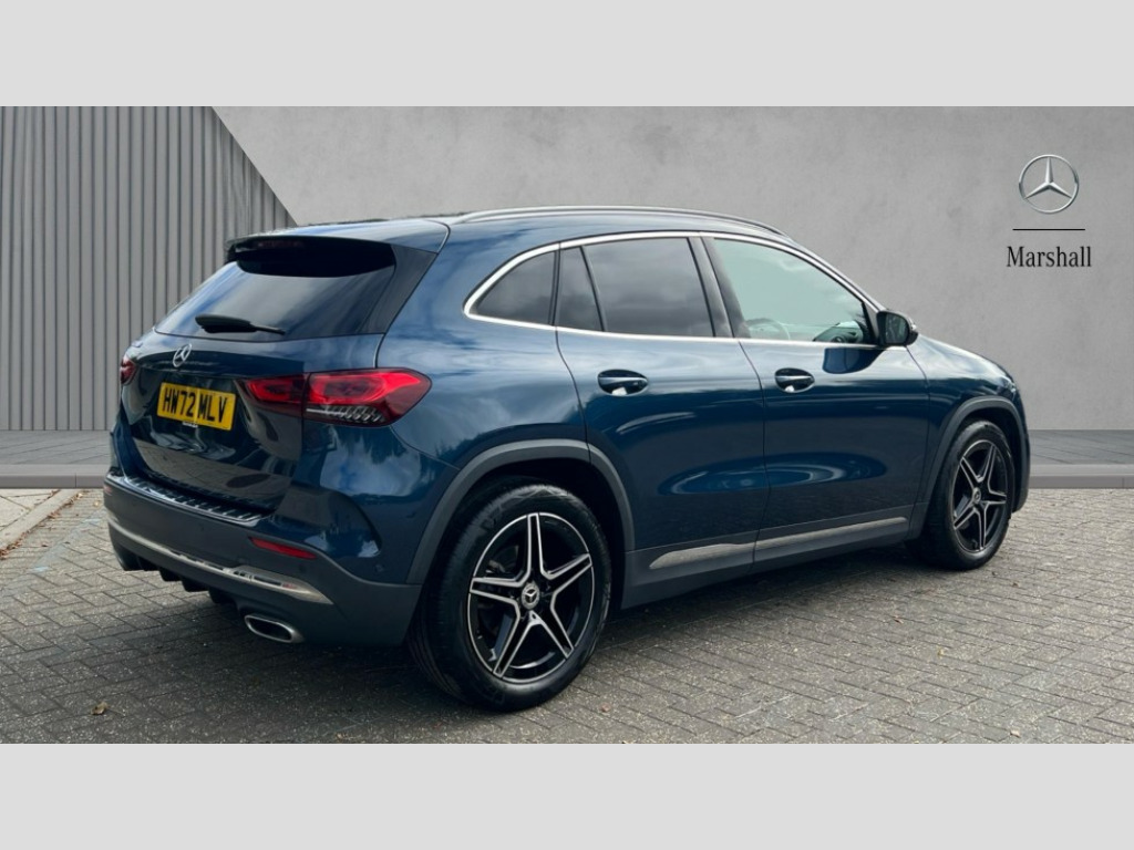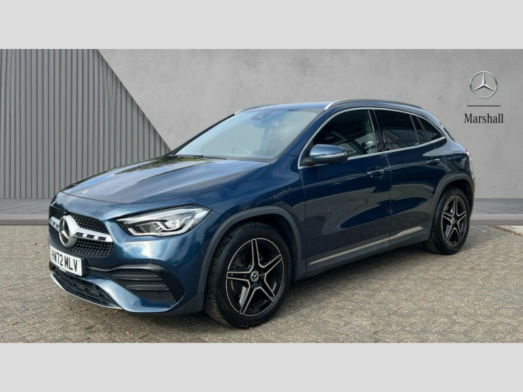 Mercedes-Benz GLA Class GLA 200 AMG Line Executive 5dr Auto 10.25 inch touchscreen central media display, 10.25" Digital instrument cluster display screen, Active lane keeping assist, Attention assist, Cruise control + speed limiter, Direct steering, DYNAMIC SELECT with a choice of driving modes (ECO, Comfort, Sport and Individual), ECO start/stop function, Fluid level warning indicator for fuel, oil, coolant and washer fluid, Hard-disk navigation, Hey Mercedes Voice activation, Lamp failure indicator, Mercedes me connect including emergency call system, accident recovery, breakdown and maintenance management, Mercedes me remote services, Multi function trip computer, Outside temperature gauge, Owners manual and service booklet in English, Pre-installation of private car share, Radio aerial integrated into front and rear windshields, Service indicator (ASSYST), Smartphone integration with Apple CarPlay and Android auto, Speed limit assist, Status display for rear seat belts in instrument cluster, Lowered comfort suspension, Rear axle multi-link, 2 USB ports (type C) in rear stowage compartment and one in front of center console, Bluetooth connectivity including audio streaming, DAB Digital radio, MBUX multimedia system, Media interface, Mercedes-Benz sound system - 100W, Adaptive brake lights, Aerial for GPS, Aluminium roof rails, AMG front and rear apron, AMG specific/dual flow exhaust pipes in chrome (non-functional), Automatic headlamp activation, Beltline strips and weather strip in chrome, Black grained claddings with chrome parts, Body colour bumpers, Body colour door handles, Body colour door mirrors, Car wash function, Dark privacy glass from B-pillar backwards, Electric front windows, Electric rear windows, Electrically adjustable and heated door mirrors with integrated LED indicators, Front bumper with underride guard in high gloss chrome, Heat insulating dark tinted glass, Heated glass rear windscreen + timer control, Heated windscreen wash system, Interior mirror with black reading lamps and frameless, LED high performance headlamps with integrated LED daytime running lights, LED tail lights in two piece design, LED third brake light, Matt titanium grey front and rear apron trim, Rain sensor windscreen wipers, Rear fog lights, Rear side wing doors, Rear wiper, Roof spoiler, Single lamella raditor grille with chrome dotted diamond grille and inlay, 12V power socket in centre console, 3 seat bench in 2nd row, 3 spoke multifunction sports steering wheel in nappa leather with flattened bottom and perforated grip area, 40:20:40 split folding rear seat backrests, Adjustable head restraints, Air conditioning - Two zone thermotronic luxury automatic climate control with display, Ambient lighting in front headrests, AMG floor mats in black with AMG lettering in front, Artico man-made leather/Microcut microfibre upholstery with red contrast stitching, Auto Mercedes-Benz child seat recognition sensor, Black roof lining, Brushed door pulls in silver chrome, Courtesy light in boot, Floor mats in velour, Front centre armrest with stowage, Galvanished gear shift paddles on steering wheel, Heated front seats, illuminated door sills with changeable cover, Illuminated glovebox, Interior lighting - 64 colour Ambient lighting, Leather trimmed gearknob, Luggage net on driver/front passenger seat backrest, Manually height and reach adjustable steering column, Multi-gesture touchpad control on center console, Single front passenger seat, Sports pedals in brushed stainless steel with black rubber studs, Sports seats, Stowage compartment in centre console, Stowage compartment with retractable cover, Sunvisors with illuminated vanity mirrors, Twin front cup holders, Two outer rear seat isofix and top tether child seat fixing points, AMG body styling pack - GLA, Comfort seat pack - GLA Class, Interior lighting with light and sight pack - GLA, Load compartment pack - GLA, Mirror pack - GLA Class, Parking pack - GLA, 3 rear 3 point seatbelts, ABS with Brake Assist, Active bonnet pedestrain safety measure which detects an impact and raises bonnet by 65mm, Active brake assist includes forward collision warning system with autonomous braking, Adaptive brake assist with hold function and hill start assist, Bonnet with power domes, Brake pad wear warning indicator, Childproof locks manually operated for rear doors and electrically operated for rear power windows, Crash responsive emergency lighting, Driver and passenger head and side airbags, Drivers knee airbag, Dual stage driver/passenger airbags, Electronic parking brake, ESP curve dynamic assist, ESP with ASR, Front and rear seatbelt reminder, Front brake callipers with Mercedes Benz logo lettering on front, Front brake discs internally ventilated and perforated, Front passenger seat occupancy sensor, Sports braking system, Tyre pressure monitoring system, Warning triangle and first aid kit, Window airbags, Alarm system with immobiliser and interior protection -Thatcham category 1, Keyless Go starting function, Remote central locking and crash sensor with emergency opening function, Urban guard vehicle protection, Vehicle key with decorative surround in chrome, Carbon structure trim, Chrome air vent surrounds, 19" AMG 5 twin spoke light alloy wheels painted in high gloss black with high sheen finish, Summer tyres, Tirefit tyre sealant kit