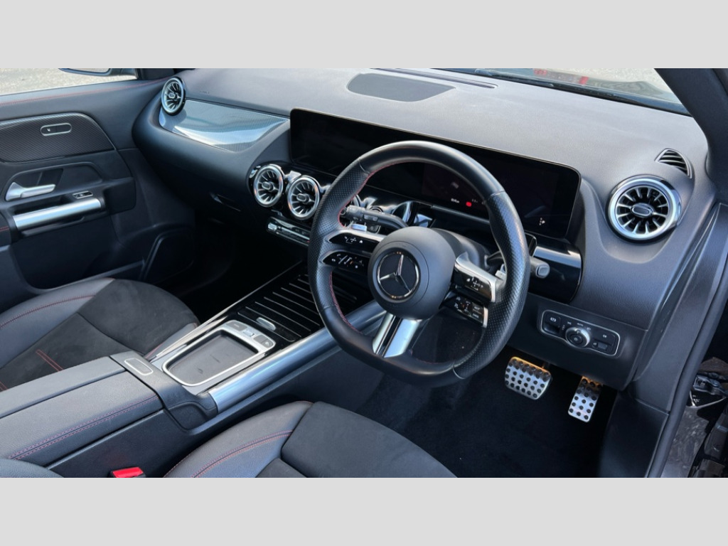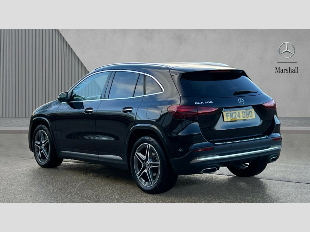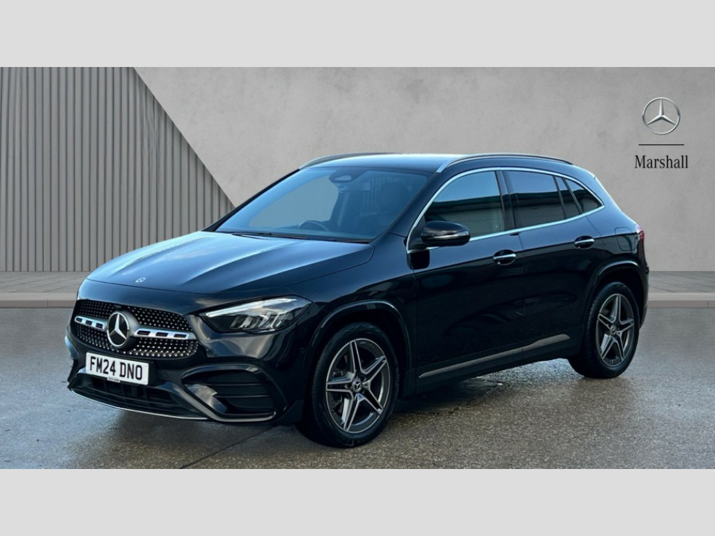 Mercedes-Benz GLA Class GLA 200 AMG Line Executive 5dr Auto 10.25 inch touchscreen central media display, 10.25" Digital instrument cluster display screen, Attention assist, Blind spot assist, Direct steering, DYNAMIC SELECT with a choice of driving modes (ECO, Comfort, Sport and Individual), Easy-pack tailgate, ECO start/stop function, Fingerprint scanner, Fluid level warning indicator for fuel, oil, coolant and washer fluid, Hard-disk navigation, Hey Mercedes Voice activation, Lamp failure indicator, Lane keeping assist (LKA), Mercedes me connect including emergency call system, accident recovery, breakdown and maintenance management, Mercedes me remote services, Multi function trip computer, Outside temperature gauge, Owners manual and service booklet in English, Pre-installation of private car share, Radio aerial integrated into front and rear windshields, Service indicator (ASSYST), Smartphone integration with Apple CarPlay and Android auto, Speed limit assist, Wireless charging, Lowered comfort suspension, Rear axle multi-link, Bluetooth connectivity including audio streaming, DAB Digital radio, MBUX multimedia system, Mercedes Benz sound system (100 W) with 6 speakers, Adaptive brake lights, Adaptive highbeam assist, Aluminium roof rails, AMG front apron with front splitter in the colour of the vehicle with chrome trim element, AMG rear apron with visible tailpipe trim and chrome trim element, AMG specific/dual flow exhaust pipes in chrome (non-functional), Automatic headlamp activation, Beltline trim and window line trim strip in high gloss aluminium, Black grained side sill trim with chrome inlay, Body coloured door handles with chrome insert for keyless entry, Car wash function, Dark privacy glass from B-pillar backwards, Electric front windows, Electric rear windows, Electrically adjustable and heated door mirrors with integrated LED indicators, Exhaust system with 2 Visible tailpipe trim elements and rear apron with trim in chrome, Heat insulating dark tinted glass, Heated glass rear windscreen + timer control, Interior mirror with black reading lamps and frameless, LED high performance headlamps with integrated LED daytime running lights, LED tail lights, LED third brake light, Radiator diamond grille with chrome pins and central Mercedes star, single louvre in matt grey with chrome inserts and black highlights, Rain sensor windscreen wipers, Rear fog lights, Rear side wing doors, Rear wiper, Wheel arch liners in the colour of the vehicle, 3 seat bench in 2nd row, 3 spoke flat bottom multifunction nappa leather steering wheel, 4 way lumbar support, 40:20:40 split folding rear seat backrests, Adjustable head restraints, Air conditioning - air vents with silver chrome surround, Air conditioning - One zone THERMATIC automatic climate control with automatically controlled air distribution, AMG floor mats, Auto Mercedes-Benz child seat recognition sensor, Black roof lining, Courtesy light in boot, Fluorescent jacket, Front centre armrest with stowage, Galvanished gear shift paddles on steering wheel in silver chrome, Heated front seats, Illuminated glovebox, Interior lighting - 64 colour Ambient lighting, Luggage net on driver/front passenger seat backrest, Manually height and reach adjustable steering column, Single front passenger seat, Sports pedals in brushed stainless steel with black rubber studs, Sports seats, Sports steering wheel, Stowage compartment in centre console, Stowage compartment with retractable cover, Sunvisors with illuminated vanity mirrors, Twin front cup holders, Two outer rear seat isofix and top tether child seat fixing points, Comfort seat pack - GLA Class, Interior lighting with light and sight pack - GLA, Keyless go comfort package - GLA, Mirror pack - GLA Class, Parking package with reversing camera - GLA, USB package plus - GLA, 3 rear 3 point seatbelts, ABS with Brake Assist, Active bonnet pedestrain safety measure which detects an impact and raises bonnet by 65mm, Active brake assist includes forward collision warning system with autonomous braking, Adaptive brake assist with hold function and hill start assist, Black seatbelts, Bonnet with power domes, Brake pad wear warning indicator, Childproof locks manually operated for rear doors and electrically operated for rear power windows, Crash responsive emergency lighting, Driver and passenger head and side airbags, Drivers knee airbag, Dual stage driver/passenger airbags, Electronic parking brake, ESP curve dynamic assist, ESP with ASR, Front and rear seatbelt reminder, Front brake callipers with Mercedes Benz logo lettering on front, Front brake discs internally ventilated and perforated, Front passenger seat occupancy sensor, Sports braking system, Tyre pressure monitoring system, Warning triangle and first aid kit, Window airbags, Alarm system with immobiliser and interior protection -Thatcham category 1, Guard 360 degree vehicle protection, Keyless Go starting function, Remote central locking and crash sensor with emergency opening function, Carbon structure trim, 19" AMG 5 twin spoke light alloy wheels aerodynamically optimised and painted in tantalite grey with a high-sheen finish RTF, Summer tyres, Tirefit tyre sealant kit