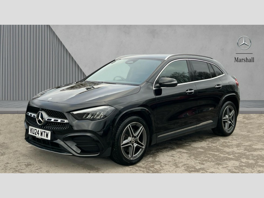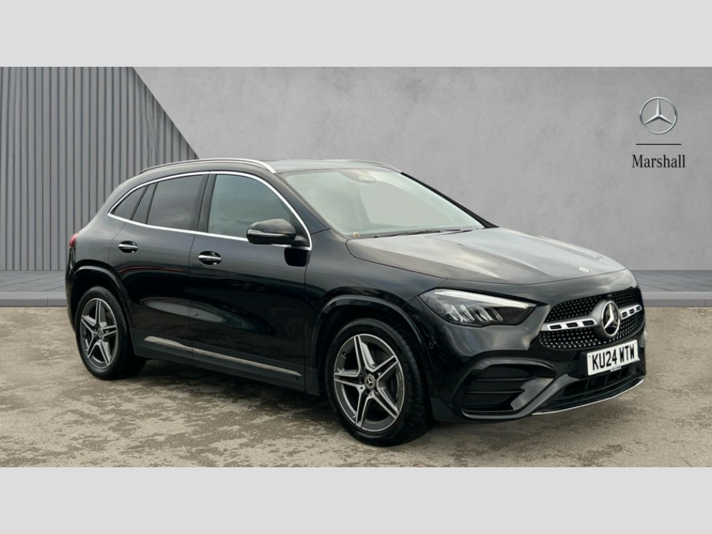 Mercedes-Benz GLA Class GLA 200 AMG Line Executive 5dr Auto 10.25 inch touchscreen central media display, 10.25" Digital instrument cluster display screen, Attention assist, Direct steering, DYNAMIC SELECT with a choice of driving modes (ECO, Comfort, Sport and Individual), ECO start/stop function, Fluid level warning indicator for fuel, oil, coolant and washer fluid, Hard-disk navigation, Hey Mercedes Voice activation, Lamp failure indicator, Lane keeping assist (LKA), Mercedes me connect including emergency call system, accident recovery, breakdown and maintenance management, Mercedes me remote services, Multi function trip computer, Outside temperature gauge, Owners manual and service booklet in English, Pre-installation of private car share, Radio aerial integrated into front and rear windshields, Service indicator (ASSYST), Smartphone integration with Apple CarPlay and Android auto, Speed limit assist, Status display for rear seat belts in instrument cluster, Tailgate, Wireless charging, Lowered comfort suspension, Rear axle multi-link, Bluetooth connectivity including audio streaming, DAB Digital radio, MBUX multimedia system, Media interface, Mercedes Benz sound system (100 W) with 6 speakers, Pre installation for Mercedes Benz Link, Adaptive brake lights, Adaptive highbeam assist, Aerial for GPS, Aluminium roof rails, AMG front apron with front splitter in the colour of the vehicle with chrome trim element, AMG rear apron with visible tailpipe trim and chrome trim element, AMG specific/dual flow exhaust pipes in chrome (non-functional), Automatic headlamp activation, Beltline trim and window line trim strip in high gloss aluminium, Black grained side sill trim with chrome inlay, Body coloured door handles with chrome insert for keyless entry, Car wash function, Dark privacy glass from B-pillar backwards, Electric front windows, Electric rear windows, Electrically adjustable and heated door mirrors with integrated LED indicators, Exhaust system with 2 Visible tailpipe trim elements and rear apron with trim in chrome, Heat insulating dark tinted glass, Heated glass rear windscreen + timer control, Heated windscreen wash system, Interior mirror with black reading lamps and frameless, LED high performance headlamps with integrated LED daytime running lights, LED tail lights, LED third brake light, Radiator diamond grille with chrome pins and central Mercedes star, single louvre in matt grey with chrome inserts and black highlights, Rain sensor windscreen wipers, Rear fog lights, Rear side wing doors, Rear wiper, Roof spoiler, Wheel arch liners in the colour of the vehicle, 12V power socket in centre console, 3 seat bench in 2nd row, 3 spoke flat bottom multifunction nappa leather steering wheel, 4 way lumbar support, 40:20:40 split folding rear seat backrests, Adjustable head restraints, Air conditioning - air vents with silver chrome surround, Air conditioning - One zone THERMATIC automatic climate control with automatically controlled air distribution, AMG floor mats, Auto Mercedes-Benz child seat recognition sensor, Black roof lining, Courtesy light in boot, Fluorescent jacket, Front centre armrest with stowage, Galvanished gear shift paddles on steering wheel in silver chrome, Heated front seats, Illuminated glovebox, Interior lighting - 64 colour Ambient lighting, Luggage net on driver/front passenger seat backrest, Manually height and reach adjustable steering column, Single front passenger seat, Sports pedals in brushed stainless steel with black rubber studs, Sports seats, Sports steering wheel, Stowage compartment in centre console, Stowage compartment with retractable cover, Sunvisors with illuminated vanity mirrors, Twin front cup holders, Two outer rear seat isofix and top tether child seat fixing points, Comfort seat pack - GLA Class, Interior lighting with light and sight pack - GLA, Keyless go comfort package - GLA, Mirror pack - GLA Class, Parking package with reversing camera - GLA, USB package plus - GLA, 3 rear 3 point seatbelts, ABS with Brake Assist, Active bonnet pedestrain safety measure which detects an impact and raises bonnet by 65mm, Active brake assist includes forward collision warning system with autonomous braking, Adaptive brake assist with hold function and hill start assist, Black seatbelts, Bonnet with power domes, Brake pad wear warning indicator, Childproof locks manually operated for rear doors and electrically operated for rear power windows, Crash responsive emergency lighting, Driver and passenger head and side airbags, Drivers knee airbag, Dual stage driver/passenger airbags, Electronic parking brake, ESP curve dynamic assist, ESP with ASR, Front and rear seatbelt reminder, Front brake callipers with Mercedes Benz logo lettering on front, Front brake discs internally ventilated and perforated, Front passenger seat occupancy sensor, Sports braking system, Tyre pressure monitoring system, Warning triangle and first aid kit, Window airbags, Alarm system with immobiliser and interior protection -Thatcham category 1, Guard 360 degree vehicle protection, Keyless Go starting function, Remote central locking and crash sensor with emergency opening function, Vehicle key with decorative surround in chrome, Carbon structure trim, 19" AMG 5 twin spoke light alloy wheels aerodynamically optimised and painted in tantalite grey with a high-sheen finish RTF, Summer tyres, Tirefit tyre sealant kit