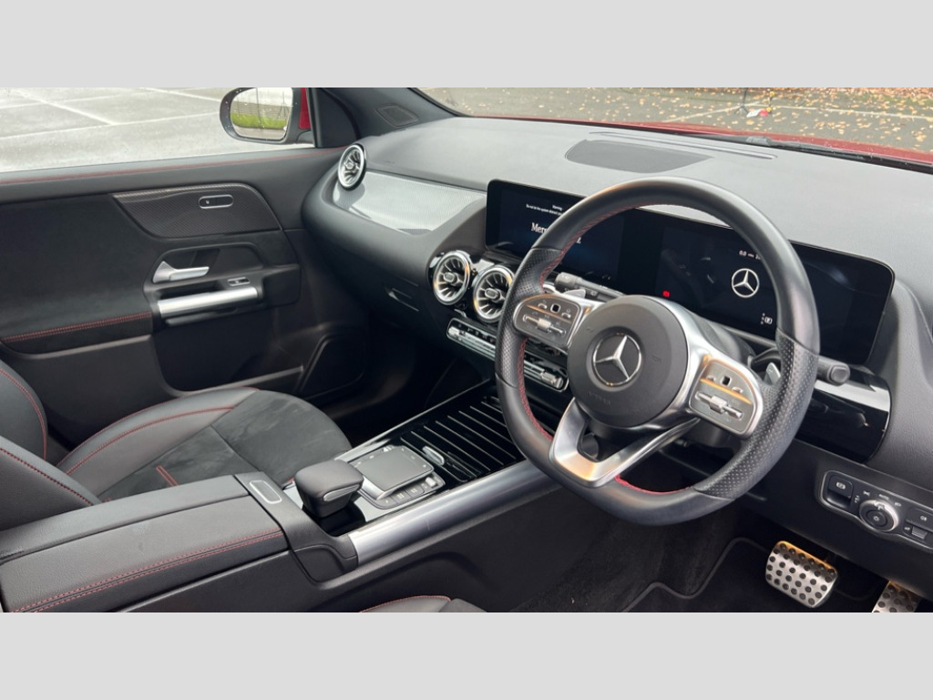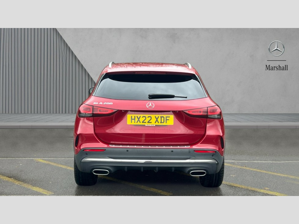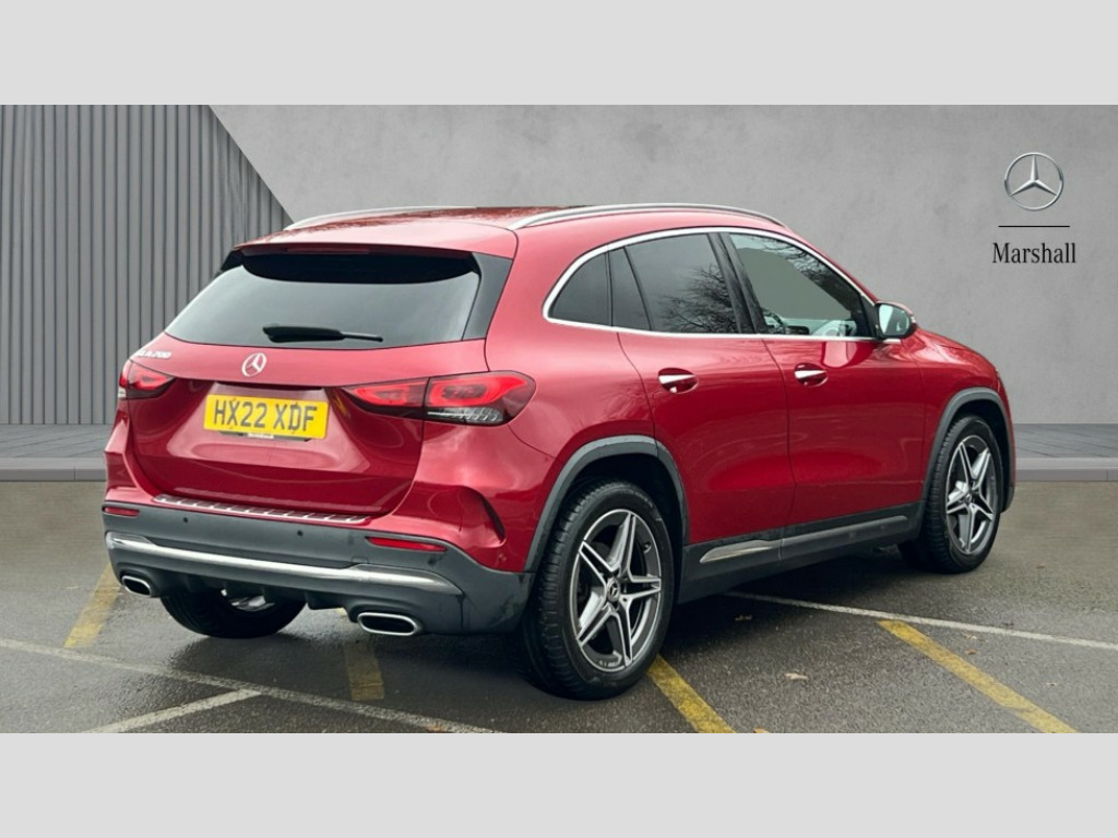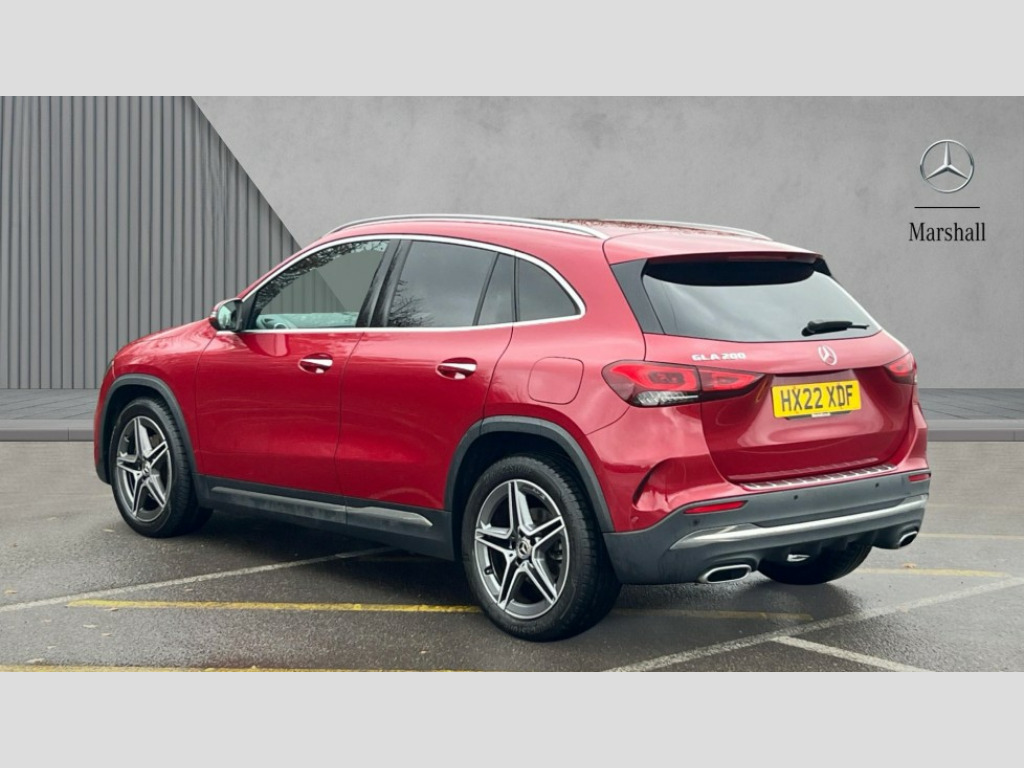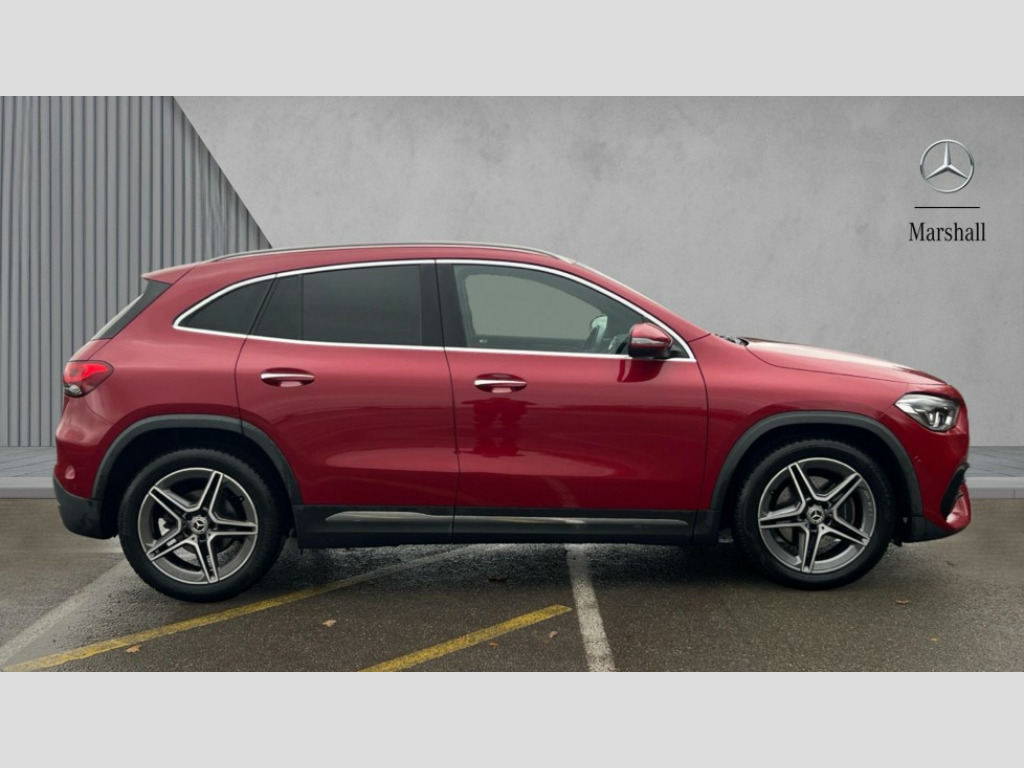 Mercedes-Benz GLA Class GLA 200 AMG Line Premium 5dr Auto 10.25 inch touchscreen central media display, 10.25" Digital instrument cluster display screen, Active lane keeping assist, Attention assist, Cruise control + speed limiter, Direct steering, DYNAMIC SELECT with a choice of driving modes (ECO, Comfort, Sport and Individual), ECO start/stop function, Fluid level warning indicator for fuel, oil, coolant and washer fluid, Hard-disk navigation, Hey Mercedes Voice activation, Lamp failure indicator, Mercedes me connect including emergency call system, accident recovery, breakdown and maintenance management, Mercedes me remote services, Multi function trip computer, Outside temperature gauge, Owners manual and service booklet in English, Pre-installation of private car share, Radio aerial integrated into front and rear windshields, Service indicator (ASSYST), Smartphone integration with Apple CarPlay and Android auto, Speed limit assist, Status display for rear seat belts in instrument cluster, Lowered comfort suspension, Rear axle multi-link, 2 USB ports (type C) in rear stowage compartment and one in front of center console, Bluetooth connectivity including audio streaming, DAB Digital radio, MBUX multimedia system, Media interface, Mercedes-Benz (225w) sound system with 10 speakers, Adaptive brake lights, Aerial for GPS, Aluminium roof rails, AMG front and rear apron, AMG specific/dual flow exhaust pipes in chrome (non-functional), Automatic headlamp activation, Beltline strips and weather strip in chrome, Black grained claddings with chrome parts, Body colour bumpers, Body colour door mirrors, Body coloured door handles with chrome insert for keyless entry, Car wash function, Dark privacy glass from B-pillar backwards, Electric front windows, Electric rear windows, Electrically adjustable and heated door mirrors with integrated LED indicators, Heated glass rear windscreen + timer control, Heated windscreen wash system, Interior mirror with black reading lamps and frameless, LED high performance headlamps with integrated LED daytime running lights, LED tail lights in two piece design, LED third brake light, Matt titanium grey front and rear apron trim, Pre-installation for trailer coupling, Rain sensor windscreen wipers, Rear fog lights, Rear side wing doors, Roof spoiler, Single lamella raditor grille with chrome dotted diamond grille and inlay, 12V power socket in centre console, 3 seat bench in 2nd row, 3 spoke multifunction sports steering wheel in nappa leather with flattened bottom and perforated grip area, 40:20:40 split folding rear seat backrests, Adjustable head restraints, Air conditioning - Two zone thermotronic luxury automatic climate control with display, Ambient lighting in front headrests, AMG floor mats with AMG lettering in front, Artico man-made leather/Microfibre Dinamica upholstery with red contrast stitching, Auto Mercedes-Benz child seat recognition sensor, Black roof lining, Brushed door pulls in silver chrome, Courtesy light in boot, Front centre armrest with stowage, Galvanished gear shift paddles on steering wheel, Heated front seats, illuminated door sills with changeable cover, Illuminated glovebox, Interior lighting - 64 colour Ambient lighting, Leather trimmed gearknob, Luggage net on driver/front passenger seat backrest, Manually height and reach adjustable steering column, Multi-gesture touchpad control on center console, Single front passenger seat, Sports pedals in brushed stainless steel with black rubber studs, Sports seats, Stowage compartment in centre console, Stowage compartment with retractable cover, Sunvisors with illuminated vanity mirrors, Twin front cup holders, Two outer rear seat isofix and top tether child seat fixing points, AMG body styling pack - GLA, Comfort seat pack - GLA Class, Interior lighting with light and sight pack - GLA, Load compartment pack - GLA, Mirror pack - GLA Class, Parking pack - GLA, 3 rear 3 point seatbelts, ABS with Brake Assist, Active bonnet pedestrain safety measure which detects an impact and raises bonnet by 65mm, Active brake assist includes forward collision warning system with autonomous braking, Adaptive brake assist with hold function and hill start assist, Bonnet with power domes, Brake pad wear warning indicator, Childproof locks manually operated for rear doors and electrically operated for rear power windows, Crash responsive emergency lighting, Driver and passenger head and side airbags, Drivers knee airbag, Dual stage driver/passenger airbags, Electronic parking brake, ESP curve dynamic assist, ESP with ASR, Front and rear seatbelt reminder, Front brake callipers with Mercedes Benz logo lettering on front, Front brake discs internally ventilated and perforated, Front passenger seat occupancy sensor, Tyre pressure monitoring system, Warning triangle and first aid kit, Window airbags, Alarm system with immobiliser and interior protection -Thatcham category 1, Keyless Go starting function, Remote central locking and crash sensor with emergency opening function, Urban guard vehicle protection, Vehicle key with decorative surround in chrome, Carbon structure trim, Chrome air vent surrounds, 19" AMG 5 twin spoke light alloy wheels aerodynamically optimised painted in tantalite grey with a high sheen finish, Summer tyres, Tirefit tyre sealant kit