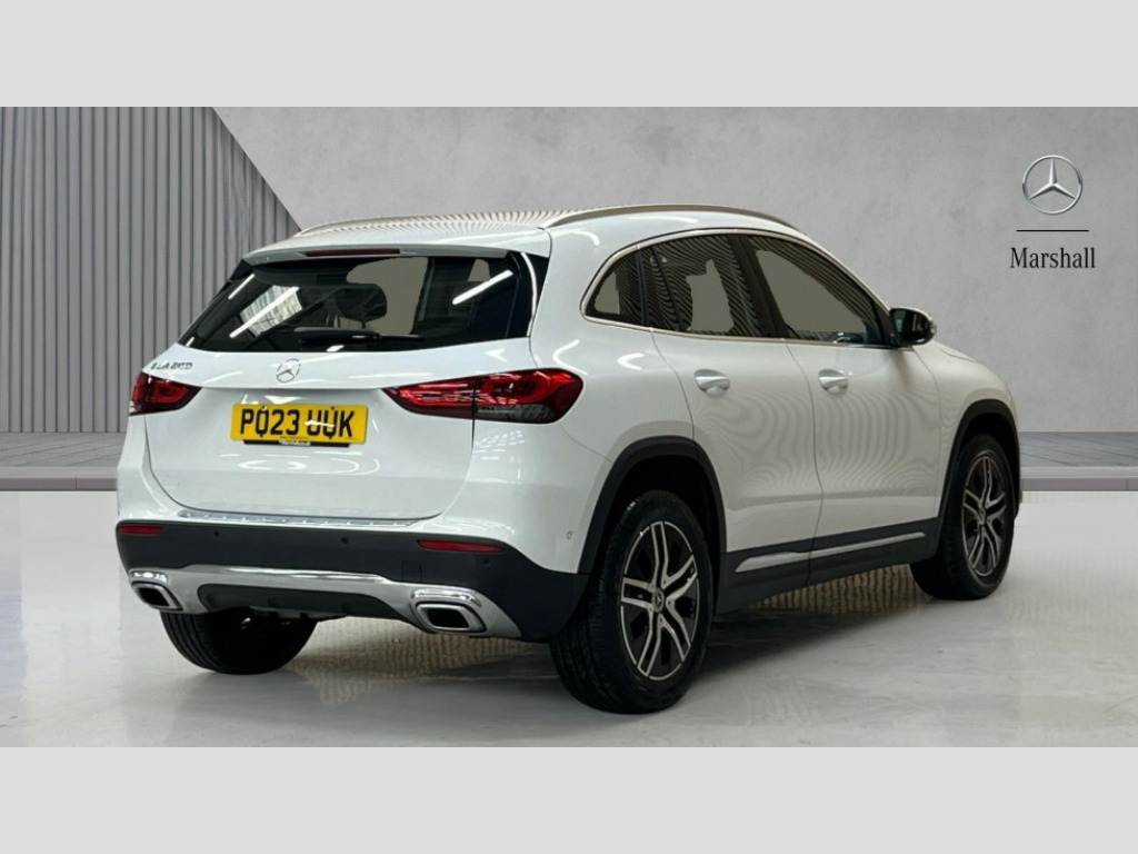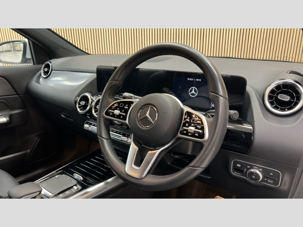 Mercedes-Benz GLA Class GLA 200 Sport Executive 5dr Auto 10.25 inch touchscreen central media display, 7 inch digital instrument cluster display, Active lane keeping assist, Attention assist, Cruise control + speed limiter, DYNAMIC SELECT with a choice of driving modes (ECO, Comfort, Sport and Individual), ECO start/stop function, Fluid level warning indicator for fuel, oil, coolant and washer fluid, Hard-disk navigation, Hey Mercedes Voice activation, Lamp failure indicator, Mercedes me connect including emergency call system, accident recovery, breakdown and maintenance management, Mercedes me remote services, Multi function trip computer, Outside temperature gauge, Owners manual and service booklet in English, Pre-installation of private car share, Radio aerial integrated into front and rear windshields, Service indicator (ASSYST), Smartphone integration with Apple CarPlay and Android auto, Speed limit assist, Speed sensitive power steering, Status display for rear seat belts in instrument cluster, Comfort suspension, Rear axle multi-link, 2 USB ports (type C) in rear stowage compartment and one in front of center console, Bluetooth connectivity including audio streaming, DAB Digital radio, MBUX multimedia system, Media interface, Mercedes-Benz sound system - 100W, Adaptive brake lights, Aerial for GPS, Aluminium roof rails, Automatic headlamp activation, Beltline strips and weather strip in chrome, Black grained claddings with chrome parts, Body colour bumpers, Body colour door handles, Body colour door mirrors, Car wash function, Dark chrome front and rear apron trim, Electric front windows, Electric rear windows, Electrically adjustable and heated door mirrors with integrated LED indicators, Exhaust system with dual flow exhaust pipes in chrome (non-functional), Front bumper with underride guard in high gloss chrome, Front door sills with Mercedes-Benz lettering, Heated glass rear windscreen + timer control, Heated windscreen wash system, Interior mirror with black reading lamps and frameless, LED high performance headlamps with integrated LED daytime running lights, LED tail lights in two piece design, LED third brake light, Rain sensor windscreen wipers, Rear fog lights, Rear side wing doors, Rear wiper, Roof spoiler, Simulated body styling underguard in matt chrome, Single lamella radiator grille painted in silver matt with chrome inlay and black dots, 12V power socket in centre console, 3 seat bench in 2nd row, 3 spoke leather multifunction sports steering wheel with chrome elements, 40:20:40 split folding rear seat backrests, Adjustable head restraints, Air conditioning - Two zone thermotronic luxury automatic climate control with display, Artico man-made leather/Bertrix fabric upholstery, Auto Mercedes-Benz child seat recognition sensor, Black roof lining, Comfort seats, Courtesy light in boot, Floor mats in velour, Front centre armrest with stowage, Gearshift paddles, Heated front seats, Illuminated glovebox, Leather trimmed gearknob, Luggage net on driver/front passenger seat backrest, Manually height and reach adjustable steering column, Multi-gesture touchpad control on center console, Single front passenger seat, Stowage compartment in centre console, Stowage compartment with retractable cover, Sunvisors with illuminated vanity mirrors, Twin front cup holders, Two outer rear seat isofix and top tether child seat fixing points, Comfort seat pack - GLA Class, Interior lighting with light and sight pack - GLA, Load compartment pack - GLA, Mirror pack - GLA Class, Parking pack - GLA, 3 rear 3 point seatbelts, ABS with Brake Assist, Active bonnet pedestrain safety measure which detects an impact and raises bonnet by 65mm, Active brake assist includes forward collision warning system with autonomous braking, Adaptive brake assist with hold function and hill start assist, Bonnet with power domes, Brake pad wear warning indicator, Childproof locks manually operated for rear doors and electrically operated for rear power windows, Crash responsive emergency lighting, Driver and passenger head and side airbags, Drivers knee airbag, Dual stage driver/passenger airbags, Electronic parking brake, ESP curve dynamic assist, ESP with ASR, Front and rear seatbelt reminder, Front passenger seat occupancy sensor, Tyre pressure monitoring system, Warning triangle and first aid kit, Window airbags, Alarm system with immobiliser and interior protection -Thatcham category 1, Keyless Go starting function, Remote central locking and crash sensor with emergency opening function, Urban guard vehicle protection, Vehicle key with decorative surround in chrome, Chrome air vent surrounds, Spiral look trim, 18" 5 twin spoke light alloy wheels aerodynamically optimised painted in black with a high sheen finish, Summer tyres, Tirefit tyre sealant kit