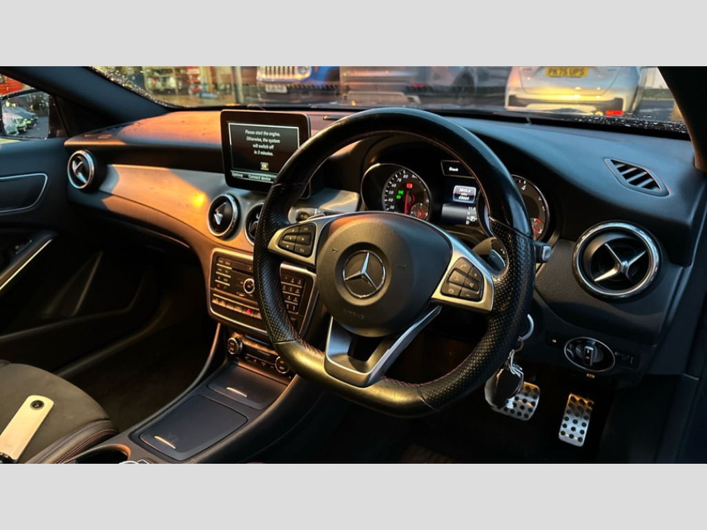 Mercedes-Benz GLA Class GLA 200d 4Matic AMG Line 5dr Auto [Executive] 8" colour display screen, Active park assist with parktronic system, Attention assist, Collision prevention assist plus, DYNAMIC SELECT with a choice of driving modes (ECO, Comfort, Sport, Sport+ and Individual), Easy-pack tailgate - Powered opening/closing automatically, Low fuel level warning light, Multi function trip computer, Outside temperature gauge, Reversing camera, Service indicator (ASSYST), Smartphone integration with Apple CarPlay, Sports steering system, Comfort suspension, Bluetooth connectivity including audio streaming, Media interface, SD card slot, USB port, Adaptive brake lights, AMG front and rear apron, Aspherically curved door mirror glass, Automatic headlamp activation, Body colour bumpers, Body colour door handles, Body colour side skirt, Electric front windows, Electric heated + adjustable door mirrors, Electric rear windows, Heated rear window with timer, Heated windscreen wash system, LED indicators in door mirrors, LED tail lights, Rain sensor windscreen wipers, Rear privacy glass, Rear windscreen wiper with auto activation when reversing, Roof spoiler, Twin chrome exhaust tailpipes, 1/3 to 2/3 split folding rear seats, 12V power socket in centre console, 12V socket in luggage compartment, 3 spoke flat bottom multifunction leather steering wheel, Ambient lighting, AMG brushed stainless steel sports pedals with rubber studs, Auto Mercedes-Benz child seat recognition sensor, Black headlining, Centre console storage, Centre console with cupholders, Courtesy light in boot, Footwell lights, Front and rear headrests, Front centre armrest with storage compartment, Gearshift paddles, Heated front seats, Height adjustable front seats, Height/reach adjustable steering column, Illuminated door sills, Illuminated glovebox, Interior door handle illumination, Isofix rear child seat preparation, Load securing rings in luggage compartment, Luggage compartment cover, Luggage compartment lighting, Luggage nets in boot, Overhead storage box/sunglasses holder, Parcel net in front passenger footwell, Parcel net on driver and front seat backrests, Rear armrest with 2 cupholders and load through provision, Rear Reading Lamps, Sports seats, Storage compartment under front seats, Sunvisors with illuminated vanity mirrors, THERMOTRONIC automatic climate control, 3 rear 3 point seatbelts, ABS with Brake Assist, Active bonnet, Adaptive brake system, Brake calipers with Mercedes-Benz lettering + perforated brake discs, Child proof door locks, Crash responsive emergency lighting, Drivers knee airbag, Dual stage driver/passenger airbags, Electronic parking brake, ESP with ASR, Front and rear seatbelt reminder, Front passenger seat occupancy sensor, Front side airbags, Hill descent control, Hill start assist, Tyre pressure monitoring system, Warning triangle and first aid kit, Window airbags, Alarm system/interior protection/immobiliser, Chrome surround in electric key, Remote central locking, Chrome air vent surrounds, Leather gear knob with chrome insert, Light aluminium with longitudinal grain interior trim