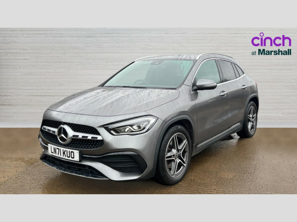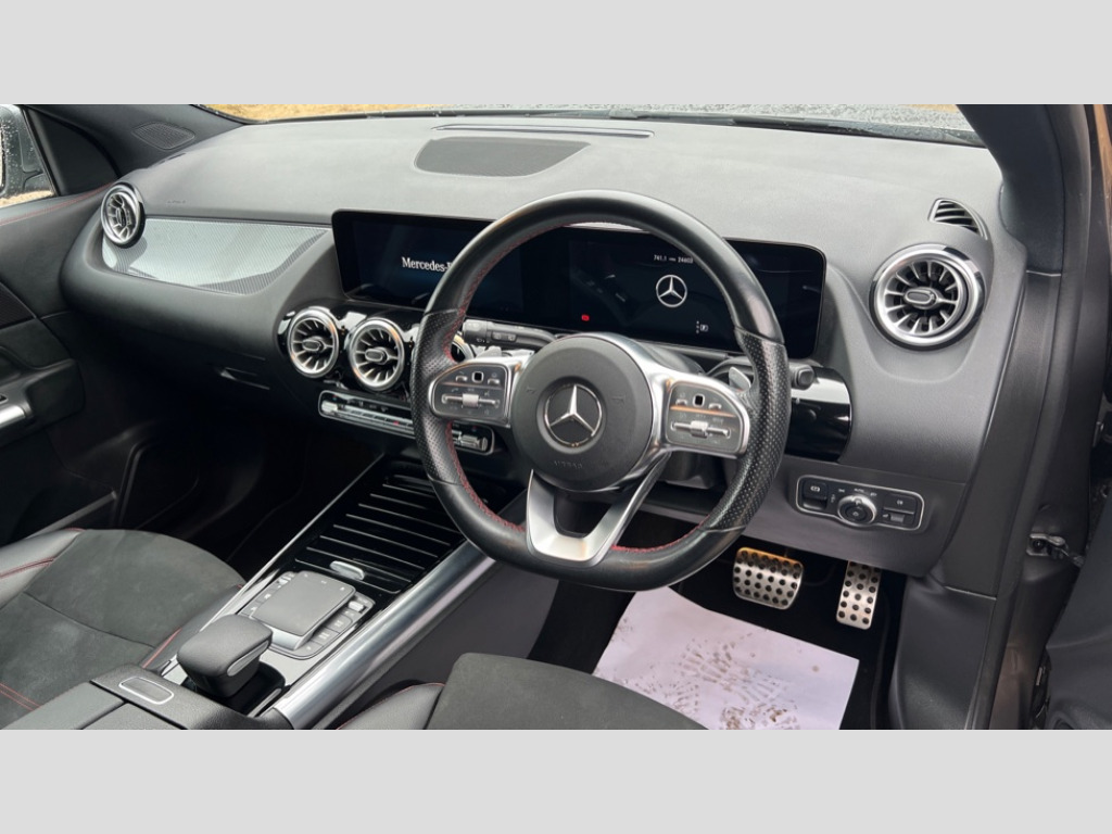 Mercedes-Benz GLA Class GLA 200d AMG Line Premium 5dr Auto 10.25 inch touchscreen central media display, 10.25" Digital instrument cluster display screen, Active lane keeping assist, Attention assist, Cruise control + speed limiter, Direct steering, DYNAMIC SELECT with a choice of driving modes (ECO, Comfort, Sport and Individual), ECO start/stop function, Fluid level warning indicator for fuel, oil, coolant and washer fluid, Hard-disk navigation, Hey Mercedes Voice activation, Lamp failure indicator, Mercedes me connect including emergency call system, accident recovery, breakdown and maintenance management, Mercedes me remote services, Multi function trip computer, Outside temperature gauge, Owners manual and service booklet in English, Pre-installation of private car share, Radio aerial integrated into front and rear windshields, Service indicator (ASSYST), Smartphone integration with Apple CarPlay and Android auto, Speed limit assist, Status display for rear seat belts in instrument cluster, Lowered comfort suspension, Rear axle multi-link, 2 USB ports (type C) in rear stowage compartment and one in front of center console, Bluetooth connectivity including audio streaming, DAB Digital radio, MBUX multimedia system, Media interface, Mercedes-Benz (225w) sound system with 10 speakers, Adaptive brake lights, Aerial for GPS, Aluminium roof rails, AMG front and rear apron, AMG specific/dual flow exhaust pipes in chrome (non-functional), Automatic headlamp activation, Beltline strips and weather strip in chrome, Black grained claddings with chrome parts, Body colour bumpers, Body colour door mirrors, Body coloured door handles with chrome insert for keyless entry, Car wash function, Dark privacy glass from B-pillar backwards, Electric front windows, Electric rear windows, Electrically adjustable and heated door mirrors with integrated LED indicators, Heated glass rear windscreen + timer control, Heated windscreen wash system, Interior mirror with black reading lamps and frameless, LED high performance headlamps with integrated LED daytime running lights, LED tail lights in two piece design, LED third brake light, Matt titanium grey front and rear apron trim, Pre-installation for trailer coupling, Rain sensor windscreen wipers, Rear fog lights, Roof spoiler, Single lamella raditor grille with chrome dotted diamond grille and inlay, 12V power socket in centre console, 3 spoke multifunction sports steering wheel in nappa leather with flattened bottom and perforated grip area, 40:20:40 split folding rear seat backrests, Adjustable head restraints, Air conditioning - Two zone thermotronic luxury automatic climate control with display, Ambient lighting in front headrests, AMG floor mats with AMG lettering in front, Artico man-made leather/Microfibre Dinamica upholstery with red contrast stitching, Auto Mercedes-Benz child seat recognition sensor, Black roof lining, Brushed door pulls in silver chrome, Courtesy light in boot, Front centre armrest with stowage, Galvanished gear shift paddles on steering wheel, Heated front seats, illuminated door sills with changeable cover, Illuminated glovebox, Interior lighting - 64 colour Ambient lighting, Leather trimmed gearknob, Luggage net on driver/front passenger seat backrest, Manually height and reach adjustable steering column, Multi-gesture touchpad control on center console, Sports pedals in brushed stainless steel with black rubber studs, Sports seats, Stowage compartment in centre console, Stowage compartment with retractable cover, Sunvisors with illuminated vanity mirrors, Twin front cup holders, Two outer rear seat isofix and top tether child seat fixing points, AMG body styling pack - GLA, Comfort seat pack - GLA Class, Interior lighting with light and sight pack - GLA, Load compartment pack - GLA, Mirror pack - GLA Class, Parking pack - GLA, 3 rear 3 point seatbelts, ABS with Brake Assist, Active bonnet pedestrain safety measure which detects an impact and raises bonnet by 65mm, Active brake assist includes forward collision warning system with autonomous braking, Adaptive brake assist with hold function and hill start assist, Bonnet with power domes, Brake pad wear warning indicator, Childproof locks manually operated for rear doors and electrically operated for rear power windows, Crash responsive emergency lighting, Driver and passenger head and side airbags, Drivers knee airbag, Dual stage driver/passenger airbags, Electronic parking brake, ESP curve dynamic assist, ESP with ASR, Front and rear seatbelt reminder, Front brake callipers with Mercedes Benz logo lettering on front, Front brake discs internally ventilated and perforated, Front passenger seat occupancy sensor, Tyre pressure monitoring system, Warning triangle and first aid kit, Window airbags, Alarm system with immobiliser and interior protection -Thatcham category 1, Keyless Go starting function, Remote central locking and crash sensor with emergency opening function, Urban guard vehicle protection, Vehicle key with decorative surround in chrome, Carbon structure trim, Chrome air vent surrounds, 19" AMG 5 twin spoke light alloy wheels aerodynamically optimised painted in tantalite grey with a high sheen finish, Summer tyres, Tirefit tyre sealant kit