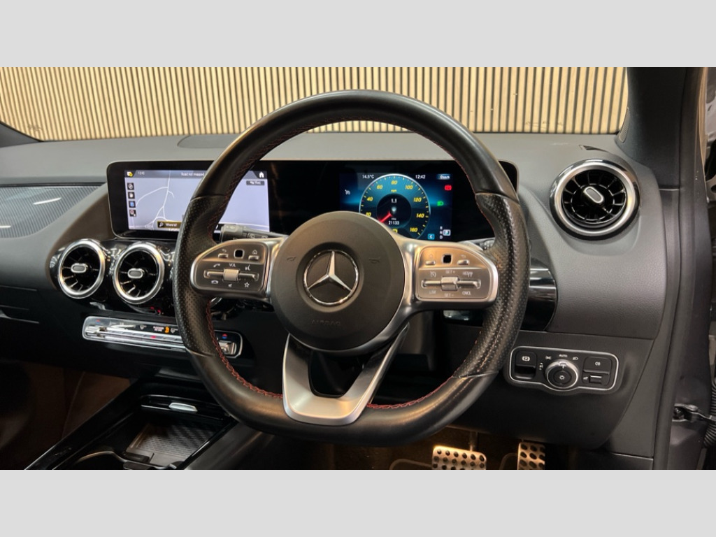 Mercedes-Benz GLA Class GLA 220d 4Matic AMG Line Executive 5dr Auto 10.25 inch touchscreen central media display, 7 inch digital instrument cluster display, Active lane keeping assist, Attention assist, Cruise control + speed limiter, Direct steering, DYNAMIC SELECT with a choice of driving modes (ECO, Comfort, Sport, Sport+ and Individual), Easy-pack tailgate, ECO start/stop function, Fluid level warning indicator for fuel, oil, coolant and washer fluid, Hard-disk navigation, Hey Mercedes Voice activation, Lamp failure indicator, Mercedes me connect including emergency call system, accident recovery, breakdown and maintenance management, Multi function trip computer, Outside temperature gauge, Owners manual and service booklet in English, Pre-installation for Vehicle Monitoring, Pre-installation for Vehicle set up, Pre-installation of private car share, Radio aerial integrated into front and rear windshields, Service indicator (ASSYST), Smartphone integration with Apple CarPlay and Android auto, Speed limit assist, Status display for rear seat belts in instrument cluster, Wireless charging, Lowered comfort suspension, Rear axle multi-link, 2 USB ports (type C) in rear stowage compartment and one in front of center console, Bluetooth connectivity including audio streaming, DAB Digital radio, MBUX multimedia system with DAB digital radio and touchpad including satellite navigation, Media interface, Mercedes-Benz sound system - 100W, Adaptive brake lights, Aerial for GPS, Aluminium roof rails, AMG front and rear apron, AMG specific/dual flow exhaust pipes in chrome (non-functional), Automatic headlamp activation, Beltline strips and weather strip in chrome, Black grained claddings with chrome parts, Body colour bumpers, Body colour door handles, Body colour door mirrors, Car wash function, Dark privacy glass from B-pillar backwards, Electric front windows, Electric rear windows, Electrically adjustable and heated door mirrors with integrated LED indicators, Front door sills with Mercedes-Benz lettering, Heated glass rear windscreen + timer control, Heated windscreen wash system, Interior mirror with black reading lamps and frameless, LED high performance headlamps with integrated LED daytime running lights, LED tail lights in two piece design, LED third brake light, Matt titanium grey front and rear apron trim, Rain sensor windscreen wipers, Rear fog lights, Roof spoiler, Single lamella raditor grille with chrome dotted diamond grille and inlay, 12V power socket in centre console, 3 spoke multifunction sports steering wheel in nappa leather with flattened bottom and perforated grip area, 40:20:40 split folding rear seat backrests, Adjustable head restraints, Air conditioning - Two zone thermotronic luxury automatic climate control with display, Ambient lighting in front headrests, AMG floor mats with AMG lettering and stiched edging, Artico man-made leather/Microfibre Dinamica upholstery with red contrast stitching, Auto Mercedes-Benz child seat recognition sensor, Black roof lining, Brushed door pulls in silver chrome, Courtesy light in boot, Front centre armrest with stowage, Galvanished gear shift paddles on steering wheel, Heated front seats, Illuminated glovebox, Leather trimmed gearknob, Luggage net on driver/front passenger seat backrest, Manually height and reach adjustable steering column, Multi-gesture touchpad control on center console, Net in front passenger footwell, Sports pedals in brushed stainless steel with black rubber studs, Sports seats, Stowage compartment in centre console, Stowage compartment with retractable cover, Sunvisors with illuminated vanity mirrors, Twin front cup holders, Two outer rear seat isofix and top tether child seat fixing points, AMG body styling pack - GLA, Comfort seat pack - GLA Class, Interior lighting with light and sight pack - GLA, Load compartment pack - GLA, Mirror pack - GLA Class, Off road engineering pack - GLA, Parking pack - GLA, 3 rear 3 point seatbelts, ABS with Brake Assist, Active bonnet pedestrain safety measure which detects an impact and raises bonnet by 65mm, Active brake assist includes forward collision warning system with autonomous braking, Adaptive brake assist with hold function and hill start assist, Bonnet with power domes, Brake pad wear warning indicator, Childproof locks manually operated for rear doors and electrically operated for rear power windows, Crash responsive emergency lighting, Driver and passenger head and side airbags, Drivers knee airbag, Dual stage driver/passenger airbags, Electronic parking brake, ESP curve dynamic assist, ESP with ASR, Front and rear seatbelt reminder, Front brake callipers with Mercedes Benz logo lettering on front, Front brake discs internally ventilated and perforated, Front passenger seat occupancy sensor, Tyre pressure monitoring system, Warning triangle and first aid kit, Window airbags, Alarm system with immobiliser and interior protection -Thatcham category 1, Keyless Go starting function, Remote central locking and crash sensor with emergency opening function, Vehicle key with decorative surround in chrome, Carbon structure trim, Chrome air vent surrounds, 19" AMG 5 twin spoke light alloy wheels aerodynamically optimised painted in tantalite grey with a high sheen finish, Summer tyres, Tirefit tyre sealant kit