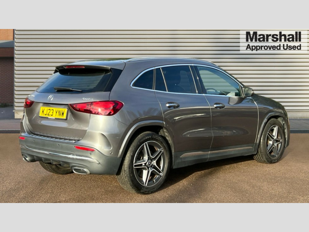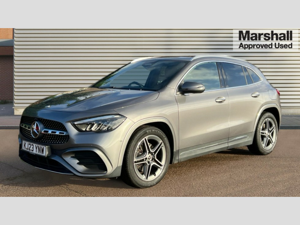 Mercedes-Benz GLA Class GLA 220d 4Matic AMG Line Executive 5dr Auto 10.25 inch touchscreen central media display, 10.25" Digital instrument cluster display screen, Attention assist, Direct steering, DYNAMIC SELECT with a choice of driving modes (ECO, Comfort, Sport and Individual), ECO start/stop function, Fluid level warning indicator for fuel, oil, coolant and washer fluid, Hard-disk navigation, Hey Mercedes Voice activation, Lamp failure indicator, Lane keeping assist (LKA), Mercedes me connect including emergency call system, accident recovery, breakdown and maintenance management, Mercedes me remote services, Multi function trip computer, Outside temperature gauge, Owners manual and service booklet in English, Pre-installation of private car share, Radio aerial integrated into front and rear windshields, Service indicator (ASSYST), Smartphone integration with Apple CarPlay and Android auto, Speed limit assist, Status display for rear seat belts in instrument cluster, Wireless charging, Lowered comfort suspension, Rear axle multi-link, Bluetooth connectivity including audio streaming, DAB Digital radio, MBUX multimedia system, Media interface, Mercedes-Benz sound system - 100W, Pre installation for Mercedes Benz Link, Adaptive brake lights, Adaptive highbeam assist, Aerial for GPS, Aluminium roof rails, AMG front apron with front splitter in the colour of the vehicle with chrome trim element, AMG rear apron with visible tailpipe trim and chrome trim element, AMG specific/dual flow exhaust pipes in chrome (non-functional), Automatic headlamp activation, Beltline trim and window line trim strip in high gloss aluminium, Black grained side sill trim with chrome inlay, Body coloured door handles with chrome insert for keyless entry, Car wash function, Dark privacy glass from B-pillar backwards, Electric front windows, Electric rear windows, Electrically adjustable and heated door mirrors with integrated LED indicators, Exhaust system with 2 Visible tailpipe trim elements and rear apron with trim in chrome, Heat insulating dark tinted glass, Heated glass rear windscreen + timer control, Heated windscreen wash system, Interior mirror with black reading lamps and frameless, LED high performance headlamps with integrated LED daytime running lights, LED tail lights, LED third brake light, Radiator diamond grille with chrome pins and central Mercedes star, single louvre in matt grey with chrome inserts and black highlights, Rain sensor windscreen wipers, Rear fog lights, Rear side wing doors, Rear wiper, Roof spoiler, Wheel arch liners in the colour of the vehicle, 12V power socket in centre console, 3 seat bench in 2nd row, 3 spoke flat bottom multifunction nappa leather steering wheel, 40:20:40 split folding rear seat backrests, Adjustable head restraints, Air conditioning - One zone THERMATIC automatic climate control with automatically controlled air distribution, AMG floor mats, Auto Mercedes-Benz child seat recognition sensor, Black roof lining, Courtesy light in boot, Front centre armrest with stowage, Galvanished gear shift paddles on steering wheel in silver chrome, Heated front seats, Illuminated glovebox, Interior lighting - 64 colour Ambient lighting, Luggage net on driver/front passenger seat backrest, Manually height and reach adjustable steering column, Single front passenger seat, Sports pedals in brushed stainless steel with black rubber studs, Sports seats, Sports steering wheel, Stowage compartment in centre console, Stowage compartment with retractable cover, Sunvisors with illuminated vanity mirrors, Twin front cup holders, Two outer rear seat isofix and top tether child seat fixing points, Comfort seat pack - GLA Class, Interior lighting with light and sight pack - GLA, Keyless go comfort package - GLA, Mirror pack - GLA Class, Off road engineering pack - GLA, Parking package with reversing camera - GLA, USB package plus - GLA, 3 rear 3 point seatbelts, ABS with Brake Assist, Active bonnet pedestrain safety measure which detects an impact and raises bonnet by 65mm, Active brake assist includes forward collision warning system with autonomous braking, Adaptive brake assist with hold function and hill start assist, Black seatbelts, Bonnet with power domes, Brake pad wear warning indicator, Childproof locks manually operated for rear doors and electrically operated for rear power windows, Crash responsive emergency lighting, Driver and passenger head and side airbags, Drivers knee airbag, Dual stage driver/passenger airbags, Electronic parking brake, ESP curve dynamic assist, ESP with ASR, Front and rear seatbelt reminder, Front brake callipers with Mercedes Benz logo lettering on front, Front brake discs internally ventilated and perforated, Front passenger seat occupancy sensor, Sports braking system, Tyre pressure monitoring system, Warning triangle and first aid kit, Window airbags, Alarm system with immobiliser and interior protection -Thatcham category 1, Keyless Go starting function, Remote central locking and crash sensor with emergency opening function, Urban guard vehicle protection, Vehicle key with decorative surround in chrome, Carbon structure trim, 19" AMG 5 twin spoke light alloy wheels aerodynamically optimised and painted in tantalite grey with a high-sheen finish RTF, Summer tyres, Tirefit tyre sealant kit