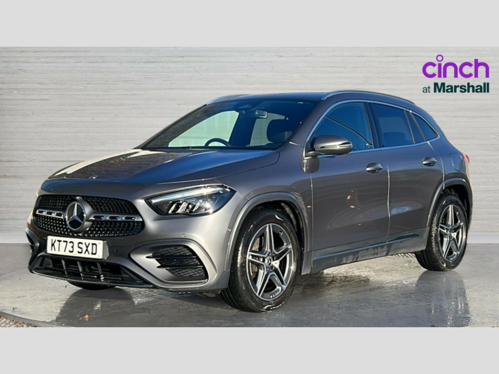 Mercedes-Benz GLA Class GLA 220d 4Matic AMG Line Executive 5dr Auto 10.25 inch touchscreen central media display, 10.25" Digital instrument cluster display screen, Attention assist, Direct steering, DYNAMIC SELECT with a choice of driving modes (ECO, Comfort, Sport and Individual), ECO start/stop function, Fluid level warning indicator for fuel, oil, coolant and washer fluid, Hard-disk navigation, Hey Mercedes Voice activation, Lamp failure indicator, Lane keeping assist (LKA), Mercedes me connect including emergency call system, accident recovery, breakdown and maintenance management, Mercedes me remote services, Multi function trip computer, Outside temperature gauge, Owners manual and service booklet in English, Pre-installation of private car share, Radio aerial integrated into front and rear windshields, Service indicator (ASSYST), Smartphone integration with Apple CarPlay and Android auto, Speed limit assist, Status display for rear seat belts in instrument cluster, Wireless charging, Lowered comfort suspension, Rear axle multi-link, Bluetooth connectivity including audio streaming, DAB Digital radio, MBUX multimedia system, Media interface, Mercedes-Benz sound system - 100W, Pre installation for Mercedes Benz Link, Adaptive brake lights, Adaptive highbeam assist, Aerial for GPS, Aluminium roof rails, AMG front apron with front splitter in the colour of the vehicle with chrome trim element, AMG rear apron with visible tailpipe trim and chrome trim element, AMG specific/dual flow exhaust pipes in chrome (non-functional), Automatic headlamp activation, Beltline trim and window line trim strip in high gloss aluminium, Black grained side sill trim with chrome inlay, Body coloured door handles with chrome insert for keyless entry, Car wash function, Dark privacy glass from B-pillar backwards, Electric front windows, Electric rear windows, Electrically adjustable and heated door mirrors with integrated LED indicators, Exhaust system with 2 Visible tailpipe trim elements and rear apron with trim in chrome, Heat insulating dark tinted glass, Heated glass rear windscreen + timer control, Heated windscreen wash system, Interior mirror with black reading lamps and frameless, LED high performance headlamps with integrated LED daytime running lights, LED tail lights, LED third brake light, Radiator diamond grille with chrome pins and central Mercedes star, single louvre in matt grey with chrome inserts and black highlights, Rain sensor windscreen wipers, Rear fog lights, Rear side wing doors, Rear wiper, Roof spoiler, Wheel arch liners in the colour of the vehicle, 12V power socket in centre console, 3 seat bench in 2nd row, 3 spoke flat bottom multifunction nappa leather steering wheel, 4 way lumbar support, 40:20:40 split folding rear seat backrests, Adjustable head restraints, Air conditioning - air vents with silver chrome surround, Air conditioning - One zone THERMATIC automatic climate control with automatically controlled air distribution, AMG floor mats, Auto Mercedes-Benz child seat recognition sensor, Black roof lining, Courtesy light in boot, Front centre armrest with stowage, Galvanished gear shift paddles on steering wheel in silver chrome, Heated front seats, Illuminated glovebox, Interior lighting - 64 colour Ambient lighting, Luggage net on driver/front passenger seat backrest, Manually height and reach adjustable steering column, Single front passenger seat, Sports pedals in brushed stainless steel with black rubber studs, Sports seats, Sports steering wheel, Stowage compartment in centre console, Stowage compartment with retractable cover, Sunvisors with illuminated vanity mirrors, Twin front cup holders, Two outer rear seat isofix and top tether child seat fixing points, Comfort seat pack - GLA Class, Interior lighting with light and sight pack - GLA, Keyless go comfort package - GLA, Mirror pack - GLA Class, Off road engineering pack - GLA, Parking package with reversing camera - GLA, USB package plus - GLA, 3 rear 3 point seatbelts, ABS with Brake Assist, Active bonnet pedestrain safety measure which detects an impact and raises bonnet by 65mm, Active brake assist includes forward collision warning system with autonomous braking, Adaptive brake assist with hold function and hill start assist, Black seatbelts, Bonnet with power domes, Brake pad wear warning indicator, Childproof locks manually operated for rear doors and electrically operated for rear power windows, Crash responsive emergency lighting, Driver and passenger head and side airbags, Drivers knee airbag, Dual stage driver/passenger airbags, Electronic parking brake, ESP curve dynamic assist, ESP with ASR, Front and rear seatbelt reminder, Front brake callipers with Mercedes Benz logo lettering on front, Front brake discs internally ventilated and perforated, Front passenger seat occupancy sensor, Sports braking system, Tyre pressure monitoring system, Warning triangle and first aid kit, Window airbags, Alarm system with immobiliser and interior protection -Thatcham category 1, Guard 360 degree vehicle protection, Keyless Go starting function, Remote central locking and crash sensor with emergency opening function, Vehicle key with decorative surround in chrome, Carbon structure trim, 19" AMG 5 twin spoke light alloy wheels aerodynamically optimised and painted in tantalite grey with a high-sheen finish RTF, Summer tyres, Tirefit tyre sealant kit