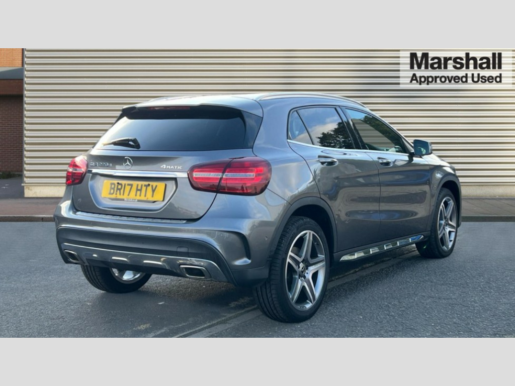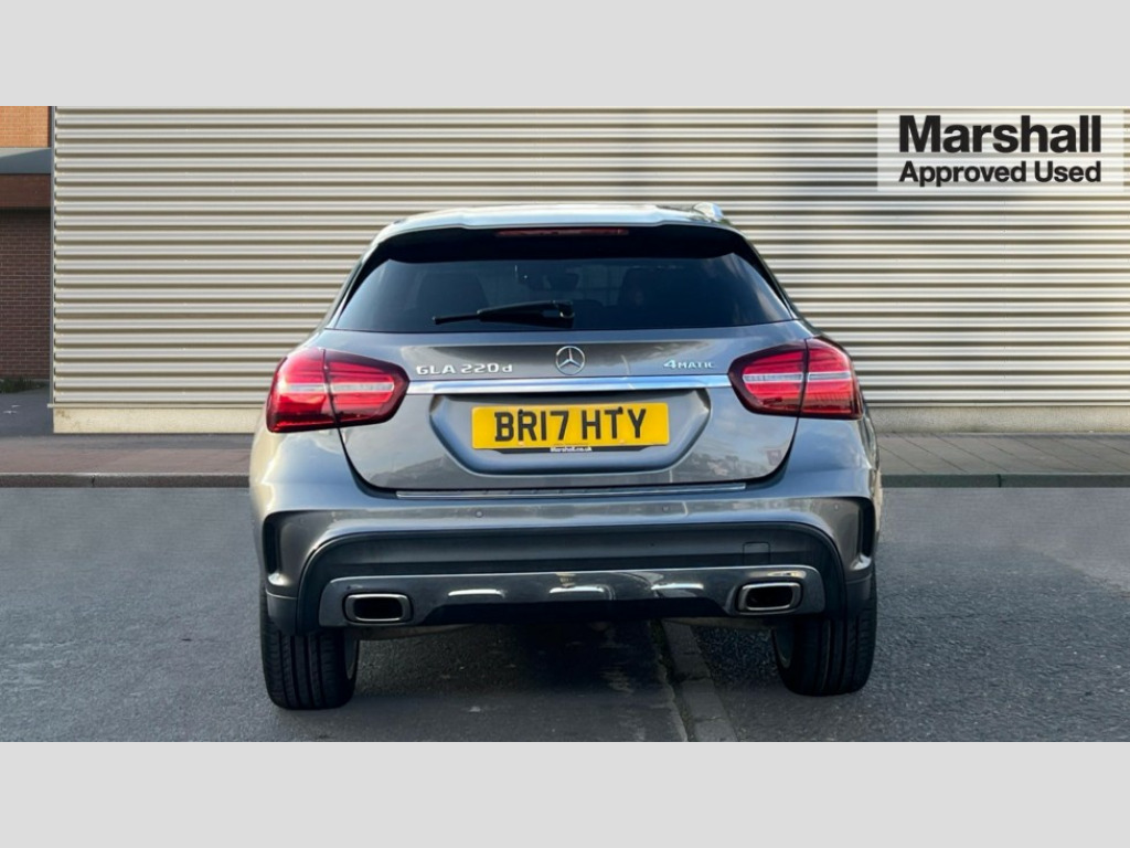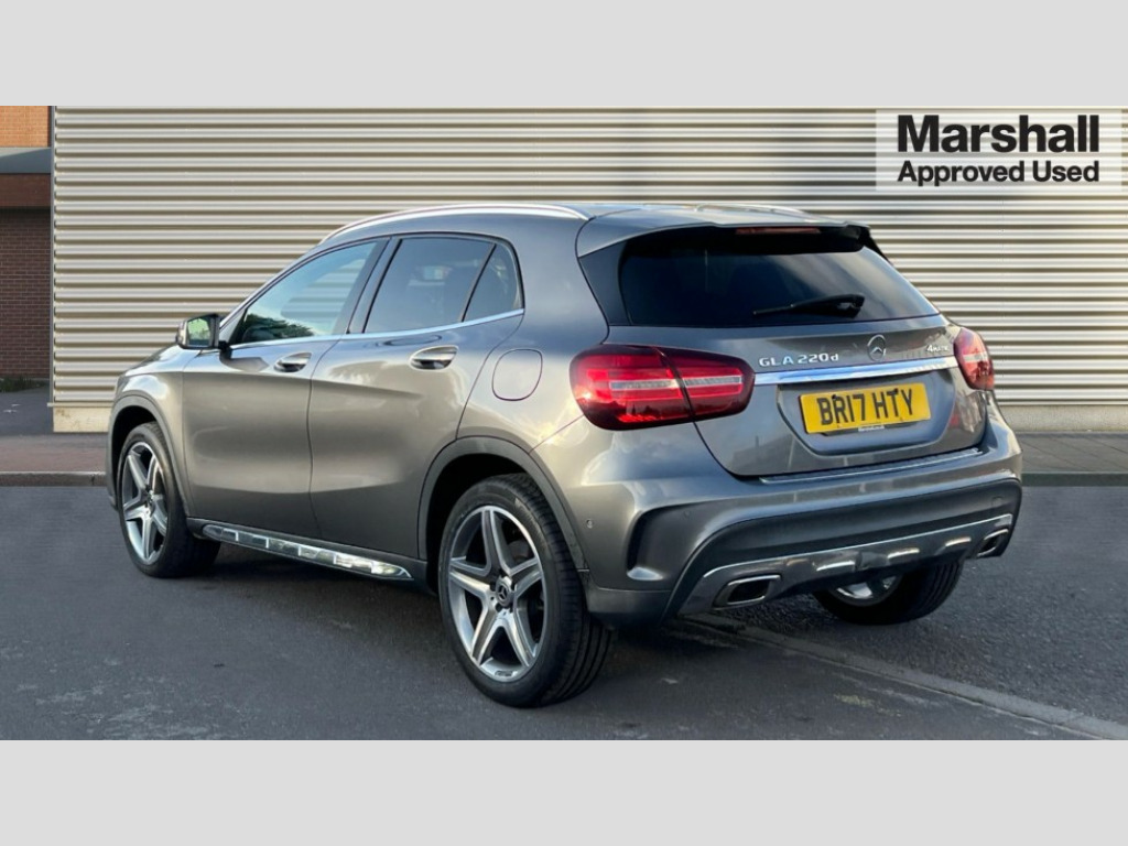 Mercedes-Benz GLA Class GLA 220d 4Matic AMG Line Premium 5dr Auto 8" colour display screen, Active park assist with parktronic system, Attention assist, DYNAMIC SELECT with a choice of driving modes (ECO, Comfort, Sport, Sport+ and Individual), Easy-pack tailgate - Powered opening/closing automatically, Low fuel level warning light, Multi function trip computer, Outside temperature gauge, Service indicator (ASSYST), Smartphone integration with Apple CarPlay, Sports steering system, Comfort suspension, Bluetooth connectivity including audio streaming, Media interface, SD card slot, USB port, Adaptive brake lights, Adaptive LED headlights with high beam assist, AMG body styling, AMG front and rear apron, Aspherically curved door mirror glass, Auto dimming interior + exterior mirrors, Automatic headlamp activation, Body colour bumpers, Body colour door handles, Body colour side skirt, Electric folding door mirrors, Electric front windows, Electric heated + adjustable door mirrors, Electric rear windows, Front fog lights, Heated rear window with timer, Heated windscreen wash system, LED indicators in door mirrors, LED tail lights, Rain sensor windscreen wipers, Rear privacy glass, Rear windscreen wiper with auto activation when reversing, Roof spoiler, Twin chrome exhaust tailpipes, 1/3 to 2/3 split folding rear seats, 12 colour Ambient lighting, 12V power socket in centre console, 12V socket in luggage compartment, 3 spoke flat bottom multifunction nappa leather steering wheel, AMG brushed stainless steel sports pedals with rubber studs, Auto Mercedes-Benz child seat recognition sensor, Black headlining, Centre console storage, Centre console with cupholders, Courtesy light in boot, Footwell lights, Front and rear headrests, Front centre armrest with storage compartment, Gearshift paddles, Heated front seats, Height adjustable front seats, Height/reach adjustable steering column, Illuminated door sills, Illuminated glovebox, Interior door handle illumination, Isofix rear child seat preparation, Load securing rings in luggage compartment, Luggage compartment cover, Luggage compartment lighting, Rear Reading Lamps, Sports seats, Sunvisors with illuminated vanity mirrors, THERMOTRONIC automatic climate control, 3 rear 3 point seatbelts, ABS with Brake Assist, Active bonnet, Adaptive brake system, Black seat belts, Brake calipers with Mercedes-Benz lettering + perforated brake discs, Child proof door locks, Crash responsive emergency lighting, Drivers knee airbag, Dual stage driver/passenger airbags, Electronic parking brake, ESP with ASR, Front and rear seatbelt reminder, Front passenger seat occupancy sensor, Front side airbags, Hill start assist, Tyre pressure monitoring system, Warning triangle and first aid kit, Window airbags, Alarm system/interior protection/immobiliser, Chrome surround in electric key, Keyless Start, Remote central locking, Chrome air vent surrounds, Light aluminium with longitudinal grain interior trim, Run flat tyres