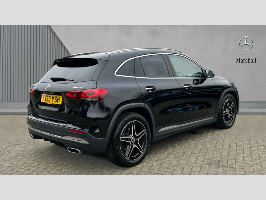 Mercedes-Benz GLA Class GLA 220d 4Matic AMG Line Premium 5dr Auto 10.25 inch touchscreen central media display, 10.25" Digital instrument cluster display screen, Active lane keeping assist, Attention assist, Cruise control + speed limiter, Direct steering, DYNAMIC SELECT with a choice of driving modes (ECO, Comfort, Sport and Individual), ECO start/stop function, Fluid level warning indicator for fuel, oil, coolant and washer fluid, Hard-disk navigation, Hey Mercedes Voice activation, Lamp failure indicator, Mercedes me connect including emergency call system, accident recovery, breakdown and maintenance management, Mercedes me remote services, Multi function trip computer, Outside temperature gauge, Owners manual and service booklet in English, Pre-installation of private car share, Radio aerial integrated into front and rear windshields, Service indicator (ASSYST), Smartphone integration with Apple CarPlay and Android auto, Speed limit assist, Status display for rear seat belts in instrument cluster, Lowered comfort suspension, Rear axle multi-link, 2 USB ports (type C) in rear stowage compartment and one in front of center console, Bluetooth connectivity including audio streaming, DAB Digital radio, MBUX multimedia system, Media interface, Mercedes-Benz (225w) sound system with 10 speakers, Adaptive brake lights, Aerial for GPS, Aluminium roof rails, AMG front and rear apron, AMG specific/dual flow exhaust pipes in chrome (non-functional), Automatic headlamp activation, Beltline strips and weather strip in chrome, Black grained claddings with chrome parts, Body colour bumpers, Body colour door mirrors, Body coloured door handles with chrome insert for keyless entry, Car wash function, Dark privacy glass from B-pillar backwards, Electric front windows, Electric rear windows, Electrically adjustable and heated door mirrors with integrated LED indicators, Front bumper with underride guard in high gloss chrome, Heat insulating dark tinted glass, Heated glass rear windscreen + timer control, Heated windscreen wash system, Interior mirror with black reading lamps and frameless, LED high performance headlamps with integrated LED daytime running lights, LED tail lights in two piece design, LED third brake light, Matt titanium grey front and rear apron trim, Rain sensor windscreen wipers, Rear fog lights, Rear side wing doors, Rear wiper, Roof spoiler, Single lamella raditor grille with chrome dotted diamond grille and inlay, 12V power socket in centre console, 3 seat bench in 2nd row, 3 spoke multifunction sports steering wheel in nappa leather with flattened bottom and perforated grip area, 40:20:40 split folding rear seat backrests, Adjustable head restraints, Air conditioning - Two zone thermotronic luxury automatic climate control with display, Ambient lighting in front headrests, AMG floor mats in black with AMG lettering in front, Artico man-made leather/Microcut microfibre upholstery with red contrast stitching, Auto Mercedes-Benz child seat recognition sensor, Black roof lining, Brushed door pulls in silver chrome, Courtesy light in boot, Floor mats in velour, Front centre armrest with stowage, Galvanished gear shift paddles on steering wheel, Heated front seats, illuminated door sills with changeable cover, Illuminated glovebox, Interior lighting - 64 colour Ambient lighting, Leather trimmed gearknob, Luggage net on driver/front passenger seat backrest, Manually height and reach adjustable steering column, Multi-gesture touchpad control on center console, Single front passenger seat, Sports pedals in brushed stainless steel with black rubber studs, Sports seats, Stowage compartment in centre console, Stowage compartment with retractable cover, Sunvisors with illuminated vanity mirrors, Twin front cup holders, Two outer rear seat isofix and top tether child seat fixing points, AMG body styling pack - GLA, Comfort seat pack - GLA Class, Interior lighting with light and sight pack - GLA, Keyless go comfort package - GLA, Load compartment pack - GLA, Mirror pack - GLA Class, Off road engineering pack - GLA, Parking pack - GLA, 3 rear 3 point seatbelts, ABS with Brake Assist, Active bonnet pedestrain safety measure which detects an impact and raises bonnet by 65mm, Active brake assist includes forward collision warning system with autonomous braking, Adaptive brake assist with hold function and hill start assist, Bonnet with power domes, Brake pad wear warning indicator, Childproof locks manually operated for rear doors and electrically operated for rear power windows, Crash responsive emergency lighting, Driver and passenger head and side airbags, Drivers knee airbag, Dual stage driver/passenger airbags, Electronic parking brake, ESP curve dynamic assist, ESP with ASR, Front and rear seatbelt reminder, Front brake callipers with Mercedes Benz logo lettering on front, Front brake discs internally ventilated and perforated, Front passenger seat occupancy sensor, Sports braking system, Tyre pressure monitoring system, Warning triangle and first aid kit, Window airbags, Alarm system with immobiliser and interior protection -Thatcham category 1, Keyless entry lock/unlock, Keyless Go starting function, Remote central locking and crash sensor with emergency opening function, Urban guard vehicle protection, Vehicle key with decorative surround in chrome, Carbon structure trim, Chrome air vent surrounds, 19" AMG 5 twin spoke light alloy wheels painted in high gloss black with high sheen finish, Summer tyres, Tirefit tyre sealant kit