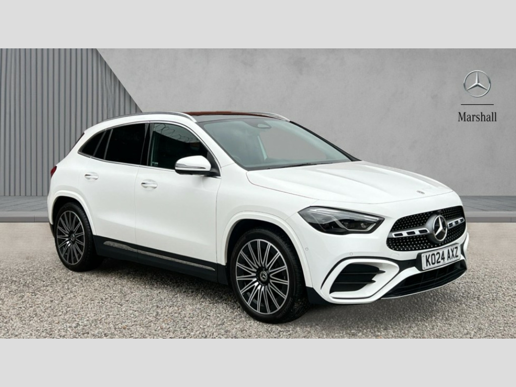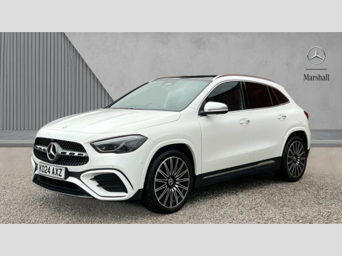 Mercedes-Benz GLA Class GLA 220d 4Matic AMG Line Premium Plus 5dr Auto 10.25 inch touchscreen central media display, 10.25" Digital instrument cluster display screen, Attention assist, Direct steering, DYNAMIC SELECT with a choice of driving modes (ECO, Comfort, Sport and Individual), Easy-pack tailgate, ECO start/stop function, Fingerprint scanner, Fluid level warning indicator for fuel, oil, coolant and washer fluid, Full color head up display, Hard-disk navigation, Hey Mercedes Voice activation, Lamp failure indicator, Lane keeping assist (LKA), Mercedes me connect including emergency call system, accident recovery, breakdown and maintenance management, Mercedes me remote services, Multi function trip computer, Outside temperature gauge, Owners manual and service booklet in English, Pre-installation of private car share, Radio aerial integrated into front and rear windshields, Service indicator (ASSYST), Smartphone integration with Apple CarPlay and Android auto, Traffic sign assist, Wireless charging, Lowered comfort suspension, Rear axle multi-link, Suspension with adaptive damping system, Bluetooth connectivity including audio streaming, DAB Digital radio, MBUX multimedia system, Mercedes-Benz (225w) sound system with 10 speakers, Adaptive brake lights, Adaptive full LED rear lights with automatic adjustment of light intensity to the surroundings, Aluminium roof rails, AMG front apron with front splitter in the colour of the vehicle with chrome trim element, AMG rear apron with visible tailpipe trim and chrome trim element, AMG specific/dual flow exhaust pipes in chrome (non-functional), Automatic headlamp activation, Beltline trim and window line trim strip in high gloss black, Black grained side sill trim with chrome inlay, Body coloured door handles with chrome insert for keyless entry, Car wash function, Cornering light function with activated high beam, Dark privacy glass from B-pillar backwards, Electric front windows, Electric rear windows, Electrically adjustable and heated door mirrors with integrated LED indicators, Exhaust system with 2 Visible tailpipe trim elements and rear apron with trim in chrome, Heat insulating dark tinted glass, Heated glass rear windscreen + timer control, Illuminated door sill panels with Mercedes-Benz lettering, Interior mirror with black reading lamps and frameless, LED daytime running lights, LED third brake light, Multibeam LED headlamps with adaptive highbeam assist plus, Panoramic sunroof, Rain sensor windscreen wipers, Rear fog lights, Rear side wing doors, Rear wiper, Wheel arch liners in the colour of the vehicle, 3 seat bench in 2nd row, 3 spoke flat bottom multifunction nappa leather steering wheel, 40:20:40 split folding rear seat backrests, Adjustable head restraints, Air conditioning - air vents with silver chrome surround, Air conditioning - Two zone thermotronic luxury automatic climate control with display, AMG floor mats, Auto Mercedes-Benz child seat recognition sensor, Black roof lining, Courtesy light in boot, Electrically adjustable front memory seats with four way lumbar support, Fluorescent jacket, Front centre armrest with stowage, Galvanished gear shift paddles on steering wheel in silver chrome, Heated front seats, Illuminated glovebox, Interior lighting - 64 colour Ambient lighting, Luggage net on driver/front passenger seat backrest, Manually height and reach adjustable steering column, Single front passenger seat, Sports pedals in brushed stainless steel with black rubber studs, Sports seats, Sports steering wheel, Stowage compartment in centre console, Stowage compartment with retractable cover, Sunvisors with illuminated vanity mirrors, Twin front cup holders, Two outer rear seat isofix and top tether child seat fixing points, Comfort seat pack - GLA Class, Driving assistance package - GLA, Interior lighting with light and sight pack - GLA, Keyless go comfort package - GLA, Mirror pack - GLA Class, Night package - GLA, Off road engineering pack - GLA, Parking package with 360-degree camera - GLA, USB package plus - GLA, 3 rear 3 point seatbelts, ABS with Brake Assist, Active bonnet pedestrain safety measure which detects an impact and raises bonnet by 65mm, Active brake assist includes forward collision warning system with autonomous braking, Adaptive brake assist with hold function and hill start assist, Black seatbelts, Bonnet with power domes, Brake pad wear warning indicator, Braking system with larger brake discs on the front axle, Childproof locks manually operated for rear doors and electrically operated for rear power windows, Crash responsive emergency lighting, Driver and passenger head and side airbags, Drivers knee airbag, Dual stage driver/passenger airbags, Electronic parking brake, ESP curve dynamic assist, ESP with ASR, Exit warning, Front and rear seatbelt reminder, Front brake callipers with Mercedes Benz logo lettering on front, Front brake discs internally ventilated and perforated, Front passenger seat occupancy sensor, Sports braking system, Tyre pressure monitoring system, Warning triangle and first aid kit, Window airbags, Alarm system with immobiliser and interior protection -Thatcham category 1, Guard 360 degree vehicle protection, Keyless Go starting function, Remote central locking and crash sensor with emergency opening function, Light longitudinal grain aluminium trim, 20" AMG multi spoke light alloy wheels aerodynamically optimised and painted in black with a high-sheen rim flangle RVT, Summer tyres, Tirefit tyre sealant kit