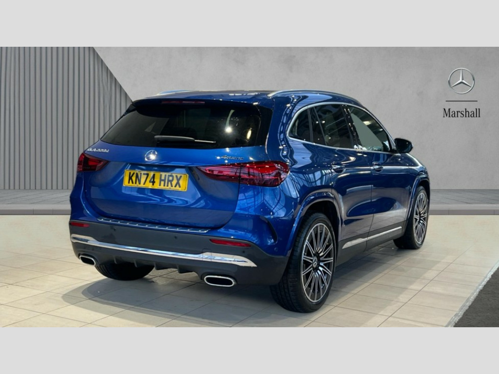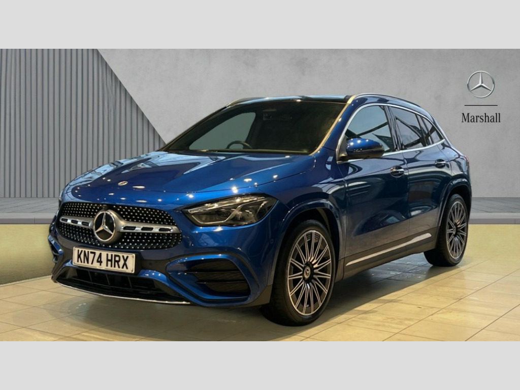 Mercedes-Benz GLA Class GLA 220d 4Matic AMG Line Premium Plus 5dr Auto 10.25 inch touchscreen central media display, 10.25" Digital instrument cluster display screen, Attention assist, Direct steering, DYNAMIC SELECT with a choice of driving modes (ECO, Comfort, Sport and Individual), Easy-pack tailgate, ECO start/stop function, Fingerprint scanner, Fluid level warning indicator for fuel, oil, coolant and washer fluid, Full color head up display, Hard-disk navigation, Hey Mercedes Voice activation, Lamp failure indicator, Lane keeping assist (LKA), Mercedes me connect including emergency call system, accident recovery, breakdown and maintenance management, Mercedes me remote services, Multi function trip computer, Outside temperature gauge, Owners manual and service booklet in English, Pre-installation of private car share, Radio aerial integrated into front and rear windshields, Service indicator (ASSYST), Smartphone integration with Apple CarPlay and Android auto, Traffic sign assist, Wireless charging, Lowered comfort suspension, Rear axle multi-link, Suspension with adaptive damping system, Bluetooth connectivity including audio streaming, DAB Digital radio, MBUX multimedia system, Mercedes-Benz (225w) sound system with 10 speakers, Adaptive brake lights, Adaptive full LED rear lights with automatic adjustment of light intensity to the surroundings, Aluminium roof rails, AMG front apron with front splitter in the colour of the vehicle with chrome trim element, AMG rear apron with visible tailpipe trim and chrome trim element, AMG specific/dual flow exhaust pipes in chrome (non-functional), Automatic headlamp activation, Beltline trim and window line trim strip in high gloss black, Black grained side sill trim with chrome inlay, Body coloured door handles with chrome insert for keyless entry, Car wash function, Cornering light function with activated high beam, Dark privacy glass from B-pillar backwards, Electric front windows, Electric rear windows, Electrically adjustable and heated door mirrors with integrated LED indicators, Exhaust system with 2 Visible tailpipe trim elements and rear apron with trim in chrome, Heat insulating dark tinted glass, Heated glass rear windscreen + timer control, Illuminated door sill panels with Mercedes-Benz lettering, Interior mirror with black reading lamps and frameless, LED daytime running lights, LED third brake light, Multibeam LED headlamps with adaptive highbeam assist plus, Panoramic sunroof, Rain sensor windscreen wipers, Rear fog lights, Rear side wing doors, Rear wiper, Wheel arch liners in the colour of the vehicle, 3 seat bench in 2nd row, 3 spoke flat bottom multifunction nappa leather steering wheel, 40:20:40 split folding rear seat backrests, Adjustable head restraints, Air conditioning - air vents with silver chrome surround, Air conditioning - Two zone thermotronic luxury automatic climate control with display, AMG floor mats, Auto Mercedes-Benz child seat recognition sensor, Black roof lining, Courtesy light in boot, Electrically adjustable front memory seats with four way lumbar support, Fluorescent jacket, Front centre armrest with stowage, Galvanished gear shift paddles on steering wheel in silver chrome, Heated front seats, Illuminated glovebox, Interior lighting - 64 colour Ambient lighting, Luggage net on driver/front passenger seat backrest, Manually height and reach adjustable steering column, Single front passenger seat, Sports pedals in brushed stainless steel with black rubber studs, Sports seats, Sports steering wheel, Stowage compartment in centre console, Stowage compartment with retractable cover, Sunvisors with illuminated vanity mirrors, Twin front cup holders, Two outer rear seat isofix and top tether child seat fixing points, Comfort seat pack - GLA Class, Driving assistance package - GLA, Interior lighting with light and sight pack - GLA, Keyless go comfort package - GLA, Mirror pack - GLA Class, Night package - GLA, Off road engineering pack - GLA, Parking package with 360-degree camera - GLA, USB package plus - GLA, 3 rear 3 point seatbelts, ABS with Brake Assist, Active bonnet pedestrain safety measure which detects an impact and raises bonnet by 65mm, Active brake assist includes forward collision warning system with autonomous braking, Adaptive brake assist with hold function and hill start assist, Black seatbelts, Bonnet with power domes, Brake pad wear warning indicator, Braking system with larger brake discs on the front axle, Childproof locks manually operated for rear doors and electrically operated for rear power windows, Crash responsive emergency lighting, Driver and passenger head and side airbags, Drivers knee airbag, Dual stage driver/passenger airbags, Electronic parking brake, ESP curve dynamic assist, ESP with ASR, Exit warning, Front and rear seatbelt reminder, Front brake callipers with Mercedes Benz logo lettering on front, Front brake discs internally ventilated and perforated, Front passenger seat occupancy sensor, Sports braking system, Tyre pressure monitoring system, Warning triangle and first aid kit, Window airbags, Alarm system with immobiliser and interior protection -Thatcham category 1, Guard 360 degree vehicle protection, Keyless Go starting function, Remote central locking and crash sensor with emergency opening function, Light longitudinal grain aluminium trim, 20" AMG multi spoke light alloy wheels aerodynamically optimised and painted in black with a high-sheen rim flangle RVT, Summer tyres, Tirefit tyre sealant kit