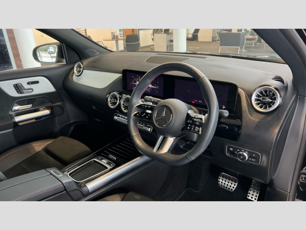 Mercedes-Benz GLA Class GLA 220d 4Matic AMG Line Premium Plus 5dr Auto 10.25 inch touchscreen central media display, 10.25" Digital instrument cluster display screen, Attention assist, Direct steering, DYNAMIC SELECT with a choice of driving modes (ECO, Comfort, Sport and Individual), Easy-pack tailgate, ECO start/stop function, Fingerprint scanner, Fluid level warning indicator for fuel, oil, coolant and washer fluid, Full color head up display, Hard-disk navigation, Hey Mercedes Voice activation, Lamp failure indicator, Lane keeping assist (LKA), Mercedes me connect including emergency call system, accident recovery, breakdown and maintenance management, Mercedes me remote services, Multi function trip computer, Outside temperature gauge, Owners manual and service booklet in English, Pre-installation of private car share, Radio aerial integrated into front and rear windshields, Service indicator (ASSYST), Smartphone integration with Apple CarPlay and Android auto, Traffic sign assist, Wireless charging, Lowered comfort suspension, Rear axle multi-link, Suspension with adaptive damping system, Bluetooth connectivity including audio streaming, DAB Digital radio, MBUX multimedia system, Mercedes-Benz (225w) sound system with 10 speakers, Adaptive brake lights, Adaptive full LED rear lights with automatic adjustment of light intensity to the surroundings, Aluminium roof rails, AMG front apron with front splitter in the colour of the vehicle with chrome trim element, AMG rear apron with visible tailpipe trim and chrome trim element, AMG specific/dual flow exhaust pipes in chrome (non-functional), Automatic headlamp activation, Beltline trim and window line trim strip in high gloss black, Black grained side sill trim with chrome inlay, Body coloured door handles with chrome insert for keyless entry, Car wash function, Cornering light function with activated high beam, Dark privacy glass from B-pillar backwards, Electric front windows, Electric rear windows, Electrically adjustable and heated door mirrors with integrated LED indicators, Exhaust system with 2 Visible tailpipe trim elements and rear apron with trim in chrome, Heat insulating dark tinted glass, Heated glass rear windscreen + timer control, Illuminated door sill panels with Mercedes-Benz lettering, Interior mirror with black reading lamps and frameless, LED daytime running lights, LED third brake light, Multibeam LED headlamps with adaptive highbeam assist plus, Panoramic sunroof, Rain sensor windscreen wipers, Rear fog lights, Rear side wing doors, Rear wiper, Wheel arch liners in the colour of the vehicle, 3 seat bench in 2nd row, 3 spoke flat bottom multifunction nappa leather steering wheel, 40:20:40 split folding rear seat backrests, Adjustable head restraints, Air conditioning - air vents with silver chrome surround, Air conditioning - Two zone thermotronic luxury automatic climate control with display, AMG floor mats, Auto Mercedes-Benz child seat recognition sensor, Black roof lining, Courtesy light in boot, Electrically adjustable front memory seats with four way lumbar support, Fluorescent jacket, Front centre armrest with stowage, Galvanished gear shift paddles on steering wheel in silver chrome, Heated front seats, Illuminated glovebox, Interior lighting - 64 colour Ambient lighting, Luggage net on driver/front passenger seat backrest, Manually height and reach adjustable steering column, Single front passenger seat, Sports pedals in brushed stainless steel with black rubber studs, Sports seats, Sports steering wheel, Stowage compartment in centre console, Stowage compartment with retractable cover, Sunvisors with illuminated vanity mirrors, Twin front cup holders, Two outer rear seat isofix and top tether child seat fixing points, Comfort seat pack - GLA Class, Driving assistance package - GLA, Interior lighting with light and sight pack - GLA, Keyless go comfort package - GLA, Mirror pack - GLA Class, Night package - GLA, Off road engineering pack - GLA, Parking package with 360-degree camera - GLA, USB package plus - GLA, 3 rear 3 point seatbelts, ABS with Brake Assist, Active bonnet pedestrain safety measure which detects an impact and raises bonnet by 65mm, Active brake assist includes forward collision warning system with autonomous braking, Adaptive brake assist with hold function and hill start assist, Black seatbelts, Bonnet with power domes, Brake pad wear warning indicator, Braking system with larger brake discs on the front axle, Childproof locks manually operated for rear doors and electrically operated for rear power windows, Crash responsive emergency lighting, Driver and passenger head and side airbags, Drivers knee airbag, Dual stage driver/passenger airbags, Electronic parking brake, ESP curve dynamic assist, ESP with ASR, Exit warning, Front and rear seatbelt reminder, Front brake callipers with Mercedes Benz logo lettering on front, Front brake discs internally ventilated and perforated, Front passenger seat occupancy sensor, Sports braking system, Tyre pressure monitoring system, Warning triangle and first aid kit, Window airbags, Alarm system with immobiliser and interior protection -Thatcham category 1, Guard 360 degree vehicle protection, Keyless Go starting function, Remote central locking and crash sensor with emergency opening function, Light longitudinal grain aluminium trim, 20" AMG multi spoke light alloy wheels aerodynamically optimised and painted in black with a high-sheen rim flangle RVT, Summer tyres, Tirefit tyre sealant kit