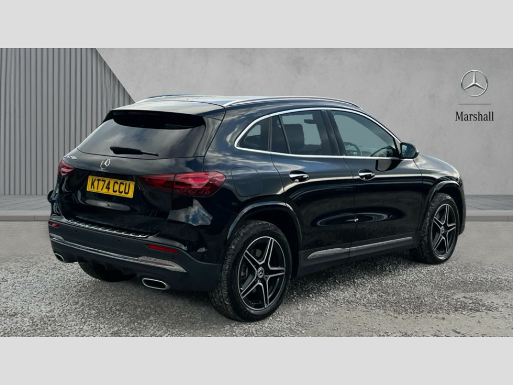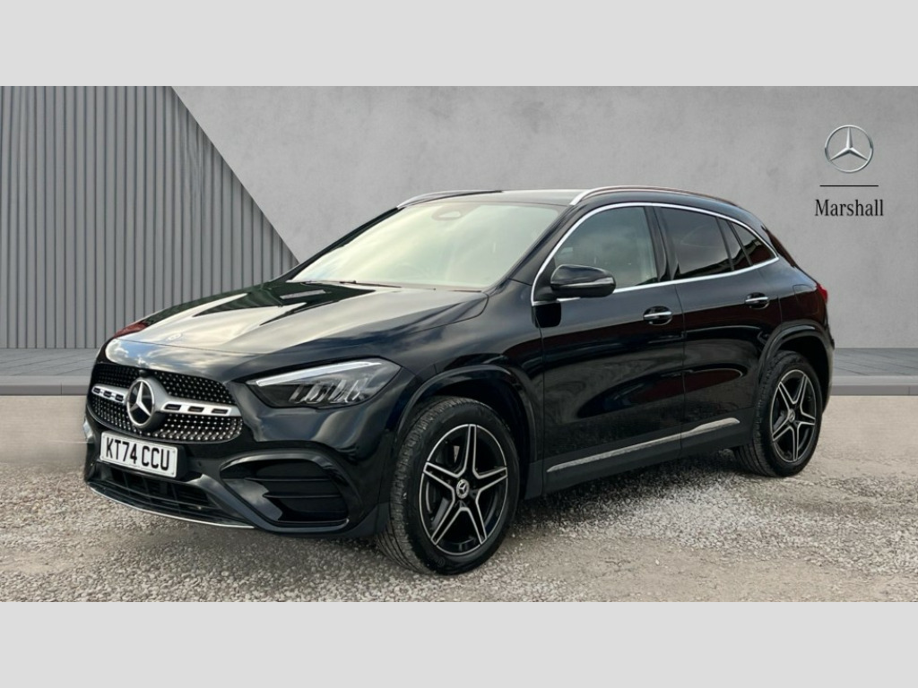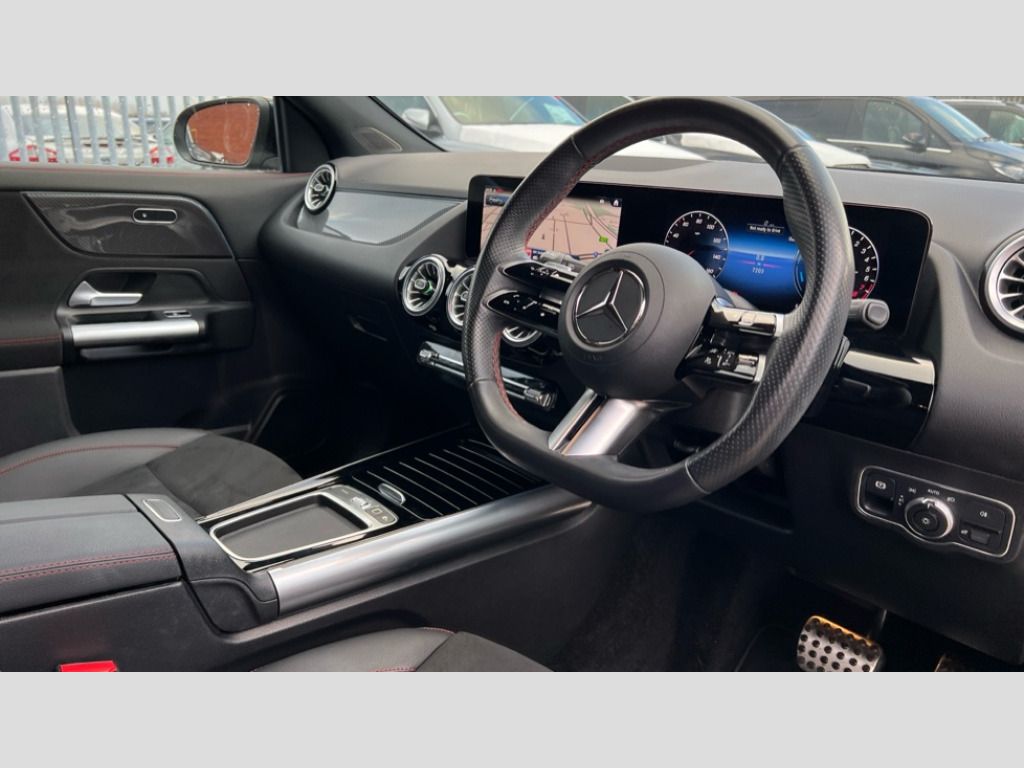 Mercedes-Benz GLA Class GLA 250e AMG Line Executive 5dr Auto 10.25 inch touchscreen central media display, 10.25" Digital instrument cluster display screen, Acoustic ambient protection, Attention assist, Blind spot assist, Direct steering, DYNAMIC SELECT with a choice of driving modes (ECO, Comfort, Sport and Individual), ECO start/stop function, Fingerprint scanner, Fluid level warning indicator for fuel, oil, coolant and washer fluid, Hard-disk navigation, Hey Mercedes Voice activation, Lamp failure indicator, Lane keeping assist (LKA), Mercedes me connect including emergency call system, accident recovery, breakdown and maintenance management, Mercedes me remote services, Multi function trip computer, Outside temperature gauge, Owners manual and service booklet in English, Pre-installation of private car share, Radio aerial integrated into front and rear windshields, Remote and charging services plus, Service indicator (ASSYST), Smartphone integration with Apple CarPlay and Android auto, Speed limit assist, Wireless charging, 4m charging cable for wall box/public charging stations(mode 3), Charging system - AC charging system rated at 11kW, Charging system - DC charging system rated at 22kW, Comfort suspension, Rear axle torsion beam, Bluetooth connectivity including audio streaming, DAB Digital radio, MBUX multimedia system, Mercedes Benz sound system (100 W) with 6 speakers, Adaptive brake lights, Adaptive highbeam assist, Aluminium roof rails, AMG front apron with front splitter in the colour of the vehicle with chrome trim element, AMG rear apron with visible tailpipe trim and chrome trim element, AMG specific/dual flow exhaust pipes in chrome (non-functional), Automatic headlamp activation, Beltline trim and window line trim strip in high gloss aluminium, Black grained side sill trim with chrome inlay, Car wash function, Dark privacy glass from B-pillar backwards, Electric front windows, Electric rear windows, Electrically adjustable and heated door mirrors with integrated LED indicators, Exhaust system with 2 Visible tailpipe trim elements and rear apron with trim in chrome, Heat insulating dark tinted glass, Heated glass rear windscreen + timer control, Interior mirror with black reading lamps and frameless, LED high performance headlamps with integrated LED daytime running lights, LED tail lights, LED third brake light, Rain sensor windscreen wipers, Rear fog lights, Rear side wing doors, Rear wiper, Wheel arch liners in the colour of the vehicle, 3 seat bench in 2nd row, 3 spoke flat bottom multifunction nappa leather steering wheel, 4 way lumbar support, 40:20:40 split folding rear seat backrests, Adjustable head restraints, Air conditioning - air vents with silver chrome surround, Air conditioning - One zone THERMATIC automatic climate control with automatically controlled air distribution, AMG floor mats, Artico man-made leather/Microcut microfibre upholstery with red contrast stitching, Auto Mercedes-Benz child seat recognition sensor, Black roof lining, Charging socket, Courtesy light in boot, Fluorescent jacket, Front centre armrest with stowage, Galvanished gear shift paddles on steering wheel in silver chrome, Heated front seats, Illuminated glovebox, Interior lighting - 64 colour Ambient lighting, Luggage net on driver/front passenger seat backrest, Manually height and reach adjustable steering column, Pre-entry climate control, Single front passenger seat, Sports pedals in brushed stainless steel with black rubber studs, Sports seats, Sports steering wheel, Stowage compartment in centre console, Stowage compartment with retractable cover, Sunvisors with illuminated vanity mirrors, Twin front cup holders, Two outer rear seat isofix and top tether child seat fixing points, Comfort seat pack - GLA Class, Interior lighting with light and sight pack - GLA, Keyless go comfort package - GLA, Mirror pack - GLA Class, Parking package with reversing camera - GLA, USB package plus - GLA, Winter package - GLA, 3 rear 3 point seatbelts, ABS with Brake Assist, Active bonnet pedestrain safety measure which detects an impact and raises bonnet by 65mm, Active brake assist includes forward collision warning system with autonomous braking, Adaptive brake assist with hold function and hill start assist, Black seatbelts, Bonnet with power domes, Brake pad wear warning indicator, Childproof locks manually operated for rear doors and electrically operated for rear power windows, Crash responsive emergency lighting, Driver and passenger head and side airbags, Drivers knee airbag, Dual stage driver/passenger airbags, Electronic parking brake, ESP curve dynamic assist, ESP with ASR, Front and rear seatbelt reminder, Front brake callipers with Mercedes Benz logo lettering on front, Front brake discs internally ventilated and perforated, Front passenger seat occupancy sensor, Radar-based recuperation, Sports braking system, Tyre pressure monitoring system, Warning triangle and first aid kit, Window airbags, Alarm system with immobiliser and interior protection -Thatcham category 1, Guard 360 degree vehicle protection, Remote central locking and crash sensor with emergency opening function, Light longitudinal grain aluminium trim, 19" AMG 5 twin spoke light alloy wheels aerodynamically optimised,painted in high-gloss black and with a high-sheen finish RTG, Summer tyres, Tirefit tyre sealant kit