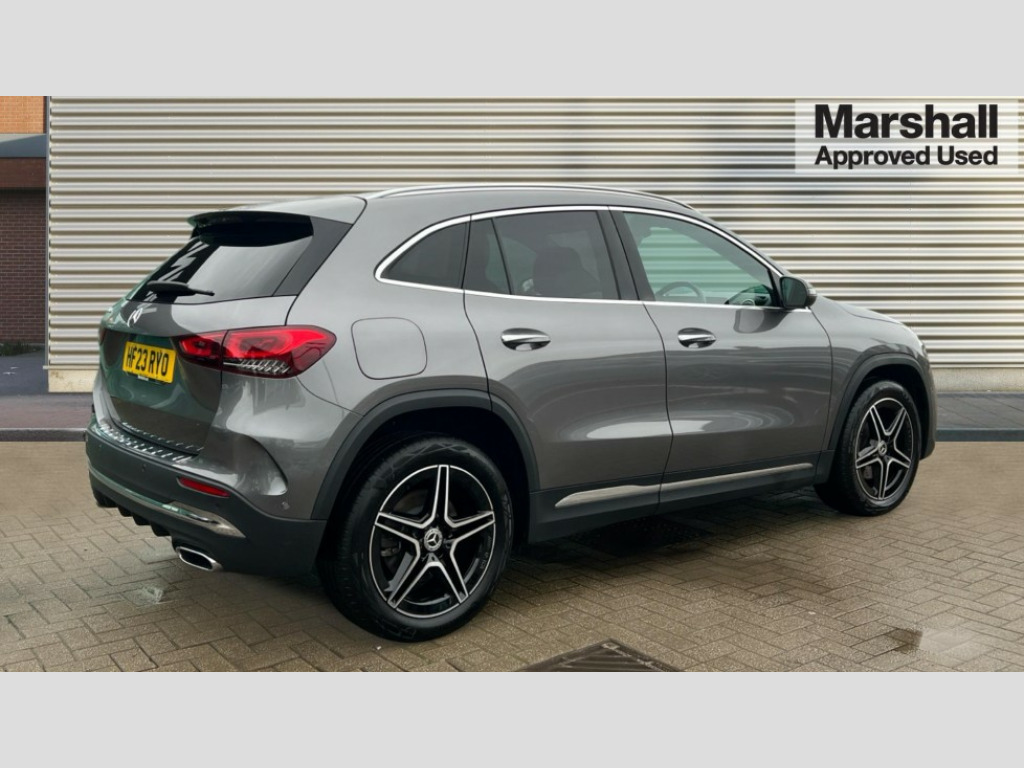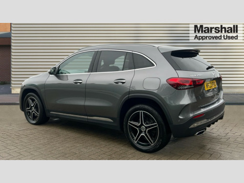 Mercedes-Benz GLA Class GLA 250e AMG Line Premium 5dr Auto 10.25 inch touchscreen central media display, 10.25" Digital instrument cluster display screen, Acoustic ambient protection, Active lane keeping assist, Attention assist, Cruise control + speed limiter, Direct steering, DYNAMIC SELECT with a choice of driving modes (ECO, Comfort, Sport and Individual), ECO start/stop function, Fluid level warning indicator for fuel, oil, coolant and washer fluid, Hard-disk navigation, Hey Mercedes Voice activation, Lamp failure indicator, Mercedes me connect including emergency call system, accident recovery, breakdown and maintenance management, Mercedes me remote services, Multi function trip computer, Outside temperature gauge, Owners manual and service booklet in English, Pre-installation of private car share, Radio aerial integrated into front and rear windshields, Service indicator (ASSYST), Smartphone integration with Apple CarPlay and Android auto, Speed limit assist, Status display for rear seat belts in instrument cluster, 4m charging cable for wall box/public charging stations(mode 3), Charging system - AC charging system rated at 7.4 kW, Comfort suspension, Rear axle multi-link, 2 USB ports (type C) in rear stowage compartment and one in front of center console, Bluetooth connectivity including audio streaming, DAB Digital radio, MBUX multimedia system, Media interface, Mercedes-Benz (225w) sound system with 10 speakers, Adaptive brake lights, Aerial for GPS, Aluminium roof rails, AMG front and rear apron, AMG specific/dual flow exhaust pipes in chrome (non-functional), Automatic headlamp activation, Beltline strips and weather strip in chrome, Black grained claddings with chrome parts, Body colour bumpers, Body colour door mirrors, Body coloured door handles with chrome insert for keyless entry, Car wash function, Dark privacy glass from B-pillar backwards, Electric front windows, Electric rear windows, Electrically adjustable and heated door mirrors with integrated LED indicators, EQ badging, Front bumper with underride guard in high gloss chrome, Heat insulating dark tinted glass, Heated glass rear windscreen + timer control, Heated windscreen wash system, Interior mirror with black reading lamps and frameless, LED high performance headlamps with integrated LED daytime running lights, LED tail lights in two piece design, LED third brake light, Matt titanium grey front and rear apron trim, Rain sensor windscreen wipers, Rear fog lights, Rear side wing doors, Rear wiper, Roof spoiler, Single lamella raditor grille with chrome dotted diamond grille and inlay, 12V power socket in centre console, 3 seat bench in 2nd row, 3 spoke multifunction sports steering wheel in nappa leather with flattened bottom and perforated grip area, 40:20:40 split folding rear seat backrests, Adjustable head restraints, Air conditioning - Two zone thermotronic luxury automatic climate control with display, Ambient lighting in front headrests, AMG floor mats in black with AMG lettering in front, Artico man-made leather/Microcut microfibre upholstery with red contrast stitching, Auto Mercedes-Benz child seat recognition sensor, Black roof lining, Brushed door pulls in silver chrome, Charging socket, Courtesy light in boot, Floor mats in velour, Front centre armrest with stowage, Galvanished gear shift paddles on steering wheel, Heated front seats, illuminated door sills with changeable cover, Illuminated glovebox, Interior lighting - 64 colour Ambient lighting, Leather trimmed gearknob, Luggage net on driver/front passenger seat backrest, Manually height and reach adjustable steering column, Multi-gesture touchpad control on center console, Pre-entry climate control, Single front passenger seat, Sports pedals in brushed stainless steel with black rubber studs, Sports seats, Stowage compartment in centre console, Stowage compartment with retractable cover, Sunvisors with illuminated vanity mirrors, Twin front cup holders, Two outer rear seat isofix and top tether child seat fixing points, AMG body styling pack - GLA, Comfort seat pack - GLA Class, Interior lighting with light and sight pack - GLA, Keyless go comfort package - GLA, Load compartment pack - GLA, Mirror pack - GLA Class, Parking pack - GLA, 3 rear 3 point seatbelts, ABS with Brake Assist, Active bonnet pedestrain safety measure which detects an impact and raises bonnet by 65mm, Active brake assist includes forward collision warning system with autonomous braking, Adaptive brake assist with hold function and hill start assist, Bonnet with power domes, Brake pad wear warning indicator, Childproof locks manually operated for rear doors and electrically operated for rear power windows, Crash responsive emergency lighting, Driver and passenger head and side airbags, Drivers knee airbag, Dual stage driver/passenger airbags, Electronic parking brake, ESP curve dynamic assist, ESP with ASR, Front and rear seatbelt reminder, Front brake callipers with Mercedes Benz logo lettering on front, Front brake discs internally ventilated and perforated, Front passenger seat occupancy sensor, Radar-based recuperation, Sports braking system, Tyre pressure monitoring system, Warning triangle and first aid kit, Window airbags, Alarm system with immobiliser and interior protection -Thatcham category 1, Keyless entry lock/unlock, Keyless Go starting function, Remote central locking and crash sensor with emergency opening function, Urban guard vehicle protection, Vehicle key with decorative surround in chrome, Carbon structure trim, Chrome air vent surrounds, 19" AMG 5 twin spoke light alloy wheels painted in high gloss black with high sheen finish, Summer tyres, Tirefit tyre sealant kit
