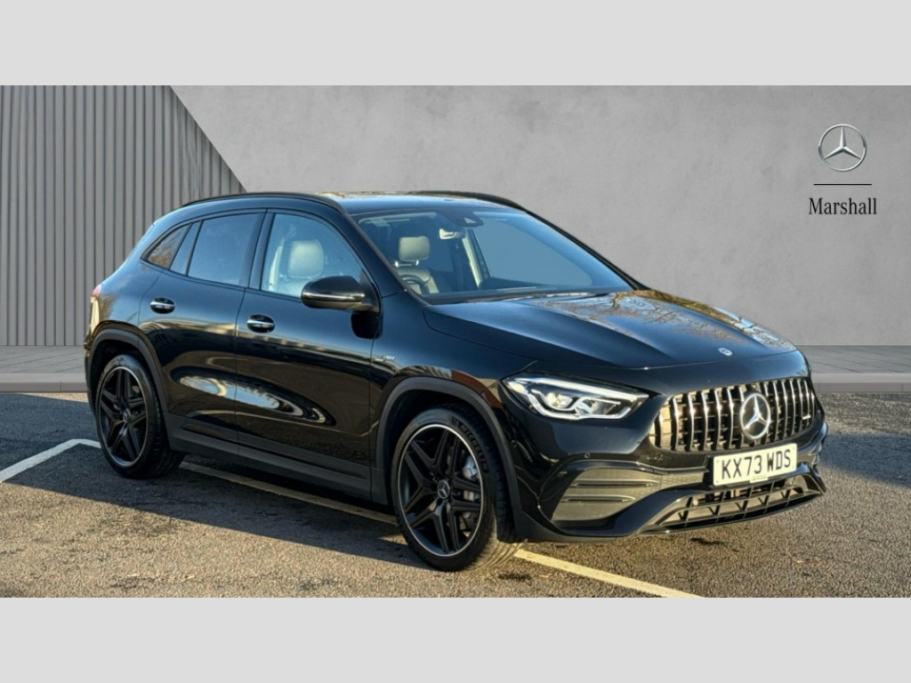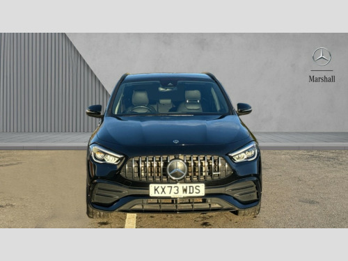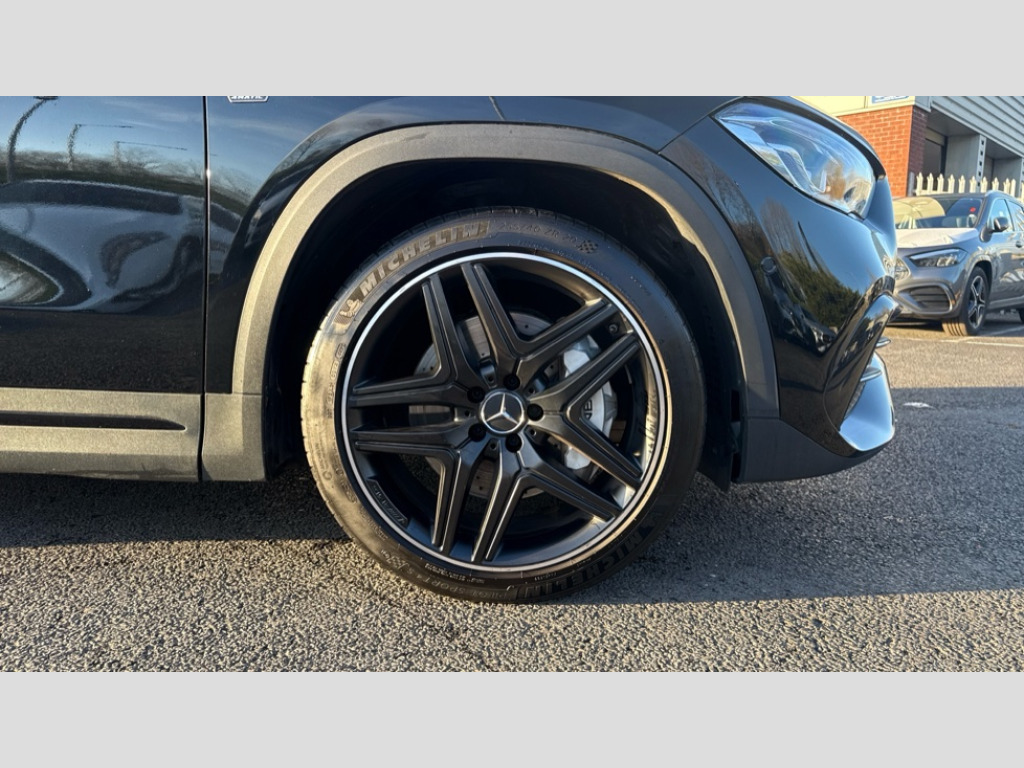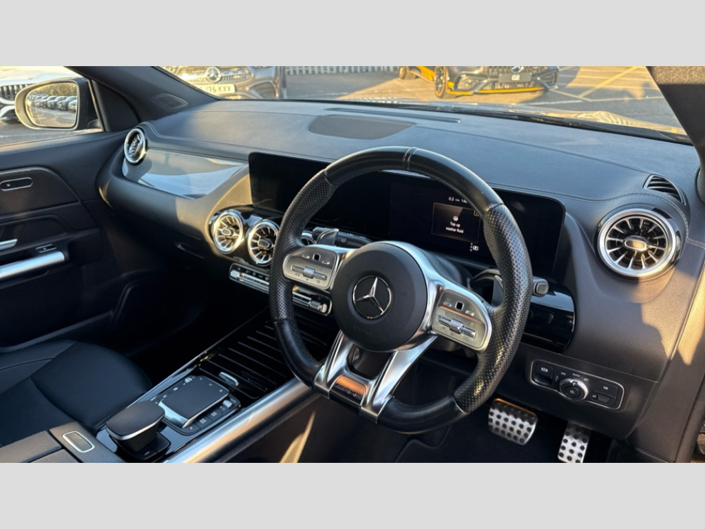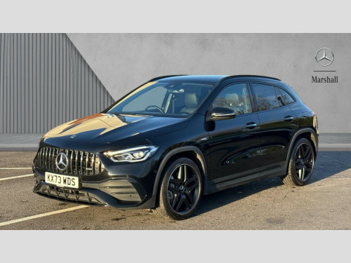 Mercedes-Benz GLA Class GLA 35 4Matic Premium 5dr Auto 10.25 inch touchscreen central media display, 10.25" Digital instrument cluster display screen, Active lane keeping assist, Attention assist, Cruise control + speed limiter, Direct steering, DYNAMIC SELECT with a choice of driving modes (Comfort, Sport, Sport +, Slippery and Individual), ECO start/stop function, Fluid level warning indicator for fuel, oil, coolant and washer fluid, Hard-disk navigation, Hey Mercedes Voice activation, Instrument cluster - AMG sporty menu with gear indicator, warm up menu, set up menu, plus G meter, Race timer and engine data, Lamp failure indicator, Mercedes me connect including emergency call system, accident recovery, breakdown and maintenance management, Mercedes me remote services, Multi function trip computer, Outside temperature gauge, Owners manual and service booklet in English, Pre-installation of private car share, Radio aerial integrated into front and rear windshields, Service indicator (ASSYST), Smartphone integration with Apple CarPlay and Android auto, Speed limit assist, Status display for rear seat belts in instrument cluster, Rear axle multi-link, Suspension with adaptive damping system, 2 USB ports (type C) in rear stowage compartment and one in front of center console, Bluetooth connectivity including audio streaming, DAB Digital radio, MBUX multimedia system with AMG specific display designs, AMG start up logo, visualisation of AMG drive programs, vehicle and engine data, Media interface, Mercedes-Benz (225w) sound system with 10 speakers, Adaptive brake lights, Aerial for GPS, AMG body styling - Front apron with air deflectors on the outer air intakes, AMG body styling - larger air intake in black, AMG body styling - Rear air outtakes, AMG exhaust system with flap control dependent on drive program, AMG real performance exhaust sound system, AMG specific/dual flow exhaust pipes in chrome (non-functional), Automatic headlamp activation, Body colour bumpers, Body coloured door handles with chrome insert for keyless entry, Car wash function, Dark privacy glass from B-pillar backwards, Electric front windows, Electric rear windows, Electrically adjustable and heated door mirrors with integrated LED indicators, Front bumper with underride guard in high gloss chrome, Front wings with TURBO 4MATIC lettering, Heated glass rear windscreen + timer control, Heated windscreen wash system, Interior mirror with black reading lamps and frameless, LED high performance headlamps with integrated LED daytime running lights, LED tail lights in two piece design, LED third brake light, Pre-installation for trailer coupling, Rain sensor windscreen wipers, Rear fog lights, Rear side wing doors, Rear wiper, Roof spoiler, Signature AMG radiator grille, 12V power socket in centre console, 3 seat bench in 2nd row, 3 spoke AMG flat bottom performance sports steering wheel in black nappa leather with perforated grip area, 12 o'clock and silver chrome AMG lettering, 40:20:40 split folding rear seat backrests, Adjustable head restraints, Air conditioning - Two zone thermotronic luxury automatic climate control with display, Ambient lighting in front headrests, AMG floor mats in black with AMG lettering and border in nubuck leather look finish, AMG illuminated door sills with changeable cover, Auto Mercedes-Benz child seat recognition sensor, Black roof lining, Centre console with AMG specific hand comforter and button to control manual transmission and 3 stage ESP, Courtesy light in boot, Floor mats in velour, Front centre armrest with stowage, Galvanished gear shift paddles on steering wheel, Heated front seats, Illuminated glovebox, Interior lighting - 64 colour Ambient lighting, Leather trimmed gearknob, Luggage net on driver/front passenger seat backrest, Manually height and reach adjustable steering column, Multi-gesture touchpad control on center console, Single front passenger seat, Sports pedals in brushed stainless steel with black rubber studs, Sports seats, Stowage compartment in centre console, Stowage compartment with retractable cover, Sunvisors with illuminated vanity mirrors, Twin front cup holders, Two outer rear seat isofix and top tether child seat fixing points, AMG Night package - GLA, Comfort seat pack - GLA Class, Interior lighting with light and sight pack - GLA, Keyless go comfort package - GLA, Load compartment pack - GLA, Mirror pack - GLA Class, Parking pack - GLA, 3 rear 3 point seatbelts, ABS with Brake Assist, Active bonnet pedestrain safety measure which detects an impact and raises bonnet by 65mm, Active brake assist includes forward collision warning system with autonomous braking, Adaptive brake assist with hold function and hill start assist, AMG high performance brake system with silver brake callipers and black AMG lettering at the front, ventilated and perforated brake disc, Bonnet with power domes, Brake pad wear warning indicator, Childproof locks manually operated for rear doors and electrically operated for rear power windows, Crash responsive emergency lighting, Driver and passenger head and side airbags, Drivers knee airbag, Dual stage driver/passenger airbags, Electronic parking brake, ESP curve dynamic assist, ESP with ASR, Front and rear seatbelt reminder, Front passenger seat occupancy sensor, Tyre pressure monitoring system, Warning triangle and first aid kit, Window airbags, Alarm system with immobiliser and interior protection -Thatcham category 1, Keyless entry lock/unlock, Keyless Go starting function, Remote central locking and crash sensor with emergency opening function, Urban guard vehicle protection, Vehicle key with decorative surround in chrome, Carbon structure trim, Chrome air vent surrounds, 20" AMG 5 twin spoke light alloy wheels painted in matt black with high sheen rim flange, Summer tyres, Tirefit tyre sealant kit, Wheel arches wider for AMG wheels