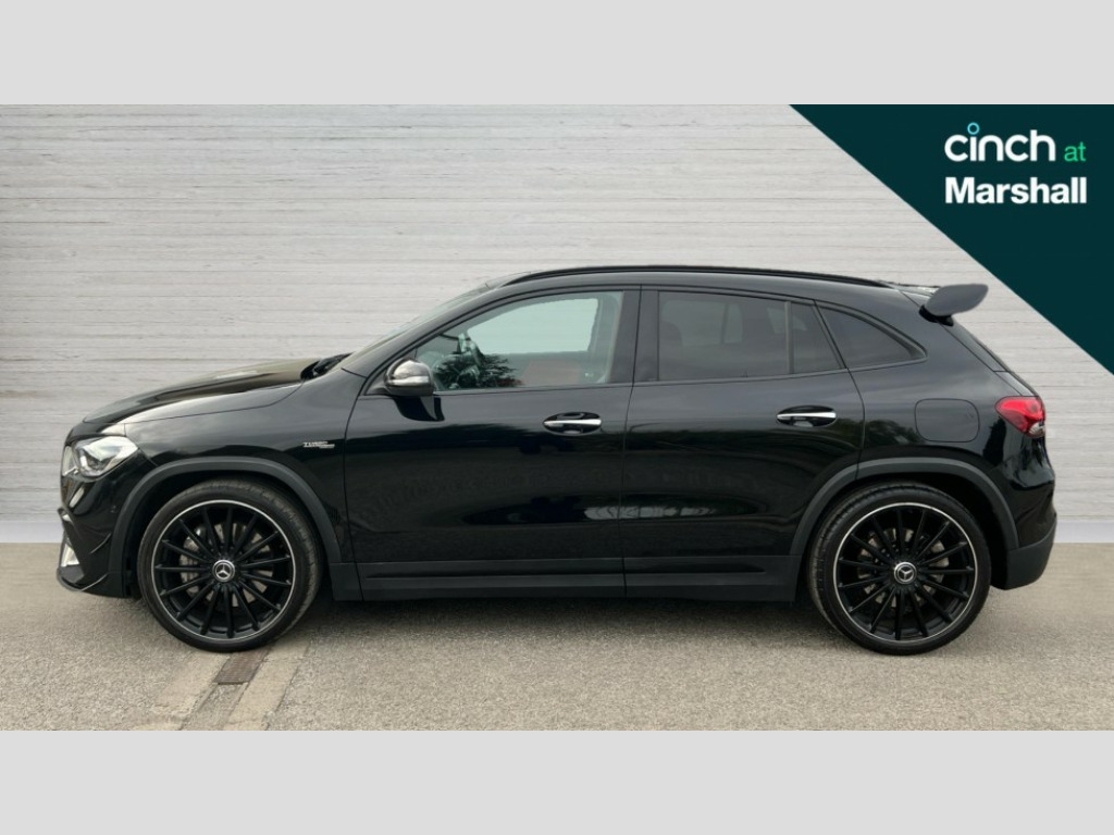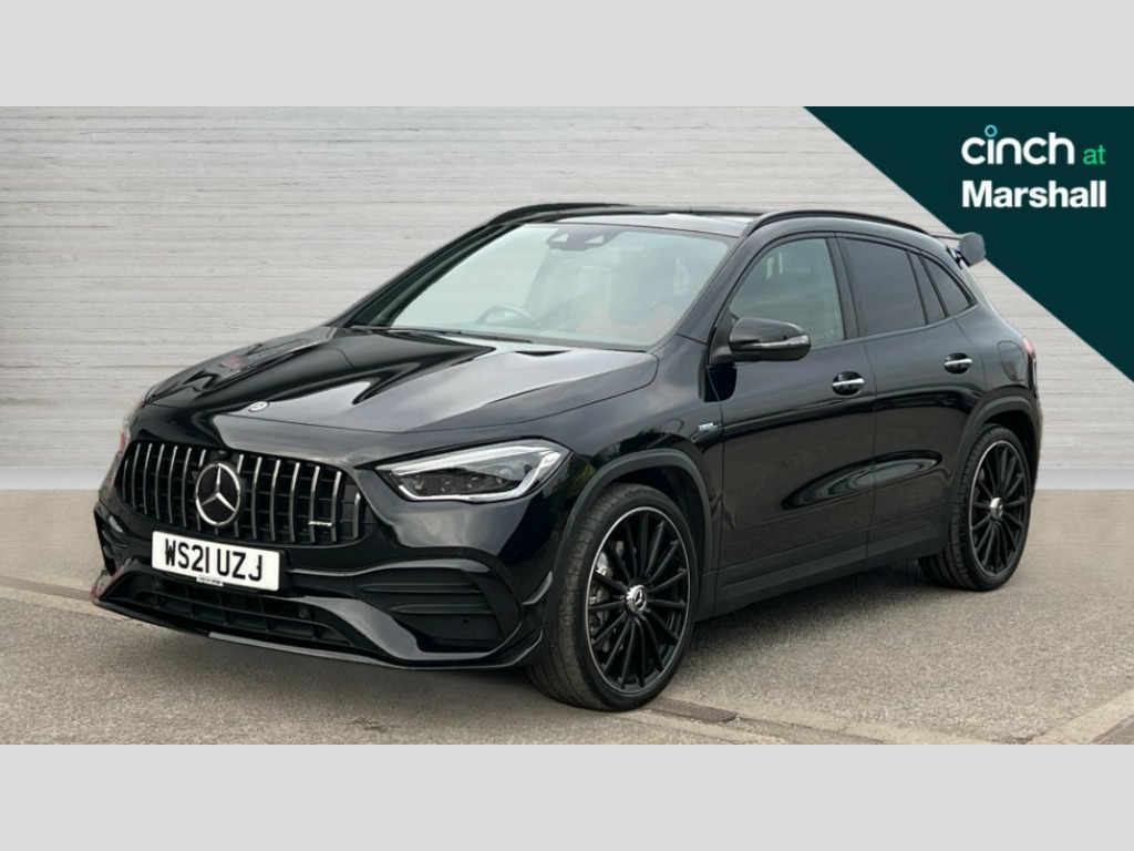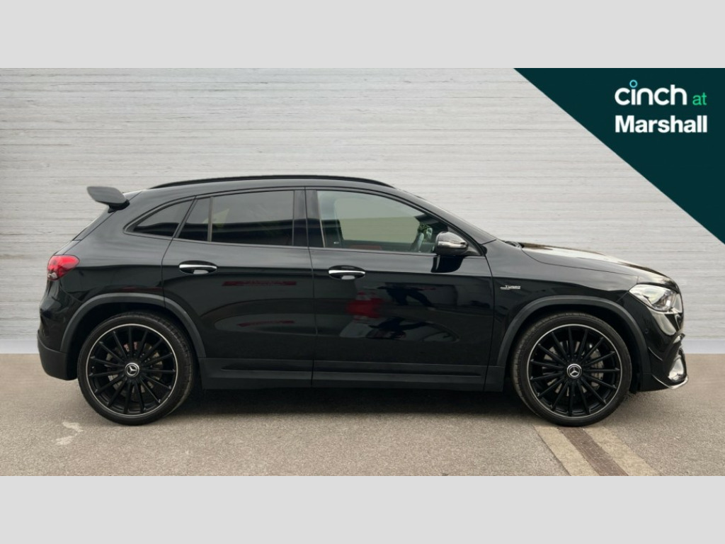 Mercedes-Benz GLA Class GLA 35 4Matic Premium Plus 5dr Auto 10.25 inch touchscreen central media display, 10.25" Digital instrument cluster display screen, Active lane keeping assist, Attention assist, Augmented reality navigation, DYNAMIC SELECT with a choice of driving modes (Comfort, Sport, Sport +, Slippery and Individual), Easy-pack tailgate, ECO start/stop function, Fluid level warning indicator for fuel, oil, coolant and washer fluid, Hard-disk navigation, Hey Mercedes Voice activation, Instrument cluster - AMG sporty menu with gear indicator, warm up menu, set up menu, plus G meter, Race timer and engine data, Lamp failure indicator, Mercedes me connect including emergency call system, accident recovery, breakdown and maintenance management, Mercedes me remote services, Multi function trip computer, Outside temperature gauge, Owners manual and service booklet in English, Pre-installation of private car share, Radio aerial integrated into front and rear windshields, Service indicator (ASSYST), Smartphone integration with Apple CarPlay and Android auto, Speed sensitive power steering, Status display for rear seat belts in instrument cluster, Traffic sign assist, Wireless charging, Rear axle multi-link, Suspension with adaptive damping system, 2 USB ports (type C) in rear stowage compartment and one in front of center console, Bluetooth connectivity including audio streaming, Burmester surround sound system, DAB Digital radio, MBUX multimedia system with AMG specific display designs, programs and engine data, Media interface, Adaptive brake lights, Aerial for GPS, AMG body styling - Front apron with air deflectors on the outer air intakes, AMG body styling - larger air intake in black, AMG body styling - Rear air outtakes, AMG exhaust system with flap control dependent on drive program, AMG real performance exhaust sound system, AMG specific/dual flow exhaust pipes in chrome (non-functional), Automatic headlamp activation, Body colour bumpers, Body coloured door handles with chrome insert for keyless entry, Car wash function, Dark privacy glass from B-pillar backwards, Electric front windows, Electric rear windows, Electrically adjustable and heated door mirrors with integrated LED indicators, Front wings with TURBO 4MATIC lettering, Heated glass rear windscreen + timer control, Heated windscreen wash system, Interior mirror with black reading lamps and frameless, LED tail lights in two piece design, LED third brake light, Multibeam LED headlamps with adaptive highbeam assist plus, Panoramic sunroof, Rain sensor windscreen wipers, Rear fog lights, Roof spoiler, Signature AMG radiator grille, 12V power socket in centre console, 3 spoke AMG flat bottom performance sports steering wheel in black nappa leather with perforated grip area, 12 o'clock and silver chrome AMG lettering, 40:20:40 split folding rear seat backrests, Adjustable head restraints, Air conditioning - Two zone thermotronic luxury automatic climate control with display, Ambient lighting in front headrests, AMG floor mats in black with AMG lettering and border in nubuck leather look finish, AMG illuminated door sills with changeable cover, Auto Mercedes-Benz child seat recognition sensor, Black roof lining, Centre console with AMG specific hand comforter and button to control manual transmission and 3 stage ESP, Courtesy light in boot, Electrically adjustable front memory seats with four way lumbar support, Front centre armrest with stowage, Galvanished gear shift paddles on steering wheel, Heated front seats, Illuminated glovebox, Interior lighting - 64 colour Ambient lighting, Leather trimmed gearknob, Luggage net on driver/front passenger seat backrest, Manually height and reach adjustable steering column, Multi-gesture touchpad control on center console, Net in front passenger footwell, Seat cushion angle adjustment, Seat cushion depth adjustment for improved seating, Sports pedals in brushed stainless steel with black rubber studs, Sports seats, Stowage compartment in centre console, Stowage compartment with retractable cover, Sunvisors with illuminated vanity mirrors, Twin front cup holders, Two outer rear seat isofix and top tether child seat fixing points, AMG Aerodynamics package - GLA, AMG Night package - GLA, Interior lighting with light and sight pack - GLA, Load compartment pack - GLA, Mirror pack - GLA Class, Parking pack - GLA, 3 rear 3 point seatbelts, ABS with Brake Assist, Active bonnet pedestrain safety measure which detects an impact and raises bonnet by 65mm, Active brake assist includes forward collision warning system with autonomous braking, Adaptive brake assist with hold function and hill start assist, AMG high performance brake system with silver brake callipers and black AMG lettering at the front, ventilated and perforated brake disc, Bonnet with power domes, Brake pad wear warning indicator, Childproof locks manually operated for rear doors and electrically operated for rear power windows, Crash responsive emergency lighting, Driver and passenger head and side airbags, Drivers knee airbag, Dual stage driver/passenger airbags, Electronic parking brake, ESP curve dynamic assist, ESP with ASR, Front and rear seatbelt reminder, Front passenger seat occupancy sensor, Tyre pressure monitoring system, Warning triangle and first aid kit, Window airbags, Alarm system with immobiliser and interior protection -Thatcham category 1, Keyless Go Lock/Unlock function, Keyless Go starting function, Remote central locking and crash sensor with emergency opening function, Vehicle key with decorative surround in chrome, Carbon structure trim, Chrome air vent surrounds, 21" AMG multi spoke light alloy wheels painted in matt black with high sheen rim flange, Summer tyres, Tirefit tyre sealant kit