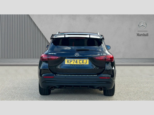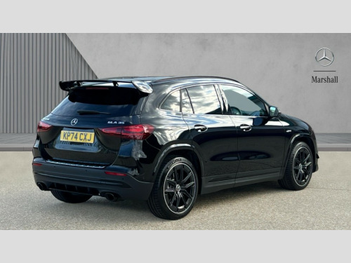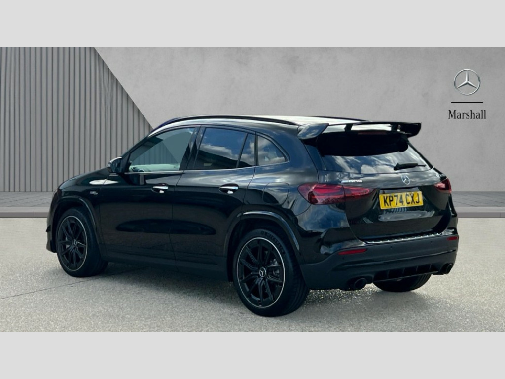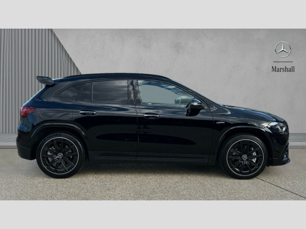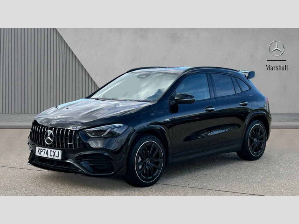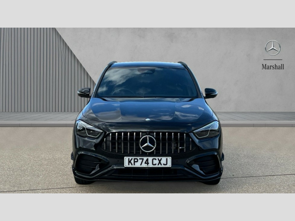 Mercedes-Benz GLA Class GLA 35 4Matic Premium Plus 5dr Auto 10.25 inch touchscreen central media display, 10.25" Digital instrument cluster display screen, AMG DYNAMIC SELECT with driving programs (Slippery, Comfort, Sport, Sport+, Individual and Race) including drift mode via steering wheel shift paddles, AMG speed sensitive steering with two sets of steering characteristics, Attention assist, Cruise control + speed limiter, Direct steering, Easy-pack tailgate, ECO start/stop function, Fingerprint scanner, Fluid level warning indicator for fuel, oil, coolant and washer fluid, Full color head up display, Hard-disk navigation, Hey Mercedes Voice activation, Lamp failure indicator, Lane keeping assist (LKA), MBUX augmented reality for navigation, Mercedes me connect including emergency call system, accident recovery, breakdown and maintenance management, Mercedes me remote services, Multi function trip computer, Outside temperature gauge, Owners manual and service booklet in English, Pre-installation of private car share, Radio aerial integrated into front and rear windshields, Service indicator (ASSYST), Smartphone integration with Apple CarPlay and Android auto, Traffic sign assist, Wireless charging, AMG performance 4MATIC+ with torque control, AMG Ride Control suspension, Rear axle multi-link, Suspension with adaptive damping system, Bluetooth connectivity including audio streaming, DAB Digital radio, MBUX multimedia system, Mercedes-Benz (225w) sound system with 10 speakers, Adaptive brake lights, Adaptive full LED rear lights with automatic adjustment of light intensity to the surroundings, AMG body styling - Front apron with air deflectors on the outer air intakes, AMG emblem on the front instead of the "Mercedes-Benz" laurel wreath badge, AMG Rear apron with specific diffuser look with four vertical fins and two round chrome plated tailpipe trim elements with a diameter of 90 mm, AMG sports exhaust system with two round tailpipes attached to the rear apron, Automatic headlamp activation, Beltline strips in High gloss Black, Body colour bumpers, Body coloured door handles with chrome insert for keyless entry, Car wash function, Cornering light function with activated high beam, Dark privacy glass from B-pillar backwards, Electric front windows, Electric rear windows, Electrically adjustable and heated door mirrors with integrated LED indicators, Front wings with TURBO 4MATIC lettering, Heated glass rear windscreen + timer control, Interior mirror with black reading lamps and frameless, LED daytime running lights, LED third brake light, Multibeam LED headlamps with adaptive highbeam assist plus, Panoramic sunroof, Rain sensor windscreen wipers, Rear fog lights, Rear side wing doors, Rear wiper, Roof spoiler, Window line in high gloss black, 3 seat bench in 2nd row, 40:20:40 split folding rear seat backrests, Adjustable head restraints, Air conditioning - air vents with silver chrome surround, Air conditioning - Two zone thermotronic luxury automatic climate control with display, Aluminium geashift paddles in silver colour, AMG floor mats with AMG lettering in front, AMG illuminated door sills with changeable cover, AMG Performance steering wheel in nappa leather, Auto Mercedes-Benz child seat recognition sensor, Black roof lining, Courtesy light in boot, Electrically adjustable front memory seats with four way lumbar support, Front centre armrest with stowage, Heated front seats, Illuminated glovebox, Interior lighting - 64 colour Ambient lighting, Luggage net on driver/front passenger seat backrest, Manually height and reach adjustable steering column, Rear armrest with two integral cup holders for drinks, Single front passenger seat, Sport seats with fixed head restraints, Sports pedals in brushed stainless steel with black rubber studs, Stowage compartment in centre console, Stowage compartment with retractable cover, Sunvisors with illuminated vanity mirrors, Topstitching on the dashboard and beltline significantly enhance the high quality impression, Twin front cup holders, Two outer rear seat isofix and top tether child seat fixing points, AMG Aerodynamics package - GLA, AMG Night package - GLA, Comfort seat pack - GLA Class, Interior lighting with light and sight pack - GLA, Keyless go comfort package - GLA, Mirror pack - GLA Class, Parking package with 360-degree camera - GLA, USB package plus - GLA, 3 rear 3 point seatbelts, ABS with Brake Assist, Active bonnet pedestrain safety measure which detects an impact and raises bonnet by 65mm, Adaptive brake assist with hold function and hill start assist, AMG high performance brake system with red painted brake callipers and black AMG lettering at the front, ventilated and perforated brake discs, Black seatbelts, Brake pad wear warning indicator, Childproof locks manually operated for rear doors and electrically operated for rear power windows, Crash responsive emergency lighting, Driver and passenger head and side airbags, Drivers knee airbag, Dual stage driver/passenger airbags, Electronic parking brake, ESP curve dynamic assist, ESP with ASR, Exit warning, Front and rear seatbelt reminder, Front passenger seat occupancy sensor, Tyre pressure monitoring system, Warning triangle and first aid kit, Window airbags, Alarm system with immobiliser and interior protection -Thatcham category 1, Guard 360 degree vehicle protection, Keyless Go starting function, Remote central locking and crash sensor with emergency opening function, Light longitudinal grain aluminium trim, 20" AMG 5 twin spoke light alloy wheels aerodynamically optimised and painted in matt black with high-sheen rim flange RTW, Summer tyres, Tirefit tyre sealant kit, Wheel arches wider for AMG wheels