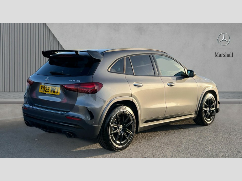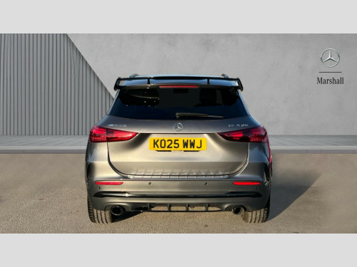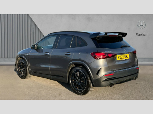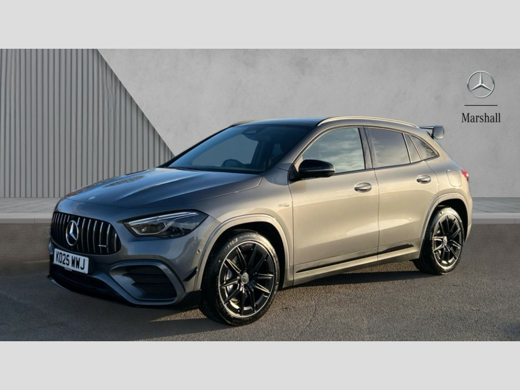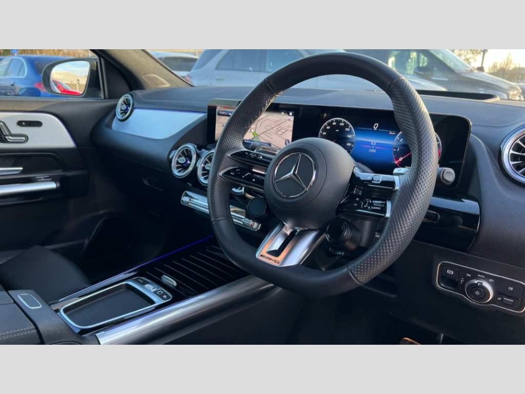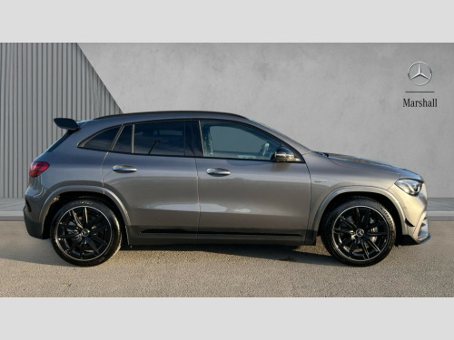 Mercedes-Benz GLA Class GLA 35 4Matic Premium Plus 5dr Auto 10.25 inch touchscreen central media display, 10.25" Digital instrument cluster display screen, AMG DYNAMIC SELECT with driving programs (Slippery, Comfort, Sport, Sport+, Individual and Race) including drift mode via steering wheel shift paddles, AMG speed sensitive steering with two sets of steering characteristics, Attention assist, Cruise control + speed limiter, Direct steering, ECO start/stop function, Fluid level warning indicator for fuel, oil, coolant and washer fluid, Full color head up display, Hard-disk navigation, Hey Mercedes Voice activation, Lamp failure indicator, Lane keeping assist (LKA), MBUX augmented reality for navigation, Mercedes me connect including emergency call system, accident recovery, breakdown and maintenance management, Mercedes me remote services, Multi function trip computer, Outside temperature gauge, Owners manual and service booklet in English, Pre-installation of private car share, Radio aerial integrated into front and rear windshields, Service indicator (ASSYST), Smartphone integration with Apple CarPlay and Android auto, Traffic sign assist, Wireless charging, AMG performance 4MATIC+ with torque control, AMG Ride Control suspension, Rear axle multi-link, Suspension with adaptive damping system, Bluetooth connectivity including audio streaming, DAB Digital radio, MBUX multimedia system, Mercedes-Benz (225w) sound system with 10 speakers, Adaptive brake lights, Adaptive full LED rear lights with automatic adjustment of light intensity to the surroundings, AMG body styling - Front apron with air deflectors on the outer air intakes, AMG emblem on the front instead of the "Mercedes-Benz" laurel wreath badge, AMG Rear apron with specific diffuser look with four vertical fins and two round chrome plated tailpipe trim elements with a diameter of 90 mm, AMG sports exhaust system with two round tailpipes attached to the rear apron, Automatic headlamp activation, Body colour bumpers, Car wash function, Cornering light function with activated high beam, Dark privacy glass from B-pillar backwards, Electric front windows, Electric rear windows, Electrically adjustable and heated door mirrors with integrated LED indicators, Front wings with TURBO 4MATIC lettering, Heated glass rear windscreen + timer control, Interior mirror with black reading lamps and frameless, LED daytime running lights, LED third brake light, Multibeam LED headlamps with adaptive highbeam assist plus, Panoramic sunroof, Rain sensor windscreen wipers, Rear fog lights, Rear side wing doors, Rear wiper, Roof spoiler, Window line in high gloss black, 3 seat bench in 2nd row, 40:20:40 split folding rear seat backrests, Adjustable head restraints, Air conditioning - air vents with silver chrome surround, Air conditioning - Two zone thermotronic luxury automatic climate control with display, Aluminium geashift paddles in silver colour, AMG floor mats with AMG lettering in front, AMG illuminated door sills with changeable cover, AMG Performance steering wheel in nappa leather, Auto Mercedes-Benz child seat recognition sensor, Black roof lining, Courtesy light in boot, Electrically adjustable front memory seats with four way lumbar support, Front centre armrest with stowage, Heated front seats, Illuminated glovebox, Interior lighting - 64 colour Ambient lighting, Luggage net on driver/front passenger seat backrest, Manually height and reach adjustable steering column, Rear armrest with two integral cup holders for drinks, Single front passenger seat, Sport seats with fixed head restraints, Sports pedals in brushed stainless steel with black rubber studs, Stowage compartment in centre console, Stowage compartment with retractable cover, Sunvisors with illuminated vanity mirrors, Topstitching on the dashboard and beltline significantly enhance the high quality impression, Twin front cup holders, Two outer rear seat isofix and top tether child seat fixing points, AMG Aerodynamics package - GLA, AMG Night package - GLA, Comfort seat pack - GLA Class, Interior lighting with light and sight pack - GLA, Keyless go comfort package - GLA, Mirror pack - GLA Class, Parking package with 360-degree camera - GLA, USB package plus - GLA, Winter package - GLA, 3 rear 3 point seatbelts, ABS with Brake Assist, Active bonnet pedestrain safety measure which detects an impact and raises bonnet by 65mm, Adaptive brake assist with hold function and hill start assist, AMG high performance brake system with red painted brake callipers and black AMG lettering at the front, ventilated and perforated brake discs, Black seatbelts, Brake pad wear warning indicator, Childproof locks manually operated for rear doors and electrically operated for rear power windows, Crash responsive emergency lighting, Driver and passenger head and side airbags, Drivers knee airbag, Dual stage driver/passenger airbags, Electronic parking brake, ESP curve dynamic assist, ESP with ASR, Exit warning, Front and rear seatbelt reminder, Front passenger seat occupancy sensor, Tyre pressure monitoring system, Warning triangle and first aid kit, Window airbags, Alarm system with immobiliser and interior protection -Thatcham category 1, Guard 360 degree vehicle protection, Remote central locking and crash sensor with emergency opening function, Light longitudinal grain aluminium trim, 20" AMG 5 twin spoke light alloy wheels aerodynamically optimised and painted in matt black with high-sheen rim flange RTW, Summer tyres, Tirefit tyre sealant kit, Wheel arches wider for AMG wheels