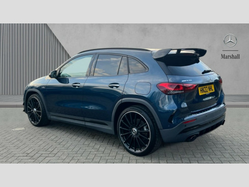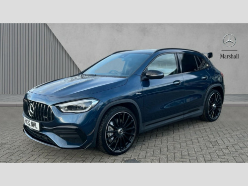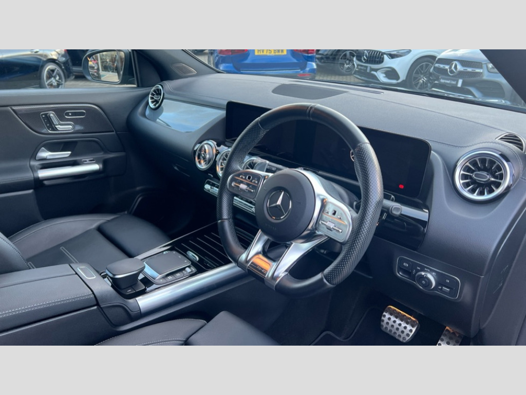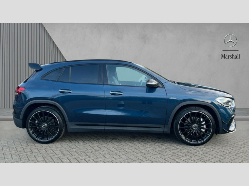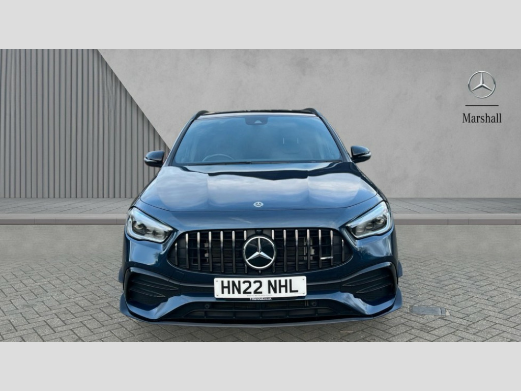 Mercedes-Benz GLA Class GLA 35 4Matic Premium Plus 5dr Auto 10.25 inch touchscreen central media display, 10.25" Digital instrument cluster display screen, Attention assist, Direct steering, DYNAMIC SELECT with a choice of driving modes (Comfort, Sport, Sport +, Slippery and Individual), ECO start/stop function, Fluid level warning indicator for fuel, oil, coolant and washer fluid, Hard-disk navigation, Hey Mercedes Voice activation, Instrument cluster - AMG sporty menu with gear indicator, warm up menu, set up menu, plus G meter, Race timer and engine data, Lamp failure indicator, Mercedes me connect including emergency call system, accident recovery, breakdown and maintenance management, Mercedes me remote services, Multi function trip computer, Outside temperature gauge, Owners manual and service booklet in English, Pre-installation of private car share, Radio aerial integrated into front and rear windshields, Service indicator (ASSYST), Smartphone integration with Apple CarPlay and Android auto, Status display for rear seat belts in instrument cluster, Traffic sign assist, Rear axle multi-link, Suspension with adaptive damping system, 2 USB ports (type C) in rear stowage compartment and one in front of center console, Bluetooth connectivity including audio streaming, DAB Digital radio, MBUX multimedia system with AMG specific display designs, AMG start up logo, visualisation of AMG drive programs, vehicle and engine data, Media interface, Mercedes-Benz (225w) sound system with 10 speakers, Adaptive brake lights, Aerial for GPS, AMG body styling - Front apron with air deflectors on the outer air intakes, AMG body styling - larger air intake in black, AMG body styling - Rear air outtakes, AMG exhaust system with flap control dependent on drive program, AMG real performance exhaust sound system, AMG specific/dual flow exhaust pipes in chrome (non-functional), Automatic headlamp activation, Body colour bumpers, Body coloured door handles with chrome insert for keyless entry, Car wash function, Dark privacy glass from B-pillar backwards, Electric front windows, Electric rear windows, Electrically adjustable and heated door mirrors with integrated LED indicators, Front bumper with underride guard in high gloss chrome, Front wings with TURBO 4MATIC lettering, Heated glass rear windscreen + timer control, Heated windscreen wash system, Interior mirror with black reading lamps and frameless, LED tail lights in two piece design, LED third brake light, Multibeam LED headlamps with adaptive highbeam assist and cornering function, Panoramic sunroof, Rain sensor windscreen wipers, Rear fog lights, Rear side wing doors, Rear wiper, Roof spoiler, Signature AMG radiator grille, 12V power socket in centre console, 3 seat bench in 2nd row, 3 spoke AMG flat bottom performance sports steering wheel in black nappa leather with perforated grip area, 12 o'clock and silver chrome AMG lettering, 40:20:40 split folding rear seat backrests, Adjustable head restraints, Air conditioning - Two zone thermotronic luxury automatic climate control with display, Ambient lighting in front headrests, AMG floor mats in black with AMG lettering and border in nubuck leather look finish, AMG illuminated door sills with changeable cover, Auto Mercedes-Benz child seat recognition sensor, Black roof lining, Centre console with AMG specific hand comforter and button to control manual transmission and 3 stage ESP, Courtesy light in boot, Electrically adjustable front memory seats with four way lumbar support, Front centre armrest with stowage, Galvanished gear shift paddles on steering wheel, Heated front seats, Illuminated glovebox, Interior lighting - 64 colour Ambient lighting, Leather trimmed gearknob, Luggage net on driver/front passenger seat backrest, Manually height and reach adjustable steering column, Multi-gesture touchpad control on center console, Single front passenger seat, Sports pedals in brushed stainless steel with black rubber studs, Sports seats, Stowage compartment in centre console, Stowage compartment with retractable cover, Sunvisors with illuminated vanity mirrors, Twin front cup holders, Two outer rear seat isofix and top tether child seat fixing points, AMG Aerodynamics package - GLA, AMG Night package - GLA, Interior lighting with light and sight pack - GLA, Load compartment pack - GLA, Mirror pack - GLA Class, Parking pack - GLA, 3 rear 3 point seatbelts, ABS with Brake Assist, Active bonnet pedestrain safety measure which detects an impact and raises bonnet by 65mm, Active brake assist includes forward collision warning system with autonomous braking, Adaptive brake assist with hold function and hill start assist, AMG high performance brake system with silver brake callipers and black AMG lettering at the front, ventilated and perforated brake disc, Bonnet with power domes, Brake pad wear warning indicator, Childproof locks manually operated for rear doors and electrically operated for rear power windows, Crash responsive emergency lighting, Driver and passenger head and side airbags, Drivers knee airbag, Dual stage driver/passenger airbags, Electronic parking brake, ESP curve dynamic assist, ESP with ASR, Front and rear seatbelt reminder, Front passenger seat occupancy sensor, Tyre pressure monitoring system, Warning triangle and first aid kit, Window airbags, Alarm system with immobiliser and interior protection -Thatcham category 1, Keyless entry lock/unlock, Keyless Go starting function, Remote central locking and crash sensor with emergency opening function, Urban guard vehicle protection, Vehicle key with decorative surround in chrome, Carbon structure trim, Chrome air vent surrounds, 21" AMG multi spoke light alloy wheels painted in matt black with high sheen rim flange, Summer tyres, Tirefit tyre sealant kit, Wheel arches wider for AMG wheels