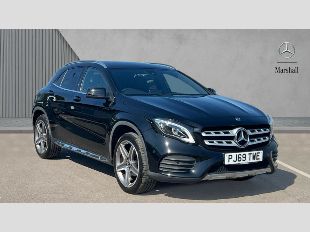 Mercedes-Benz GLA Class GLA 180 AMG Line Edition 5dr 180 degree reversing camera with parking guidelines, 4 analogue dials and needles suspended in six o'clock position, Attention assist, Cruise control + speed limiter, DYNAMIC SELECT with a choice of driving modes (ECO, Comfort, Sport and Individual), Easy-pack tailgate - Powered opening/closing automatically, ECO start/stop function, Fluid level warning indicator for fuel, oil, coolant and washer fluid, Instrument cluster, Mercedes me connect including emergency call system, accident recovery, breakdown management and maintenance, Multi function trip computer, Outside temperature gauge, Parking pilot with front and rear parking sensor and steering assist, Service indicator (ASSYST), Smartphone integration with Apple CarPlay and Android auto, Sports speed sensitive direct steer system with servo assistance, Off road comfort suspension, 8" media display touchpad, Audio 20 radio/single CD/MP3, 6 speakers, telephone keypad, twin radio tuner, Bluetooth, 2 USB ports, SD card slot and Garmin Map pilot nav system, Media interface, Adaptive brake lights, Automatic headlamp activation, Body colour door handles with chrome inserts, Body coloured bumper with front and rear apron trim in matt titanium grey, Chrome beltline strips, Electric front windows, Electrically adjustable and heated door mirrors, Front door sills with Mercedes-Benz lettering, Front fog lights, Full LED tail lamps, Heat insulating dark tinted privacy glass from the B-pillar backwards, Heated glass rear windscreen + timer control, LED high performance headlamps, LED third brake light, Rain sensor windscreen wipers with two sensitivity stages, Rear windscreen intermittent wiper with automatic activation when reversing, Roof mounted radio aerial, Two pipe visible exhaust system with chrome tailpipe tips, 1/3 to 2/3 split folding rear seats, 12V power socket in centre console, 12V socket in luggage compartment, 3 spoke and 12 button flattened bottom multifunction steering wheel trimmed in nappa leather with perforated leather grip area, Air conditioning - Two zone thermotronic luxury automatic climate control with display, Air vents with chrome surround and cruciform nozzles, Ambient lighting in front headrests, AMG brushed stainless steel sports pedals with rubber studs, AMG floor mats with AMG lettering and stiched edging, Artico man-made leather/Microfibre Dinamica upholstery with red contrast stitching, Auto Mercedes-Benz child seat recognition sensor, Black roof lining, Front centre armrest with stowage, Front footwell lights, Front seat cushion length adjustment, Heated front seats, Illuminated door sills, Illuminated glove compartment stowage, Interior door handle illumination, Luggage compartment cover, Manually adjustable front seats, Manually height and reach adjustable steering column, Rear footwell lights, Rear Reading Lamps, Sports seats with integrated head restraints, Stowage compartment beneath load compartment floor, Stowage compartment lighting, Sunvisors with illuminated vanity mirrors, Twin front cup holders, Two outer rear seat isofix and top tether child seat fixing points, White courtesy and red warning lights in front doors and boot lid, Comfort seat pack - GLA Class, 3 rear three point seatbelts, Active bonnet pedestrain safety measure which detects an impact and raises bonnet by 65mm, Active brake assist, Adaptive brake assist with hold function and hill start assist, Anti-lock braking system (ABS), Black seat belts, Childproof locks manually operated for rear doors and electrically operated for rear power windows, Crash responsive emergency lighting, Drivers knee airbag, Dual stage driver and front passenger airbags, Electronic parking brake, Electronic stability programme with acceleration skid control, Front and rear seatbelt reminder, Front passenger seat occupancy sensor, Front side airbags, Tyre pressure monitoring system, Warning triangle and first aid kit, Window airbags, Anti-theft alarm system/interior protection with tow-away protection and interior monitoring systems, Chrome surround electric key, Keyless Go starting function, Remote central locking, Light aluminium with longitudinal grain interior trim, Run flat tyres