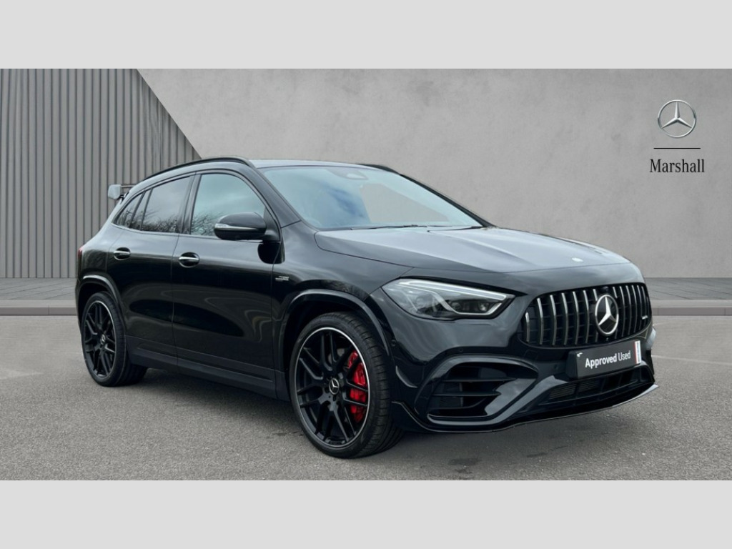 We pride ourselves on not only offering vehicles that meet our high standards but also that offer unrivalled value for money. As part of the Marshall Group, we check our prices daily to ensure that our vehicles are priced correct from day one. 10.25 inch touchscreen central media display with AMG specific, AMG start up logo, visualisation of the AMG drive programs, vehicle and engine data, 10.25" Digital instrument cluster display screen, AMG DYNAMIC SELECT with driving programs (Slippery, Comfort, Sport, Sport+, Individual and Race) including drift mode via steering wheel shift paddles, AMG speed sensitive steering with two sets of steering characteristics, AMG track pace, Attention assist, Cruise control + speed limiter, Direct steering, Easy-pack tailgate, ECO start/stop function, Fingerprint scanner, Fluid level warning indicator for fuel, oil, coolant and washer fluid, Full color head up display, Hard-disk navigation, Hey Mercedes Voice activation, Instrument cluster - AMG sporty menu with gear indicator, warm up menu, set up menu, plus G meter, Race timer and engine data, Lamp failure indicator, Lane keeping assist (LKA), MBUX augmented reality for navigation, Mercedes me connect including emergency call system, accident recovery, breakdown and maintenance management, Mercedes me remote services, Multi function trip computer, Outside temperature gauge, Owners manual and service booklet in English, Pre-installation of private car share, Radio aerial integrated into front and rear windshields, Service indicator (ASSYST), Smartphone integration with Apple CarPlay and Android auto, Speed limit assist, Traffic sign assist, Wireless charging, AMG performance 4MATIC+ with torque control, AMG Ride Control suspension, Rear axle multi-link, Suspension with adaptive damping system, Bluetooth connectivity including audio streaming, Burmester surround sound system, DAB Digital radio, MBUX multimedia system, Adaptive brake lights, Adaptive full LED rear lights with automatic adjustment of light intensity to the surroundings, AMG body styling - Front apron with air deflectors on the outer air intakes, AMG emblem on the front instead of the "Mercedes-Benz" laurel wreath badge, AMG exhaust system with flap control dependent on drive program, AMG fuel filler cap in silver chrome with "AMG" lettering, AMG real performance exhaust sound system, AMG rear apron with specific diffuser look with four vertical fins, AMG side sill panels, AMG Specific front apron, AMG spoiler lip on the roof spoiler, AMG sports exhaust system with two round tailpipes attached to the rear apron, AMG-specific radiator grille with vertical struts in high-gloss chrome and "AMG" lettering, Automatic headlamp activation, Beltline strips in High gloss Black, Body colour bumpers, Body coloured door handles with chrome insert for keyless entry, Car wash function, Cornering light function with activated high beam, Dark privacy glass from B-pillar backwards, Electric front windows, Electric rear windows, Electrically adjustable and heated door mirrors with integrated LED indicators, Front wings with TURBO 4MATIC lettering, Heated glass rear windscreen + timer control, Interior mirror with black reading lamps and frameless, LED daytime running lights, LED third brake light, Multibeam LED headlamps with adaptive highbeam assist plus, Panoramic sunroof, Rain sensor windscreen wipers, Rear fog lights, Rear side wing doors, Rear wiper, Roof spoiler, Specific "S" labelling on the boot lid and distinctive GLA 45 front apron, Two round twin tailpipe trim elements each measuring 90 mm in diameter, AMG lettering plus ribbing on the inside of the pipe, Window line in high gloss black, 3 seat bench in 2nd row, 3 spoke flat bottom AMG perform sports steering wheel in nappa leather/Microcut microfibre, 12 o'clock with stitching and silver chrome AMG lettering, 40:20:40 split folding rear seat backrests, Adjustable head restraints, Air conditioning - air vents with silver chrome surround, Air conditioning - Two zone thermotronic luxury automatic climate control with display, Aluminium geashift paddles in silver colour, AMG brushed stainless steel sports pedals with rubber studs, AMG floor mats with AMG lettering in front, AMG illuminated door sills with changeable cover, AMG performance seats, Auto Mercedes-Benz child seat recognition sensor, Black roof lining, Courtesy light in boot, Electrically adjustable front memory seats with four way lumbar support, Front centre armrest with stowage, Heated front seats, Illuminated glovebox, Interior lighting - 64 colour Ambient lighting, Manually height and reach adjustable steering column, Rear armrest with two integral cup holders for drinks, Single front passenger seat, Stowage compartment in centre console, Stowage compartment with retractable cover, Sunvisors with illuminated vanity mirrors, Topstitching on the dashboard and beltline significantly enhance the high quality impression, Twin front cup holders, Two outer rear seat isofix and top tether child seat fixing points, AMG Aerodynamics package - GLA, AMG Driver's package - GLA, AMG Multi contour seat package - GLA, AMG Night package - GLA, AMG performance seat high end package - GLA, Comfort seat pack - GLA Class, Interior lighting with light and sight pack - GLA, Keyless go comfort package - GLA, Mirror pack - GLA Class, Parking package with 360-degree camera - GLA, USB package plus - GLA, 3 rear 3 point seatbelts, 3 Stage ESP, ABS with Brake Assist, Active bonnet pedestrain safety measure which detects an impact and raises bonnet by 65mm, Adaptive brake assist with hold function and hill start assist, AMG high performance brake system with red painted brake callipers and black AMG lettering at the front, ventilated and perforated brake discs, Black seatbelts, Brake pad wear warning indicator, Childproof locks manually operated for rear doors and electrically operated for rear power windows, Crash responsive emergency lighting, Driver and passenge