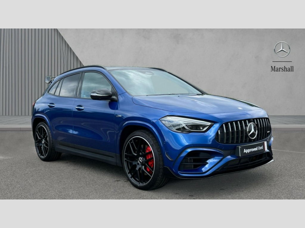 We pride ourselves on not only offering vehicles that meet our high standards but also that offer unrivalled value for money. As part of the Marshall Group, we check our prices daily to ensure that our vehicles are priced correct from day one. 10.25 inch touchscreen central media display with AMG specific, AMG start up logo, visualisation of the AMG drive programs, vehicle and engine data, 10.25" Digital instrument cluster display screen, AMG DYNAMIC SELECT with driving programs (Slippery, Comfort, Sport, Sport+, Individual and Race) including drift mode via steering wheel shift paddles, AMG menu with sporty additional information - Gear indicator with yellow M symbol manual mode, Warm Up menu and Set Up menu, AMG speed sensitive steering with two sets of steering characteristics, AMG track pace, Attention assist, Cruise control + speed limiter, Direct steering, ECO start/stop function, Fluid level warning indicator for fuel, oil, coolant and washer fluid, Hard-disk navigation, Hey Mercedes Voice activation, Instrument cluster - AMG sporty menu with gear indicator, warm up menu, set up menu, plus G meter, Race timer and engine data, Lamp failure indicator, Lane keeping assist (LKA), MBUX augmented reality for navigation, Mercedes me connect including emergency call system, accident recovery, breakdown and maintenance management, Mercedes me remote services, Multi function trip computer, Outside temperature gauge, Owners manual and service booklet in English, Pre-installation of private car share, Radio aerial integrated into front and rear windshields, Service indicator (ASSYST), Smartphone integration with Apple CarPlay and Android auto, Speed limit assist, Status display for rear seat belts in instrument cluster, Tailgate, Traffic sign assist, Wireless charging, AMG performance 4MATIC+ with torque control, AMG Ride Control suspension, Rear axle multi-link, Suspension with adaptive damping system, Bluetooth connectivity including audio streaming, Burmester surround sound system, DAB Digital radio, MBUX multimedia system, Media interface, Adaptive brake lights, Aerial for GPS, AMG body styling - Front apron with air deflectors on the outer air intakes, AMG emblem on the front instead of the "Mercedes-Benz" laurel wreath badge, AMG exhaust system with flap control dependent on drive program, AMG fuel filler cap in silver chrome with "AMG" lettering, AMG real performance exhaust sound system, AMG rear apron with specific diffuser look with four vertical fins, AMG side sill panels, AMG Specific front apron, AMG spoiler lip on the roof spoiler, AMG Sports exhaust system with two round tailpipes measuring 90 mm in diameter attached in rear apron, AMG lettering plus ribbing on the inside of the, AMG wider side skirts, AMG-specific radiator grille with vertical struts in high-gloss chrome and "AMG" lettering, Automatic headlamp activation, Beltline strips in High gloss Black, Body colour bumpers, Body coloured door handles with chrome insert for keyless entry, Car wash function, Dark privacy glass from B-pillar backwards, Electric front windows, Electric rear windows, Electrically adjustable and heated door mirrors with integrated LED indicators, Front bumper with underride guard in high gloss chrome, Front wings with TURBO 4MATIC lettering, Heated glass rear windscreen + timer control, Heated windscreen wash system, Interior mirror with black reading lamps and frameless, LED daytime running lights, LED tail lights, LED third brake light, Multibeam LED headlamps with adaptive highbeam assist and cornering function, Panoramic sunroof, Rain sensor windscreen wipers, Rear fog lights, Rear side wing doors, Rear wiper, Roof spoiler, Specific "S" labelling on the boot lid and distinctive GLA 45 front apron, Specific S labelling on the boot lid, Window line in high gloss black, 12V power socket in centre console, 3 seat bench in 2nd row, 3 spoke flat bottom AMG perform sports steering wheel in nappa leather/Microcut microfibre, 12 o'clock with stitching and silver chrome AMG lettering, 40:20:40 split folding rear seat backrests, Adjustable head restraints, Air conditioning - air vents with silver chrome surround, Air conditioning - Two zone thermotronic luxury automatic climate control with display, Aluminium geashift paddles in silver colour, Ambient lighting in front headrests, AMG brushed stainless steel sports pedals with rubber studs, AMG floor mats with AMG lettering in front, AMG illuminated door sills with changeable cover, AMG performance seats, AMG steering wheel buttons, Auto Mercedes-Benz child seat recognition sensor, Black roof lining, Centre console with AMG specific hand comforter and button to control manual transmission and 3 stage ESP, Courtesy light in boot, Electrically adjustable front memory seats with four way lumbar support, Floor mats in velour, Front centre armrest with stowage, Heated front seats, Illuminated glovebox, Interior lighting - 64 colour Ambient lighting, Leather trimmed gearknob, Manually height and reach adjustable steering column, Multi-gesture touchpad control on center console, Rear armrest with two integral cup holders for drinks, Single front passenger seat, Stowage compartment in centre console, Stowage compartment with retractable cover, Sunvisors with illuminated vanity mirrors, Twin front cup holders, Two outer rear seat isofix and top tether child seat fixing points, AMG Aerodynamics package - GLA, AMG Driver's package - GLA, AMG Multi contour seat package - GLA, AMG Night package - GLA, AMG performance seat high end package - GLA, Comfort seat pack - GLA Class, Interior lighting with light and sight pack - GLA, Keyless go comfort package - GLA, Mirror pack - GLA Class, Parking package with 360-degree camera - GLA, USB package plus - GLA, 3 rear 3 point seatbelts, 3 Stage ESP, ABS with Brake Assist, Active bonnet pedestrain safety measure which detects an impact and raises bonnet by 65mm, Adaptive brake assist with hold function and hill start assist,