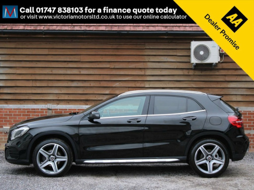 ***FOR VIEWINGS AND TEST DRIVES CALL US ON 01747 838103 TO BOOK AN APPOINTMENT***Massive spec GLA  AMG Line PLUS fitted with Mercedes' 1.6 litre petrol ULEZ compliant engine producing impressive power and great fuel economy finished in black metallic with equipment including tilt and slide opening panoramic glass roof, half leather and suede interior with heated seats and memory electric adjustment, media unit with satellite navigation, rear parking camera and sensors, DAB radio and apple car play resulting in the ability to mirror the apps from your Iphone onto the car media screen including Google maps and Spotifiy, media connections, bluetooth, auto air conditioning, auto lights, electric opening tailgate and more, 1 owner, 31800 miles, service history, high up driving position with easy access in and out of the cockpit***PART EXCHANGE AVAILABLE***USE THE FINANCE CALCULATOR ON OUR WEBSITE www.victoriamotorsltd.co.uk AND QUOTE YOURSELF A MONTHLY PAYMENT FIGURE TODAY WITH ZERO DEPOSITS AVAILABLE*** 19in Alloy Wheels - AMG Multi-Spoke Desi, ABS - Anti-Lock Braking System with BAS , AMG Bodystyling - Front and Rear Apron -, ATTENTION Assist, Active Bonnet - Pedestrian Safety Measur, Active Braking Assist, Adaptive Brake Assist with Hold Function, Air Vents with Chrome Surround and Cruci, Airbags - Automatic Child Seat Recogniti, Airbags - Dual Stage - Driver and Front , Airbags - Sidebags for Driver and Front , Airbags - Windowbags for Driver and Fron, Anti-Theft Protection Package, Beltline Strips - Chrome, Brake Calipers with Mercedes-Benz Letter, Braking - Adaptive Brake Lights - Flash , Brushed Stainless Steel Sports Pedals wi, Bumpers - Body-Coloured with Front and R, Childproof Loc