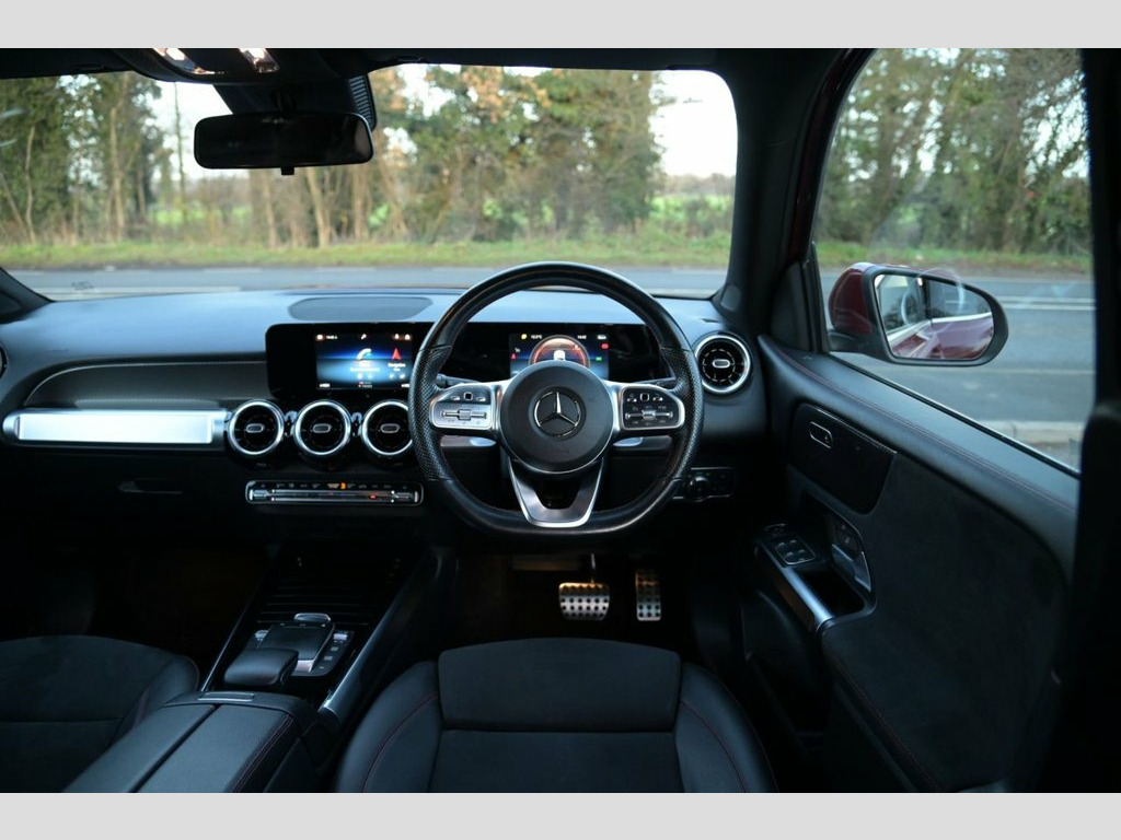 Prestige Car Supermarket in York presents this 2022 Mercedes-Benz GLB 1.3 GLB200 AMG Line SUV finished in Patagonia Red with black Artico Leather-Dinamica Microfibre upholstery, delivering 163 ps through a 7G-DCT transmission and offering a strong blend of style, technology and versatility. Exterior highlights include 19in AMG 5-twin-spoke alloy wheels, AMG bodystyling with chrome front splitter, diffuser-style rear apron, chrome beltline strips, polished aluminium roof rails, privacy glass, LED High Performance headlamps with integrated daytime running lights, LED tail lamps, heated rear windscreen, body-coloured door handles, and electrically adjustable heated mirrors with LED indicators. The interior provides sport seats with adjustable head restraints, heated front seats, a multifunction sports steering wheel in Nappa leather with galvanised shift paddles, THERMOTRONIC two-zone climate control, carbon-structure trim, black roof lining, front and rear armrests with cup holders, luggage nets, stowage compartments, and third-row seating for two. Technology is delivered through the MBUX multimedia system with 7in touchscreen, 7in digital instrument display, Hard-Disc Navigation, DAB radio, Mercedes-Benz Sound System, Live Traffic Information, Mercedes Me services, Hey Mercedes voice activation, touchpad controller, and multiple USB Type-C ports. Safety and assistance features include Active Brake Assist, Lane Keeping Assist, ATTENTION Assist, Speed Limit Assist, Adaptive Brak Patagonia Red, Artico Leather-Dinamica Microfibre - Bla, 180 Degrees Reversing Camera, 19in Alloy Wheels - AMG 5-Twin-Spoke Des, ABS - Anti-Lock Braking System with BAS , AMG Bodystyling - AMG Door Panels Black , AMG Bodystyling - AMG Front Apron with C, AMG Bodystyling - AMG Rear Apron with Di, ATTENTION Assist, Active Bonnet - Pedestrian Safety Measur, Active Brake Assist, Air Conditioning - THERMOTRONIC Luxury A, Air Vents in Black with Chrome Surround, Airbags - Dual-Stage - Driver, Airbags - Dual-Stage - Passenger, Airbags - Head and Sidebags - Driver and, Airbags - Kneebags for Driver, Airbags - Windowbags for Driver and Fron, Alarm System with Immobiliser and Interi, Automatic Child S
